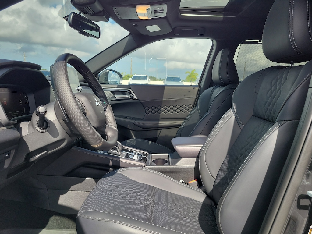This Mitsubishi Outlander Plug-In Hybrid delivers a Gas/Electric I-4 2.4 L/144 engine powering this Automatic transmission. LABRADOR BLACK PEARL, BLACK, SEMI-ANILINE LEATHER SEATING SURFACES, ACCESSORY TONNEAU COVER.