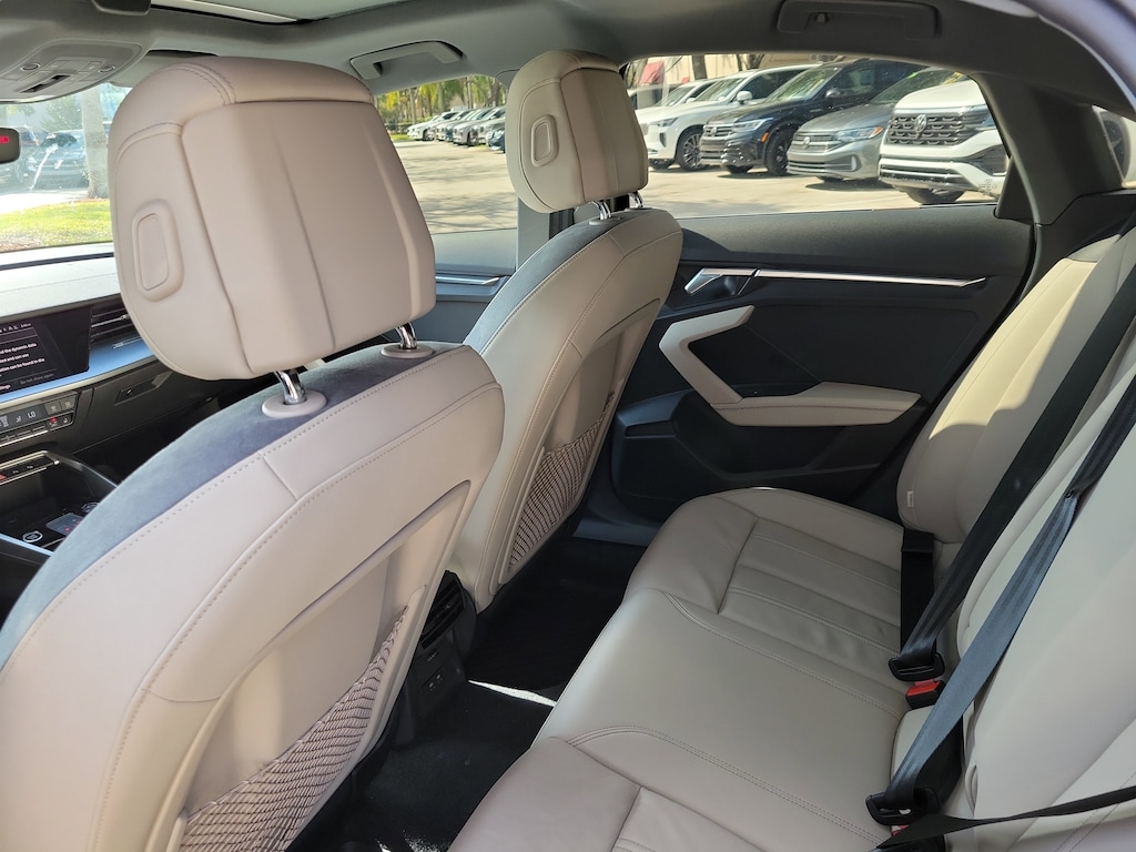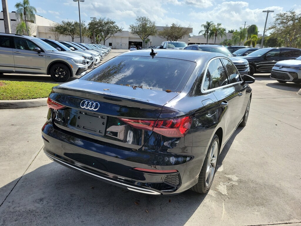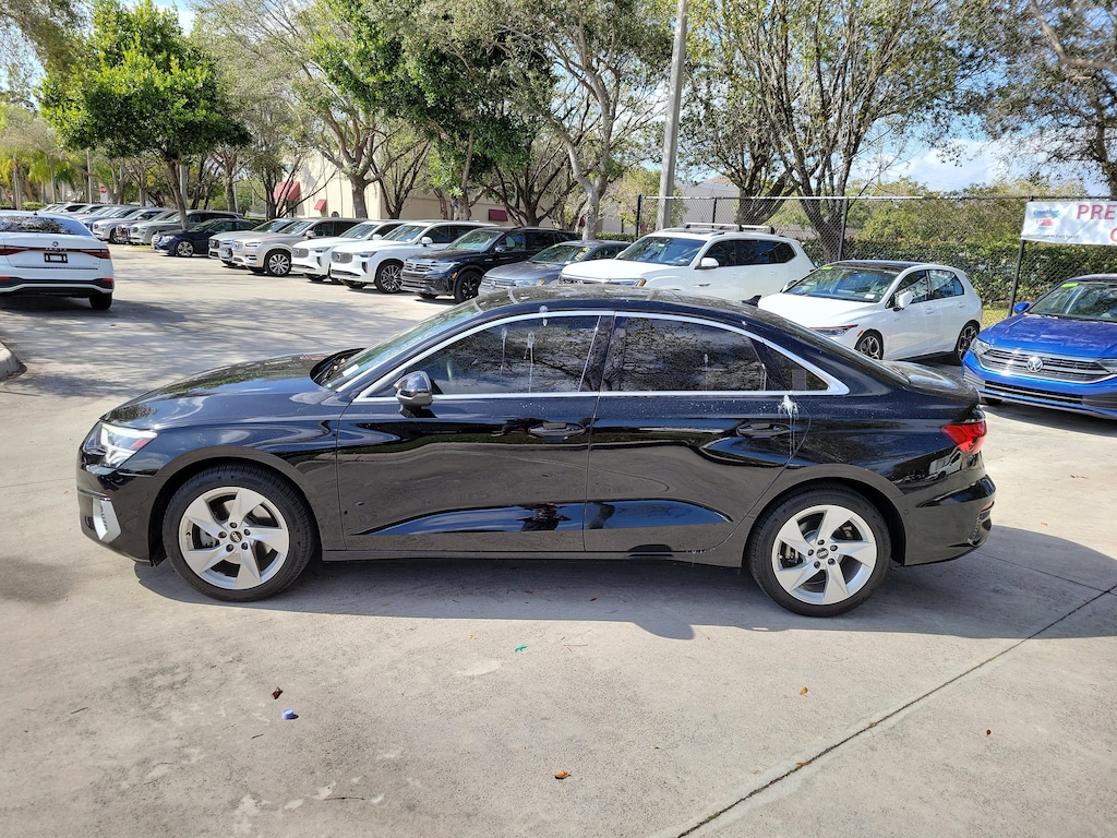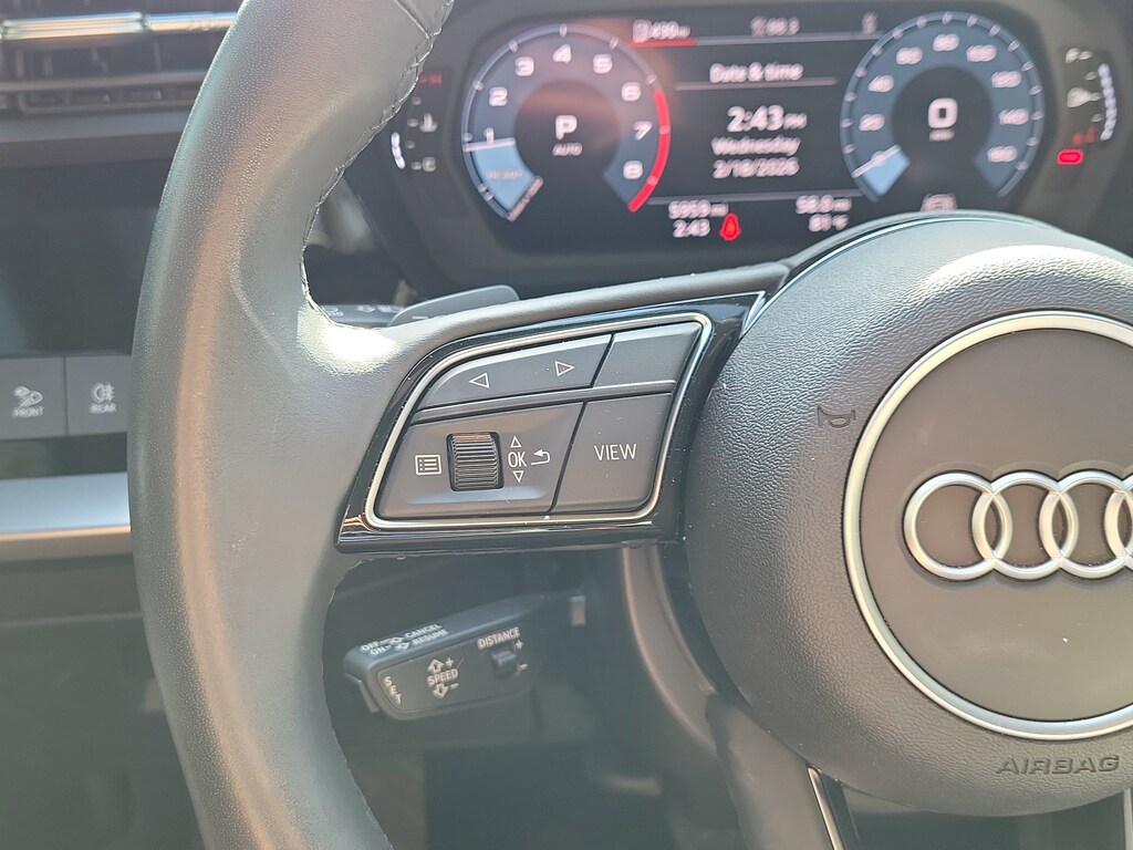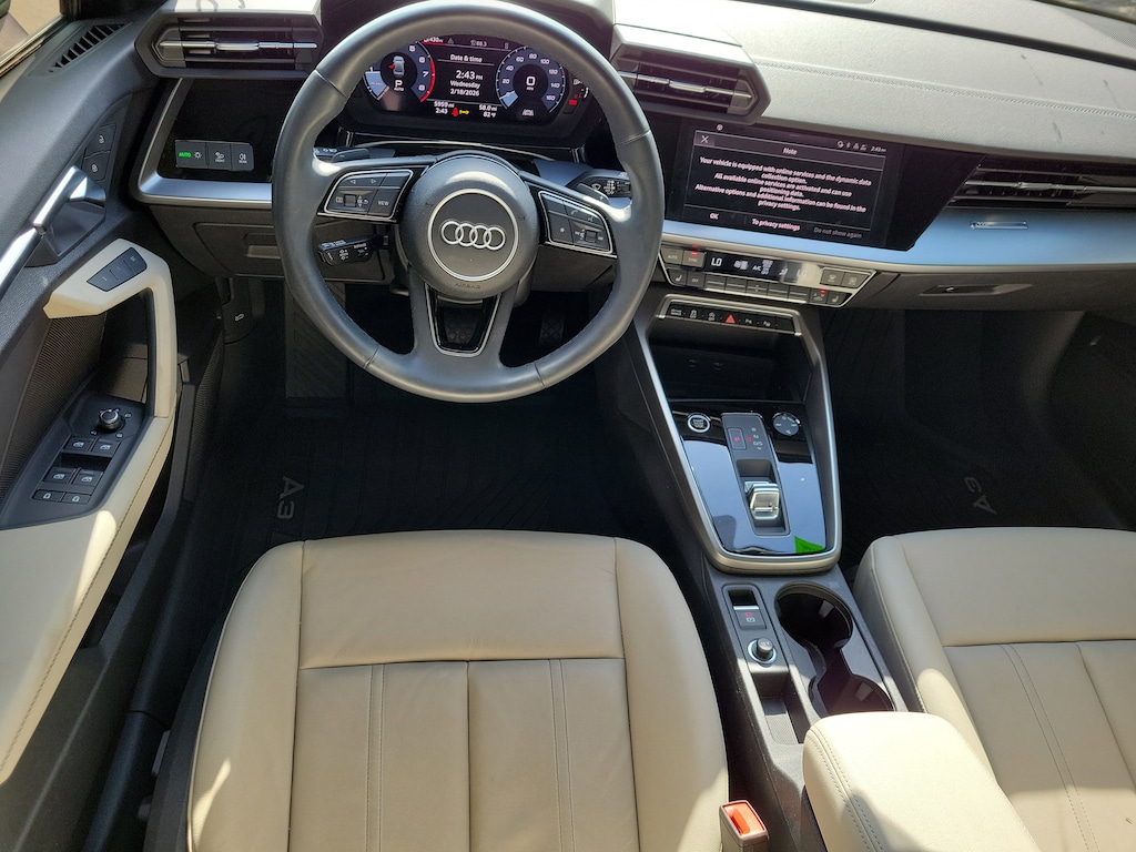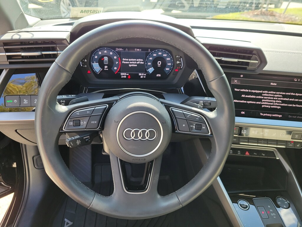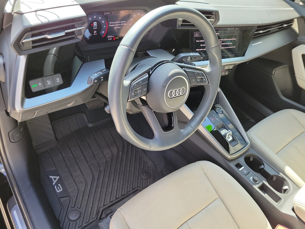 CARFAX One-Owner. Brilliant Black 2023 Audi A3 40 Premium FrontTrak 2.0L 4-Cylinder TFSI 7-Speed Automatic S tronic FrontTrak Convenience Package (Alarm System w/Motion Sensor, Audi Advanced Key, Audi Side Assist, Auto-Dimming Interior Mirror w/Compass, Auto-Dimming Power Folding Exterior Mirrors, Memory for Driver's Seat, Park Assist, SiriusXM w/360L, and Wireless Phone Charging Pad), 4-Wheel Disc Brakes, 6 Speakers, ABS brakes, Air Conditioning, Alloy wheels, AM/FM radio, Audi Guard All-Weather Floor Mats, Auto High-beam Headlights, Automatic temperature control, Brake assist, Bumpers: body-color, Delay-off headlights, Driver door bin, Driver vanity mirror, Dual front impact airbags, Dual front side impact airbags, Electronic Stability Control, Emergency communication system, Exterior Parking Camera Rear, Four wheel independent suspension, Front anti-roll bar, Front Bucket Seats, Front Center Armrest, Front dual zone A/C, Front reading lights, Fully automatic headlights, Heated door mirrors, Heated Front Bucket Seats, Heated front seats, Illuminated entry, Knee airbag, Leather Seating Surfaces, Leather steering wheel, Low tire pressure warning, Occupant sensing airbag, Outside temperature display, Overhead airbag, Overhead console, Panic alarm, Passenger door bin, Passenger vanity mirror, Power door mirrors, Power driver seat, Power moonroof, Power passenger seat, Power steering, Power windows, Radio data system, Radio: Audi Sound System, Rain sensing wipers, Rear air conditioning, Rear anti-roll bar, Rear fog lights, Rear reading lights, Rear seat center armrest, Rear side impact airbag, Rear window defroster, Remote keyless entry, Speed control, Speed-sensing steering, Speed-Sensitive Wipers, Split folding rear seat, Steering wheel mounted audio controls, Tachometer, Telescoping steering wheel, Tilt steering wheel, Traction control, Trip computer, Turn signal indicator mirrors, Variably intermittent wipers, and Wheels: 17" 5-Arm Design.