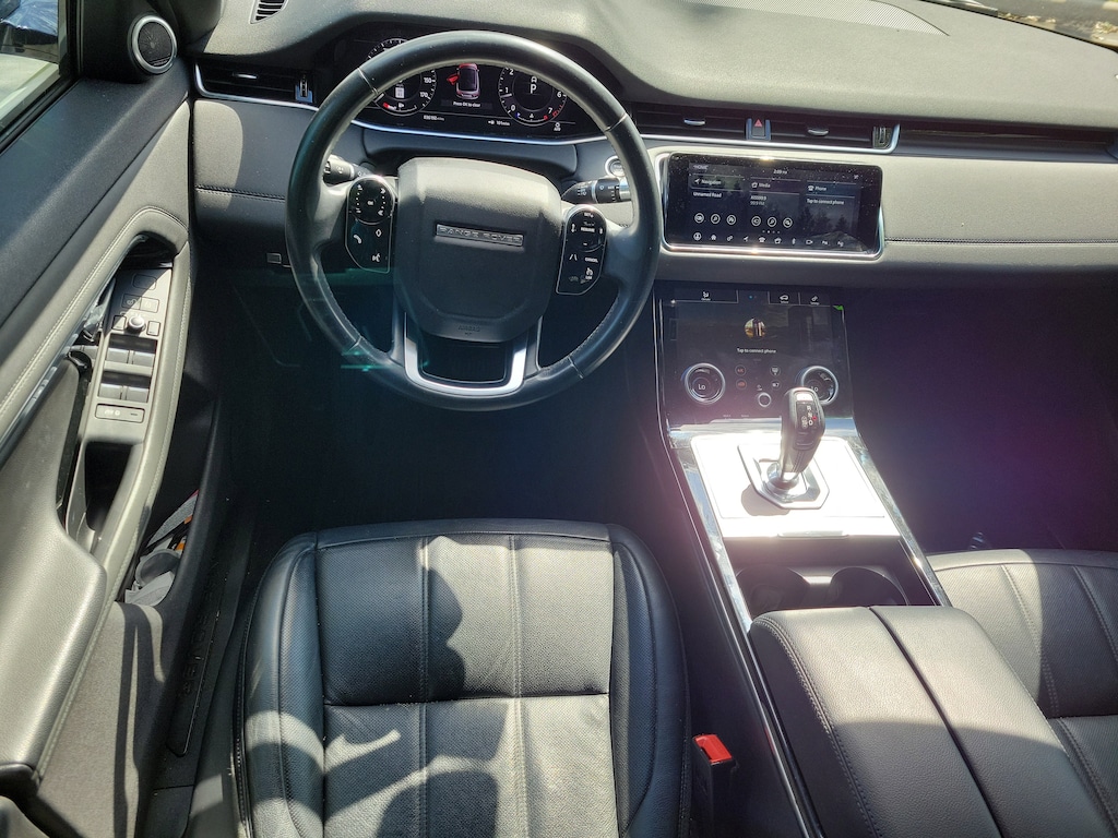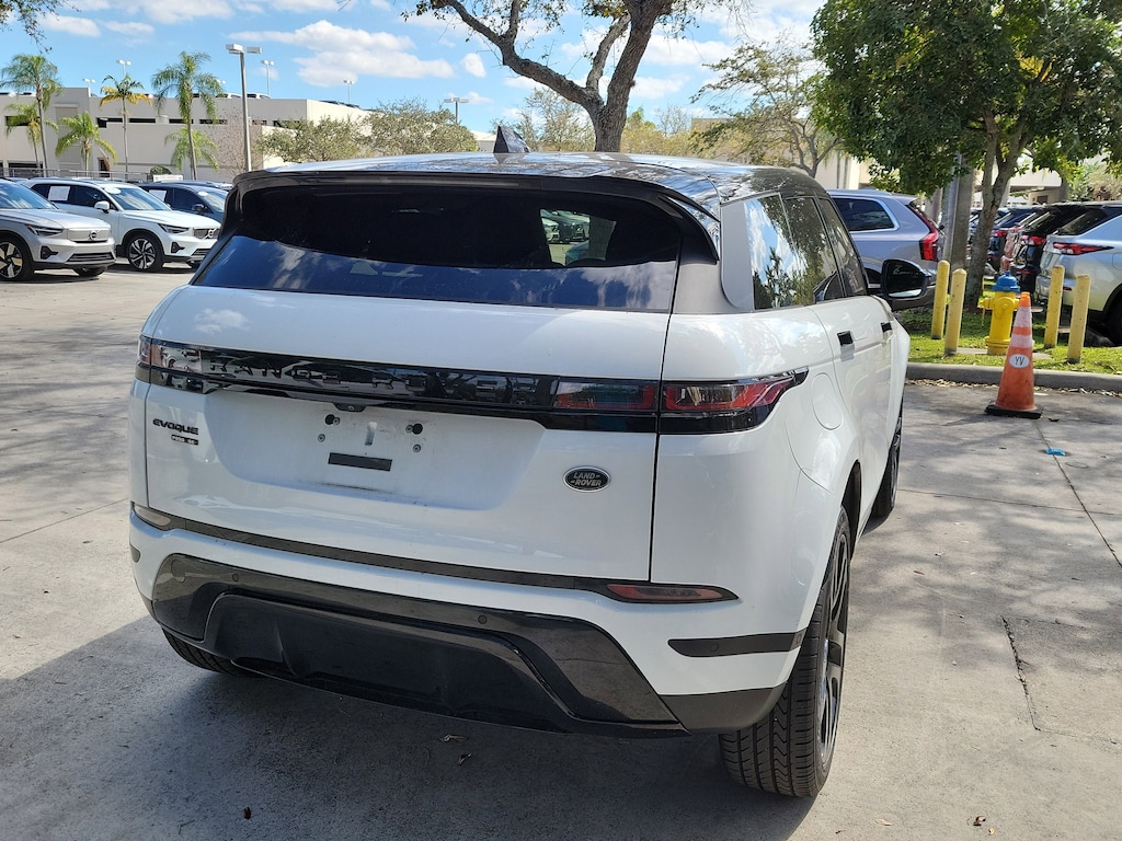 CARFAX One-Owner. White 2020 Land Rover Range Rover Evoque SE I4 9-Speed Automatic AWD 14-Way Front Bucket Seats w/Memory, 180 Watt Range Rover Sound System w/6-Speakers, 20" Wheels, 3.94 Axle Ratio, 4-Wheel Disc Brakes, 6 Speakers, ABS brakes, Air Conditioning, Alloy wheels, Android Auto, Apple CarPlay, Apple CarPlay & Android Auto, Auto High-beam Headlights, Auto-dimming door mirrors, Auto-dimming Rear-View mirror, Automatic temperature control, Brake assist, Bumpers: body-color, Compass, Delay-off headlights, Driver door bin, Driver vanity mirror, Dual front impact airbags, Dual front side impact airbags, Electronic Stability Control, Emergency communication system: InControl Protect, Exterior Parking Camera Rear, Four wheel independent suspension, Front anti-roll bar, Front Bucket Seats, Front Center Armrest, Front dual zone A/C, Front reading lights, Fully automatic headlights, Grained Leather Seat Trim, Heated door mirrors, Illuminated entry, Interactive Driver Display, Leather Shift Knob, Low tire pressure warning, Memory seat, Navigation system: InControl Navigation Pro, Occupant sensing airbag, Outside temperature display, Overhead airbag, Overhead console, Panic alarm, Passenger door bin, Passenger vanity mirror, Power door mirrors, Power driver seat, Power Liftgate, Power passenger seat, Power Socket Pack 1, Power steering, Power windows, Radio data system, Radio: Touch Pro Duo Infotainment w/Navigation, Rain sensing wipers, Rear anti-roll bar, Rear fog lights, Rear reading lights, Rear seat center armrest, Rear window defroster, Rear window wiper, Remote keyless entry, Security system, Speed control, Speed-sensing steering, Speed-Sensitive Wipers, Split folding rear seat, Spoiler, Steering wheel mounted audio controls, Tachometer, Telescoping steering wheel, Tilt steering wheel, Traction control, Trip computer, Turn signal indicator mirrors, Variably intermittent wipers, and Wheels: 20" 5 Split-Spoke (Style 5076)