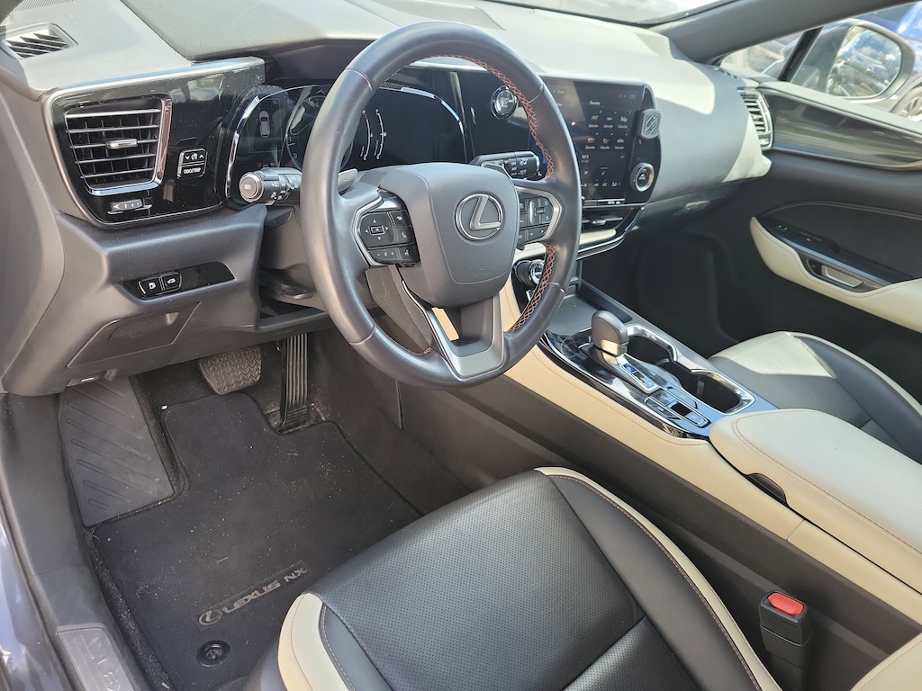 Recent Arrival! CARFAX One-Owner. 2023 Lexus NX 250 Base 2.5L I4 DOHC 16V 8-Speed Automatic FWD 10 Speakers, 18" Wheels, 4-Wheel Disc Brakes, ABS brakes, Air Conditioning, Alloy wheels, AM/FM radio: SiriusXM, Anti-whiplash front head restraints, Auto High-beam Headlights, Auto-dimming door mirrors, Auto-dimming Rear-View mirror, Automatic temperature control, Axle Ratio: 3.417, Brake assist, Bumpers: body-color, Delay-off headlights, Driver door bin, Driver vanity mirror, Dual front impact airbags, Dual front side impact airbags, Electronic Stability Control, Emergency communication system: Safety Connect (up to 10-year trial subscription included), Exterior Parking Camera Rear, Four wheel independent suspension, Front anti-roll bar, Front Bucket Seats, Front Center Armrest, Front dual zone A/C, Front fog lights, Front reading lights, Fully automatic headlights, Garage door transmitter: HomeLink, Heated door mirrors, Heated Front Bucket Seats, Heated front seats, Illuminated entry, Knee airbag, Leather Shift Knob, Low tire pressure warning, Navigation system: Drive Connect Cloud Navigation (subscription required), NuLuxe Seat Trim, Occupant sensing airbag, Outside temperature display, Overhead airbag, Overhead console, Panic alarm, Passenger door bin, Passenger vanity mirror, Power door mirrors, Power driver seat, Power passenger seat, Power steering, Power windows, Radio data system, Radio: 10-Speaker Sound System, Rear anti-roll bar, Rear reading lights, Rear seat center armrest, Rear window defroster, Rear window wiper, Remote keyless entry, Roof rack: rails only, Security system, Speed control, Speed-sensing steering, Split folding rear seat, Spoiler, Steering wheel mounted audio controls, Tachometer, Telescoping steering wheel, Tilt steering wheel, Traction control, Trip computer, Turn signal indicator mirrors, Variably intermittent wipers, and Wireless Apple CarPlay/Wireless Android Auto.