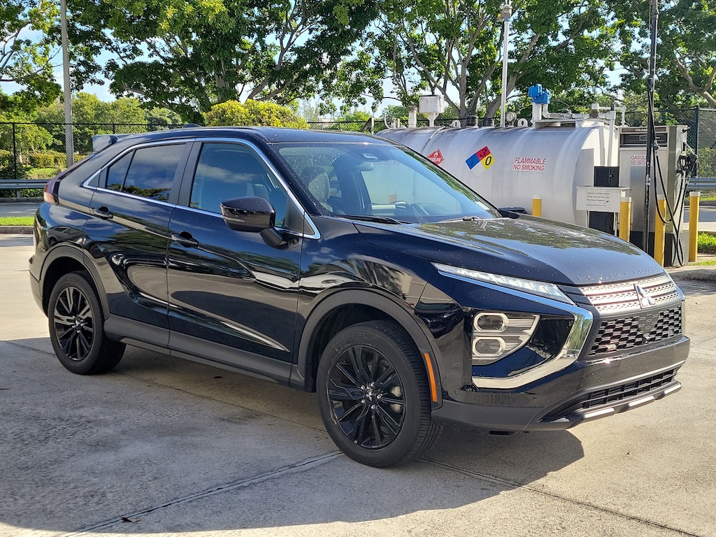 CARFAX One-Owner. Labrador Black 2023 Mitsubishi Eclipse Cross LE 1.5L I4 DI Turbocharged DOHC 16V LEV3-ULEV70 152hp CVT 4WD ABS brakes, Alloy wheels, Electronic Stability Control, Heated door mirrors, Heated Front Bucket Seats, Heated front seats, Illuminated entry, Low tire pressure warning, Remote keyless entry, Traction control, 4 Speakers, 4-Wheel Disc Brakes, 6.39 Axle Ratio, Air Conditioning, AM/FM radio: SiriusXM, Android Auto & Apple CarPlay, Auto High-beam Headlights, Automatic temperature control, Brake assist, Bumpers: body-color, Cloth Fabric Seating Surfaces, Driver door bin, Driver vanity mirror, Dual front impact airbags, Dual front side impact airbags, Exterior Parking Camera Rear, Four wheel independent suspension, Front anti-roll bar, Front Bucket Seats, Front Center Armrest, Front fog lights, Front reading lights, Knee airbag, Occupant sensing airbag, Outside temperature display, Overhead airbag, Overhead console, Panic alarm, Passenger door bin, Passenger vanity mirror, Power door mirrors, Power steering, Power windows, Radio data system, Radio: AM/FM 8.0" Smartphone-Link Display Audio, Rear anti-roll bar, Rear seat center armrest, Rear window defroster, Rear window wiper, Security system, Speed control, Speed-sensing steering, Split folding rear seat, Spoiler, Steering wheel mounted audio controls, Tachometer, Telescoping steering wheel, Tilt steering wheel, Trip computer, Turn signal indicator mirrors, Variably intermittent wipers, and Wheels: 18" Black Painted Alloy.