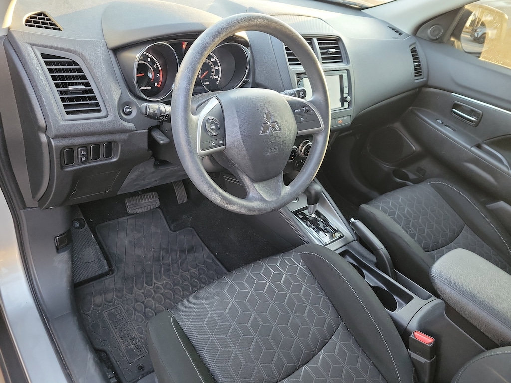 CARFAX One-Owner. Silver Alloy 2023 Mitsubishi Outlander Sport 2.0 ES 2.0L I4 SMPI DOHC 16V LEV3-ULEV70 148hp CVT 4WD 4-Wheel Disc Brakes, 6.026 Axle Ratio, ABS brakes, Air Conditioning, Auto High-beam Headlights, Auto-dimming Rear-View mirror, Automatic temperature control, Brake assist, Bumpers: body-color, Delay-off headlights, Driver door bin, Driver vanity mirror, Dual front impact airbags, Dual front side impact airbags, Electronic Stability Control, Exterior Parking Camera Rear, Four wheel independent suspension, Front anti-roll bar, Front Bucket Seats, Front Center Armrest, Front reading lights, Fully automatic headlights, Heated door mirrors, Illuminated entry, Knee airbag, Low tire pressure warning, Occupant sensing airbag, Outside temperature display, Overhead airbag, Panic alarm, Passenger door bin, Passenger vanity mirror, Power door mirrors, Power steering, Power windows, Radio data system, Rain sensing wipers, Rear anti-roll bar, Rear seat center armrest, Rear window defroster, Rear window wiper, Remote keyless entry, Security system, Speed control, Speed-sensing steering, Split folding rear seat, Spoiler, Steering wheel mounted audio controls, Tachometer, Telescoping steering wheel, Tilt steering wheel, Traction control, Trip computer, and Variably intermittent wipers.
