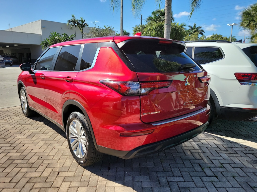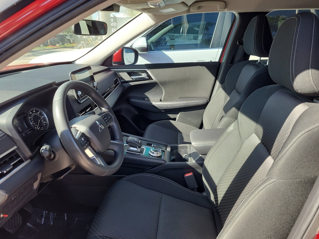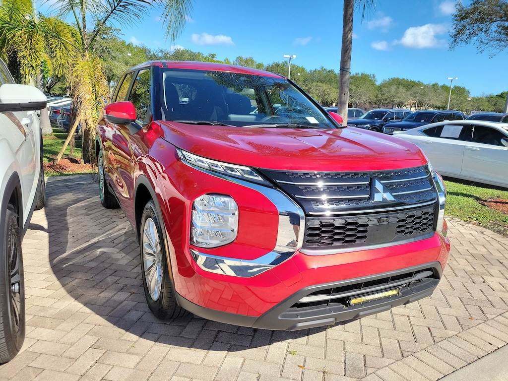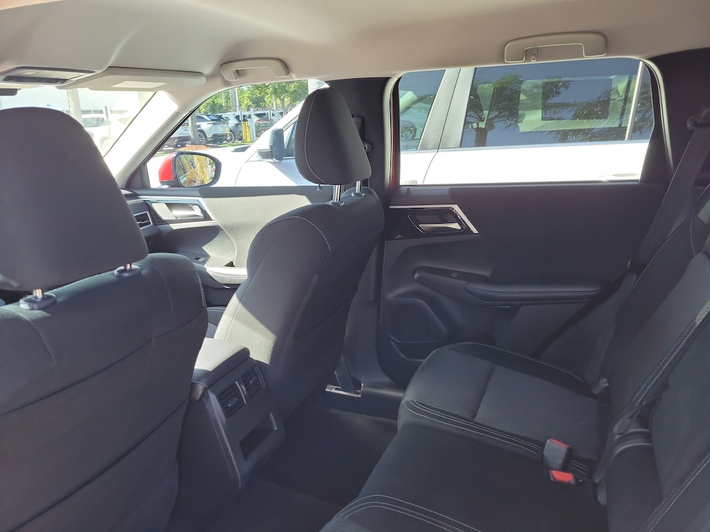 Red Diamond 2024 Mitsubishi Outlander ES 2.5L 4-Cylinder DOHC CVT FWD 18" Alloy Wheels, 3rd row seats: split-bench, 4-Wheel Disc Brakes, 5.694 Axle Ratio, 6 Speakers, ABS brakes, Air Conditioning, Alloy wheels, AM/FM radio: SiriusXM, Android Auto & Apple CarPlay, Auto High-beam Headlights, Automatic temperature control, Blind Spot Warning, Brake assist, Bumpers: body-color, Cloth Fabric Seat Trim, Driver door bin, Driver vanity mirror, Dual front impact airbags, Dual front side impact airbags, Electronic Stability Control, Emergency communication system: Mitsubishi Connect w/ 24-month trial, Exterior Parking Camera Rear, Four wheel independent suspension, Front anti-roll bar, Front Bucket Seats, Front Center Armrest w/Storage, Front dual zone A/C, Front reading lights, Fully automatic headlights, Illuminated entry, Knee airbag, Low tire pressure warning, Occupant sensing airbag, Outside temperature display, Overhead airbag, Overhead console, Panic alarm, Passenger door bin, Passenger vanity mirror, Power door mirrors, Power steering, Power windows, Radio data system, Radio: AM/FM 8.0" Smartphone Link Display Audio, Rear anti-roll bar, Rear Parking Sensors, Rear seat center armrest, Rear side impact airbag, Rear window defroster, Rear window wiper, Reclining 3rd row seat, Remote keyless entry, Security system, Speed control, Speed-Sensitive Wipers, Split folding rear seat, Spoiler, Steering wheel mounted audio controls, Tachometer, Telescoping steering wheel, Tilt steering wheel, Traction control, Trip computer, Turn signal indicator mirrors, and Variably intermittent wipers.