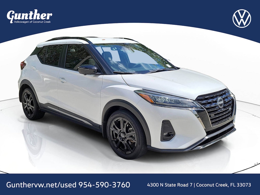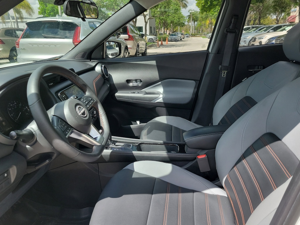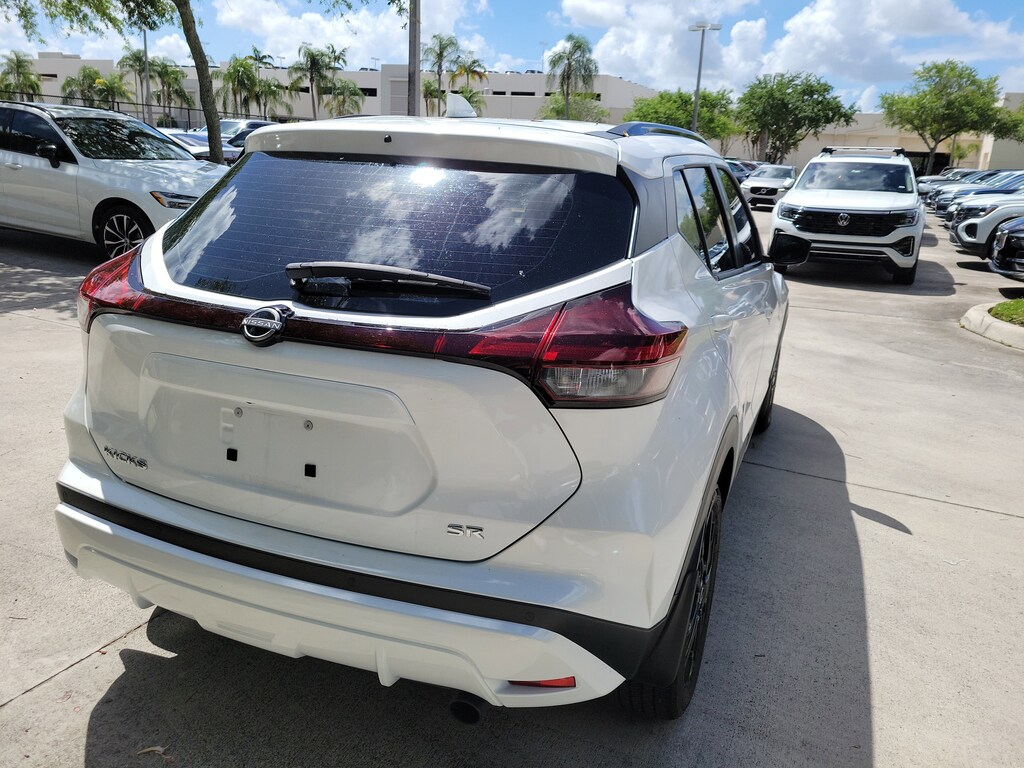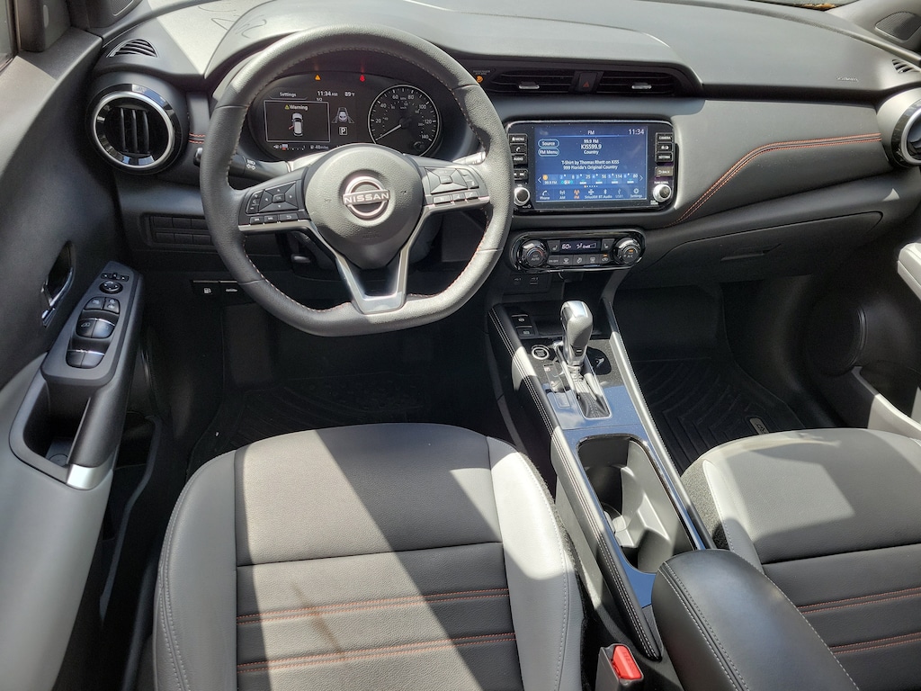 CARFAX One-Owner. Aspen White Tricoat 2024 Nissan Kicks SR 1.6L 4-Cylinder DOHC 16V CVT with Xtronic FWD SR Premium Package (Bose Personal Plus Audio System, Heated Front Seats, Heated Steering Wheel, Prima-Tex Appointed Seat Trim, Security System, and Tonneau Cover), 3.93 Axle Ratio, 4-Wheel Disc Brakes, 6 Speakers, ABS brakes, Air Conditioning, Alloy wheels, AM/FM radio: SiriusXM, Apple CarPlay/Android Auto, Auto High-beam Headlights, Automatic temperature control, Blind Spot Warning, Brake assist, Bumpers: body-color, Carpeted Floor Mats w/Cargo Mat, Cloth Seat Trim, Dash Cam - Dual Camera Drive Recorder, Delay-off headlights, Driver door bin, Driver vanity mirror, Dual front impact airbags, Dual front side impact airbags, Electronic Stability Control, Exterior Parking Camera Rear, Front anti-roll bar, Front Bucket Seats, Front Center Armrest, Front fog lights, Front reading lights, Front wheel independent suspension, Fully automatic headlights, Heated door mirrors, Illuminated entry, Knee airbag, Leather steering wheel, Low tire pressure warning, Occupant sensing airbag, Outside temperature display, Overhead airbag, Panic alarm, Passenger door bin, Passenger vanity mirror, Power door mirrors, Power steering, Power windows, Radio data system, Radio: AM/FM Audio System, Rear Parking Sensors, Rear reading lights, Rear side impact airbag, Rear window defroster, Rear window wiper, Remote keyless entry, Speed control, Splash Guards Grain (4 Piece), Split folding rear seat, Sport steering wheel, Steering wheel mounted audio controls, Tachometer, Telescoping steering wheel, Tilt steering wheel, Traction control, Trip computer, Turn signal indicator mirrors, Variably intermittent wipers, Wheels: 17" Alloy (5-Hole), and Wheels: 17" Black Alloy.
