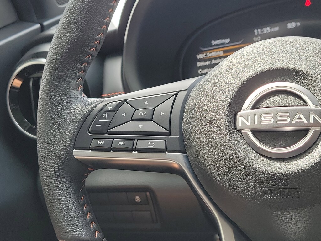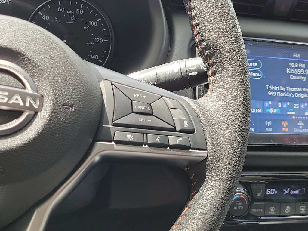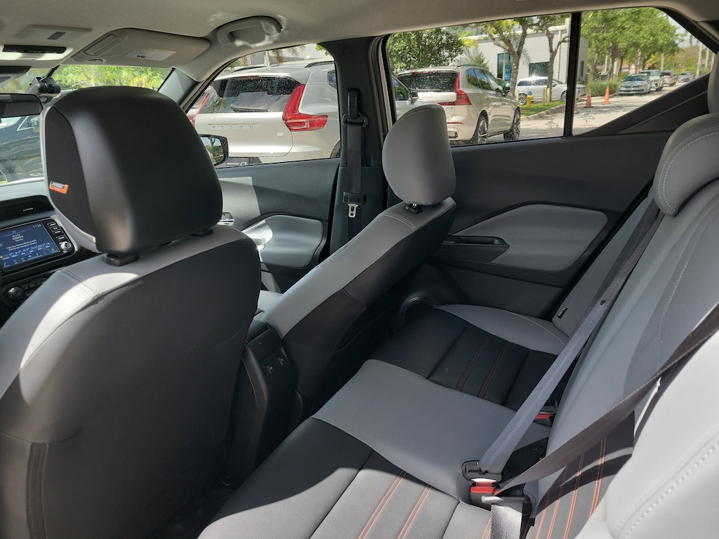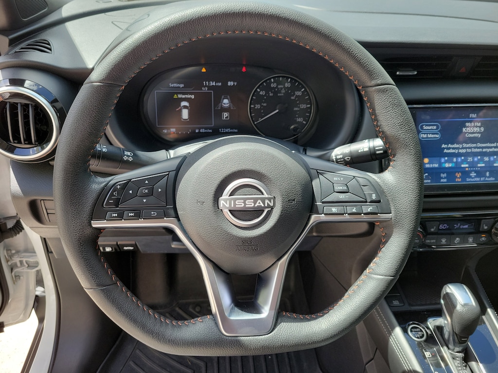 CARFAX One-Owner. Aspen White Tricoat 2024 Nissan Kicks SR 1.6L 4-Cylinder DOHC 16V CVT with Xtronic FWD SR Premium Package (Bose Personal Plus Audio System, Heated Front Seats, Heated Steering Wheel, Prima-Tex Appointed Seat Trim, Security System, and Tonneau Cover), 3.93 Axle Ratio, 4-Wheel Disc Brakes, 6 Speakers, ABS brakes, Air Conditioning, Alloy wheels, AM/FM radio: SiriusXM, Apple CarPlay/Android Auto, Auto High-beam Headlights, Automatic temperature control, Blind Spot Warning, Brake assist, Bumpers: body-color, Carpeted Floor Mats w/Cargo Mat, Cloth Seat Trim, Dash Cam - Dual Camera Drive Recorder, Delay-off headlights, Driver door bin, Driver vanity mirror, Dual front impact airbags, Dual front side impact airbags, Electronic Stability Control, Exterior Parking Camera Rear, Front anti-roll bar, Front Bucket Seats, Front Center Armrest, Front fog lights, Front reading lights, Front wheel independent suspension, Fully automatic headlights, Heated door mirrors, Illuminated entry, Knee airbag, Leather steering wheel, Low tire pressure warning, Occupant sensing airbag, Outside temperature display, Overhead airbag, Panic alarm, Passenger door bin, Passenger vanity mirror, Power door mirrors, Power steering, Power windows, Radio data system, Radio: AM/FM Audio System, Rear Parking Sensors, Rear reading lights, Rear side impact airbag, Rear window defroster, Rear window wiper, Remote keyless entry, Speed control, Splash Guards Grain (4 Piece), Split folding rear seat, Sport steering wheel, Steering wheel mounted audio controls, Tachometer, Telescoping steering wheel, Tilt steering wheel, Traction control, Trip computer, Turn signal indicator mirrors, Variably intermittent wipers, Wheels: 17" Alloy (5-Hole), and Wheels: 17" Black Alloy.