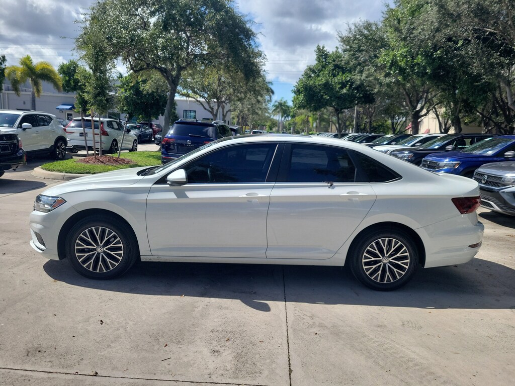 Certified. Pure White 2021 Volkswagen Jetta 1.4T SE 1.4L TSI 8-Speed Automatic FWD 4 Speakers, 4-Wheel Disc Brakes, ABS brakes, Air Conditioning, Alloy wheels, AM/FM radio, Brake assist, Bumpers: body-color, Delay-off headlights, Driver door bin, Driver vanity mirror, Dual front impact airbags, Dual front side impact airbags, Electronic Stability Control, Emergency communication system: VW Car-Net services (capabilities require enrollment or subscription), Exterior Parking Camera Rear, First Aid Kit, Front anti-roll bar, Front Bucket Seats, Front Center Armrest, Front wheel independent suspension, Fully automatic headlights, Illuminated entry, Low tire pressure warning, Monster Mats w/Logo Rubber Mats Kit (Set of 4), Occupant sensing airbag, Outside temperature display, Overhead airbag, Overhead console, Panic alarm, Passenger door bin, Passenger vanity mirror, Power door mirrors, Power steering, Power windows, Radio data system, Radio: Composition Color w/6.5" Touchscreen, Rear anti-roll bar, Rear reading lights, Rear window defroster, Remote keyless entry, Roadside Assistance Kit, Speed control, Speed-sensing steering, Split folding rear seat, Steering wheel mounted audio controls, Tachometer, Telescoping steering wheel, Tilt steering wheel, Traction control, Trip computer, Variably intermittent wipers, and Wheels: 16" 2-Tone Machined Alloy.