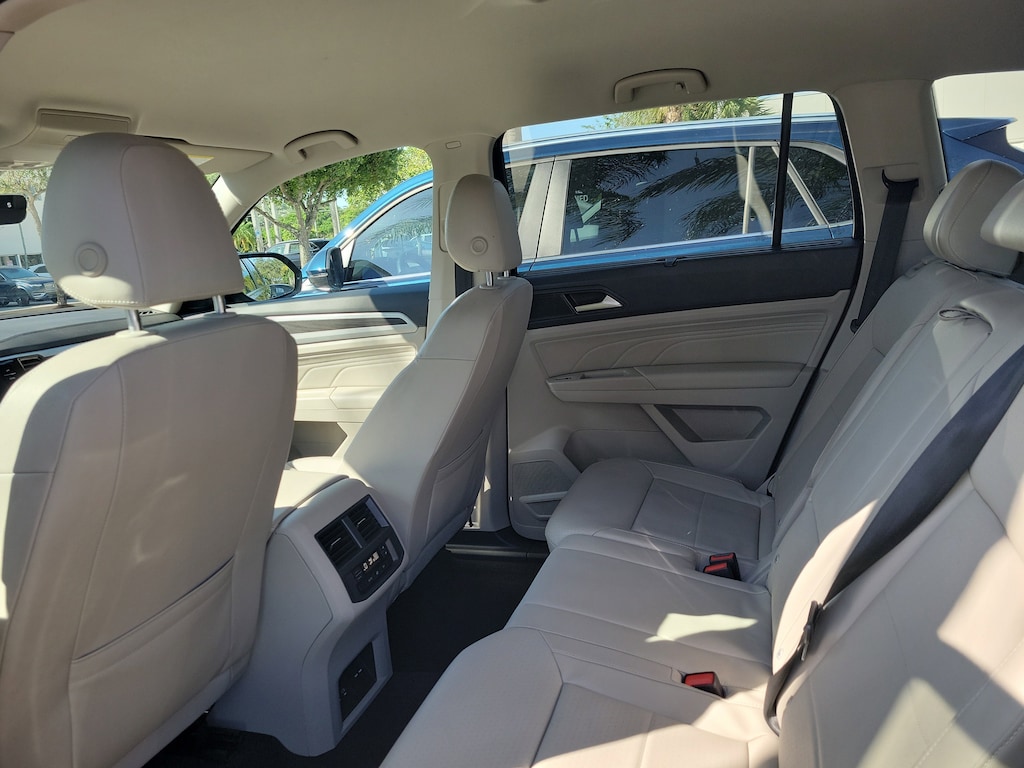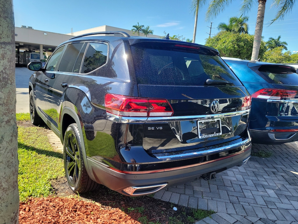 CARFAX One-Owner. Certified. Deep Black Pearl 2022 Volkswagen Atlas 3.6L V6 SE w/Technology 3.6L VR6 8-Speed Automatic with Tiptronic FWD 3.60 Axle Ratio, 3rd row seats: split-bench, 4-Wheel Disc Brakes, 6 Speakers, ABS brakes, Air Conditioning, Alloy wheels, AM/FM radio: SiriusXM with 360L, Auto-dimming Rear-View mirror, Automatic temperature control, Brake assist, Bumpers: body-color, Compass, Delay-off headlights, Driver door bin, Driver vanity mirror, Dual front impact airbags, Dual front side impact airbags, Electronic Stability Control, Emergency communication system, Exterior Parking Camera Rear, Four wheel independent suspension, Front anti-roll bar, Front Bucket Seats, Front Center Armrest, Front dual zone A/C, Front fog lights, Front reading lights, Fully automatic headlights, Heated Comfort Front Bucket Seats, Heated door mirrors, Heated front seats, Illuminated entry, Leather Shift Knob, Low tire pressure warning, Occupant sensing airbag, Outside temperature display, Overhead airbag, Overhead console, Panic alarm, Passenger door bin, Passenger vanity mirror, Perforated V-Tex Leatherette Seating Surfaces, Power door mirrors, Power driver seat, Power Liftgate, Power steering, Power windows, Radio data system, Radio: MIB3 Composition Media w/8" Touchscreen, Rain sensing wipers, Rear air conditioning, Rear anti-roll bar, Rear reading lights, Rear seat center armrest, Rear window defroster, Rear window wiper, Remote keyless entry, Roof rack: rails only, Security system, Speed control, Speed-sensing steering, Split folding rear seat, Spoiler, Standard Suspension, Steering wheel mounted audio controls, Tachometer, Telescoping steering wheel, Tilt steering wheel, Traction control, Trip computer, Turn signal indicator mirrors, Variably intermittent wipers, and Wheels: 20" x 8J 5-Spoke Silver Painted Alloy.