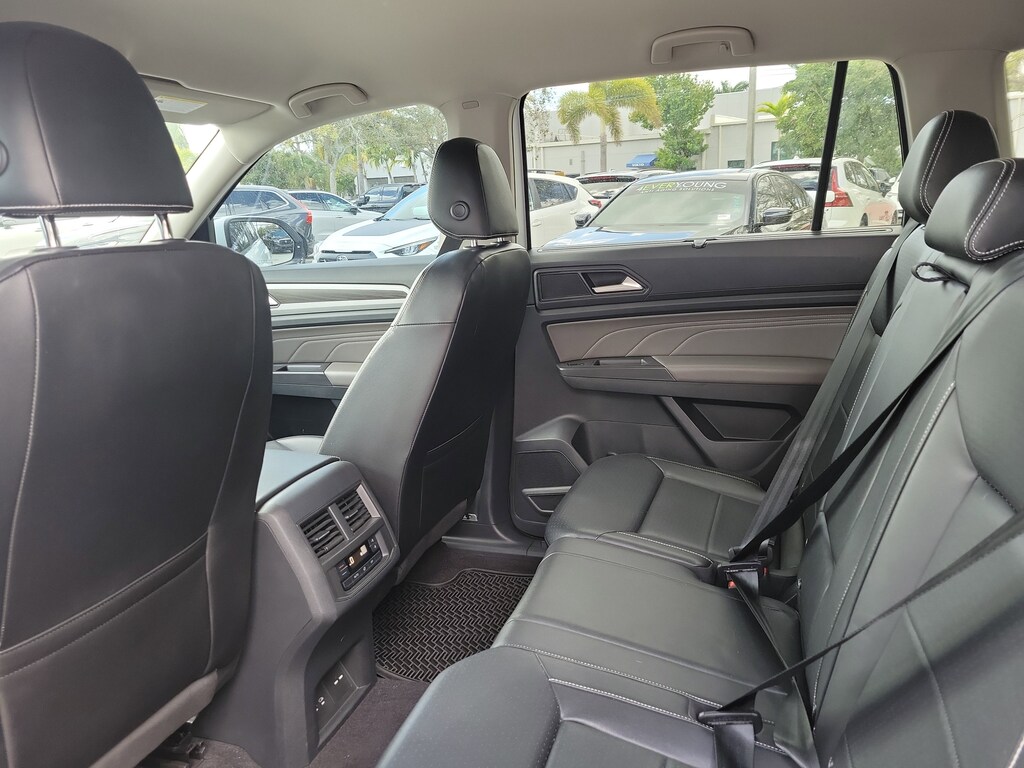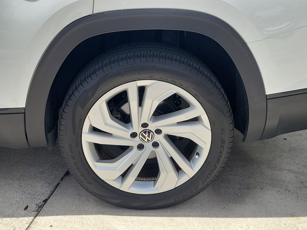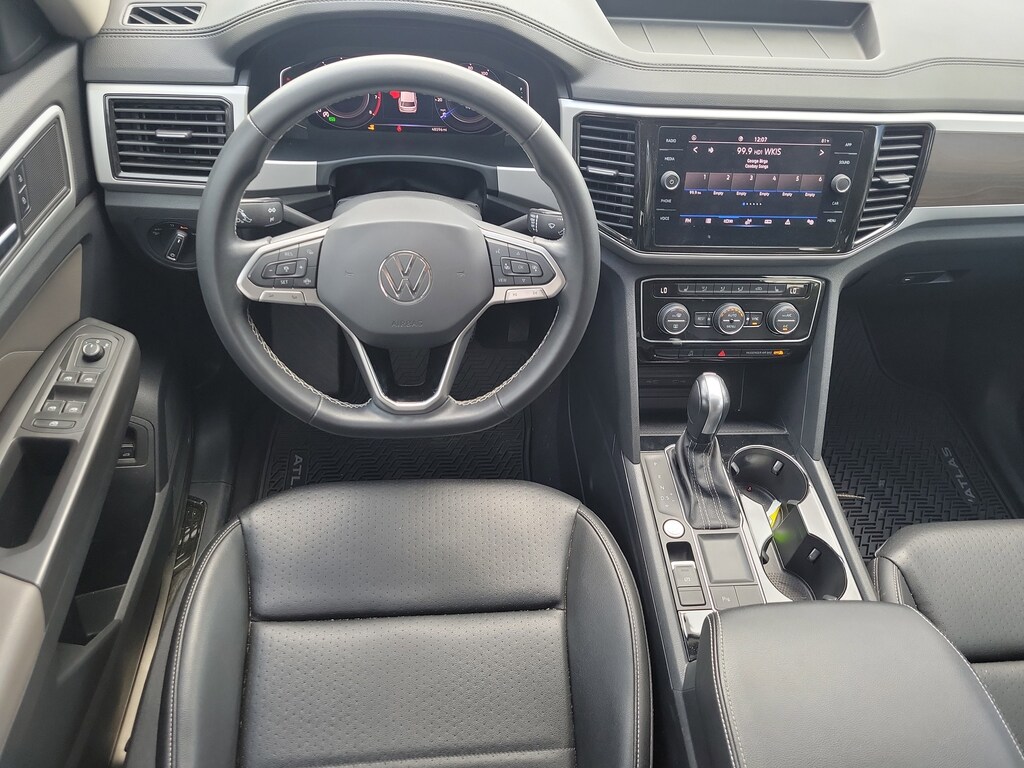 Recent Arrival! CARFAX One-Owner. Pure White 2022 Volkswagen Atlas 3.6L V6 SE w/Technology 3.6L VR6 8-Speed Automatic with Tiptronic FWD 3.60 Axle Ratio, 3rd row seats: split-bench, 4-Wheel Disc Brakes, 6 Speakers, ABS brakes, Air Conditioning, Alloy wheels, AM/FM radio: SiriusXM with 360L, Auto-dimming Rear-View mirror, Automatic temperature control, Brake assist, Bumpers: body-color, Compass, Delay-off headlights, Driver door bin, Driver vanity mirror, Dual front impact airbags, Dual front side impact airbags, Electronic Stability Control, Emergency communication system, Exterior Parking Camera Rear, Four wheel independent suspension, Front anti-roll bar, Front Bucket Seats, Front Center Armrest, Front dual zone A/C, Front fog lights, Front reading lights, Fully automatic headlights, Heated Comfort Front Bucket Seats, Heated door mirrors, Heated front seats, Illuminated entry, Leather Shift Knob, Low tire pressure warning, Occupant sensing airbag, Outside temperature display, Overhead airbag, Overhead console, Panic alarm, Passenger door bin, Passenger vanity mirror, Perforated V-Tex Leatherette Seating Surfaces, Power door mirrors, Power driver seat, Power Liftgate, Power steering, Power windows, Radio data system, Radio: MIB3 Composition Media w/8" Touchscreen, Rain sensing wipers, Rear air conditioning, Rear anti-roll bar, Rear reading lights, Rear seat center armrest, Rear window defroster, Rear window wiper, Remote keyless entry, Roof rack: rails only, Security system, Speed control, Speed-sensing steering, Split folding rear seat, Spoiler, Standard Suspension, Steering wheel mounted audio controls, Tachometer, Telescoping steering wheel, Tilt steering wheel, Traction control, Trip computer, Turn signal indicator mirrors, Variably intermittent wipers, and Wheels: 20" x 8J 5-Spoke Silver Painted Alloy.
