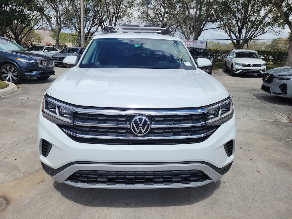 CARFAX One-Owner. Pure White 2022 Volkswagen Atlas 3.6L V6 SE w/Technology 3.6L VR6 8-Speed Automatic with Tiptronic FWD 3.60 Axle Ratio, 3rd row seats: split-bench, 4-Wheel Disc Brakes, 6 Speakers, ABS brakes, Air Conditioning, Alloy wheels, AM/FM radio: SiriusXM with 360L, Auto-dimming Rear-View mirror, Automatic temperature control, Brake assist, Bumpers: body-color, Compass, Delay-off headlights, Driver door bin, Driver vanity mirror, Dual front impact airbags, Dual front side impact airbags, Electronic Stability Control, Emergency communication system, Exterior Parking Camera Rear, Four wheel independent suspension, Front anti-roll bar, Front Bucket Seats, Front Center Armrest, Front dual zone A/C, Front fog lights, Front reading lights, Fully automatic headlights, Heated Comfort Front Bucket Seats, Heated door mirrors, Heated front seats, Illuminated entry, Leather Shift Knob, Low tire pressure warning, Occupant sensing airbag, Outside temperature display, Overhead airbag, Overhead console, Panic alarm, Passenger door bin, Passenger vanity mirror, Perforated V-Tex Leatherette Seating Surfaces, Power door mirrors, Power driver seat, Power Liftgate, Power steering, Power windows, Radio data system, Radio: MIB3 Composition Media w/8" Touchscreen, Rain sensing wipers, Rear air conditioning, Rear anti-roll bar, Rear reading lights, Rear seat center armrest, Rear window defroster, Rear window wiper, Remote keyless entry, Roof rack: rails only, Security system, Speed control, Speed-sensing steering, Split folding rear seat, Spoiler, Standard Suspension, Steering wheel mounted audio controls, Tachometer, Telescoping steering wheel, Tilt steering wheel, Traction control, Trip computer, Turn signal indicator mirrors, Variably intermittent wipers, and Wheels: 20" x 8J 5-Spoke Silver Painted Alloy.