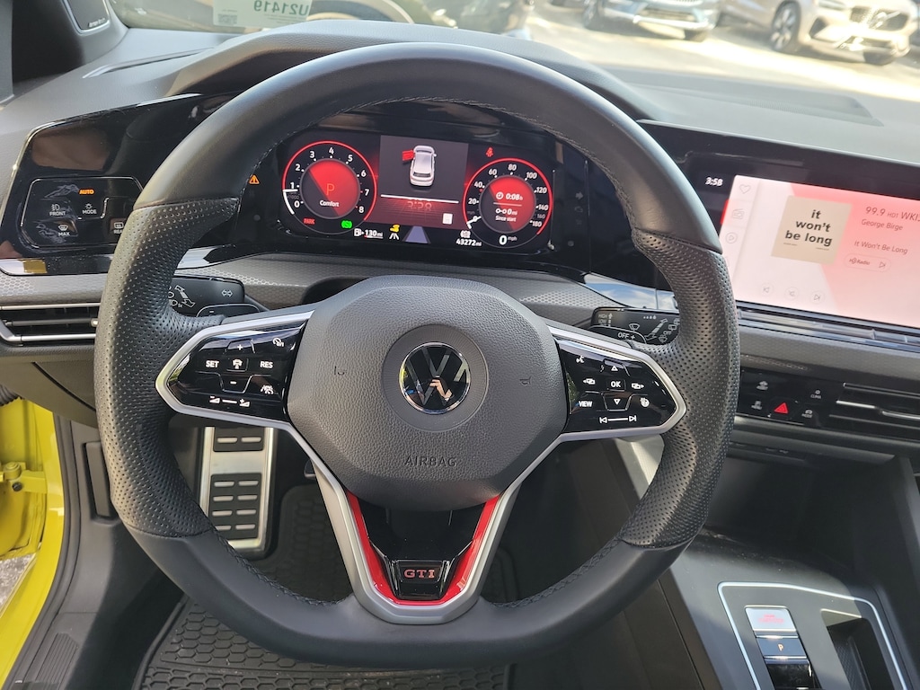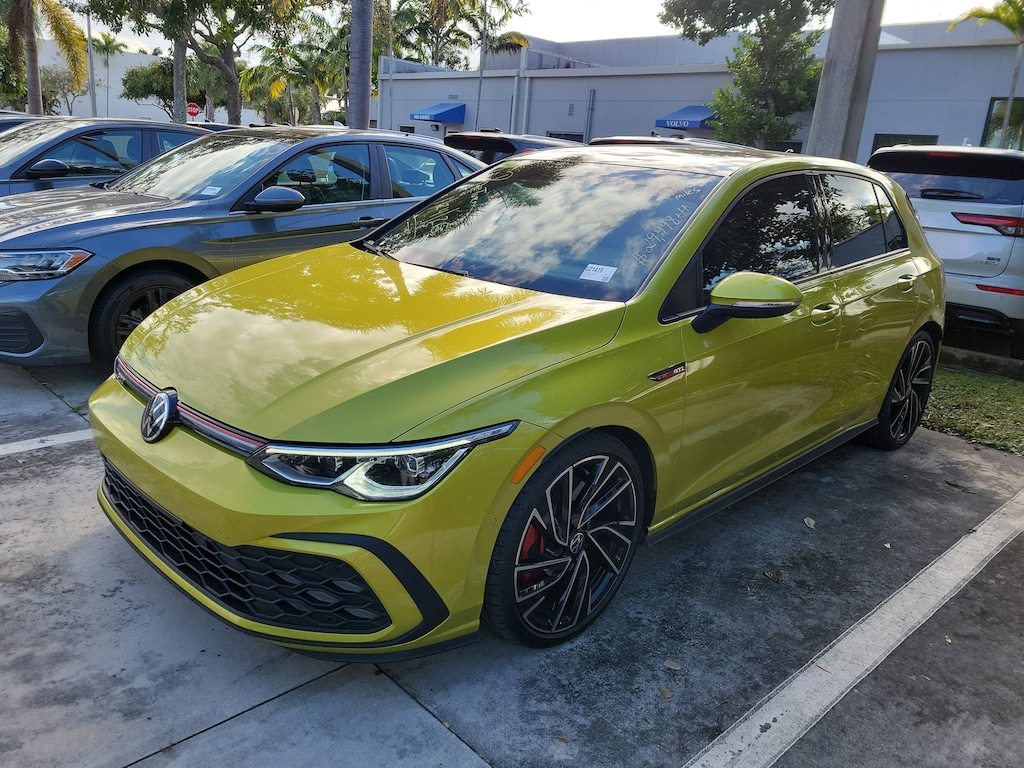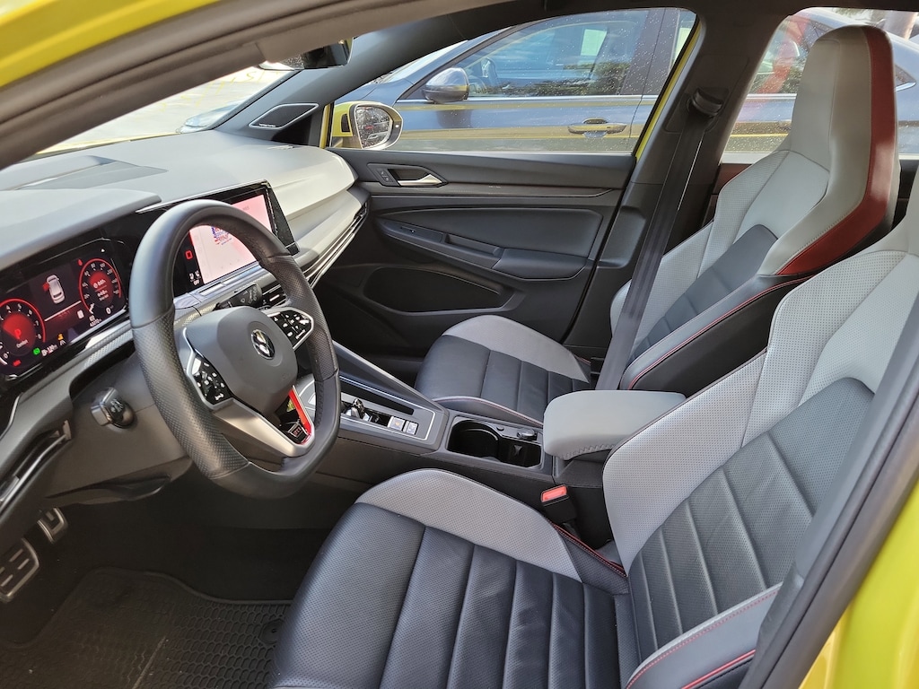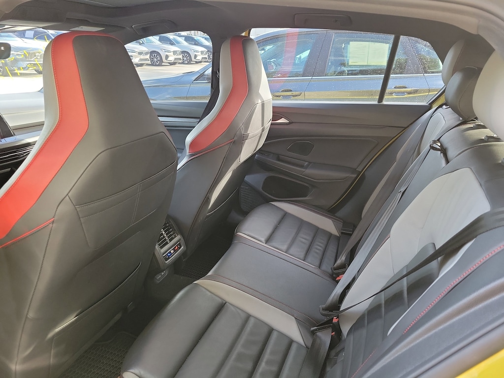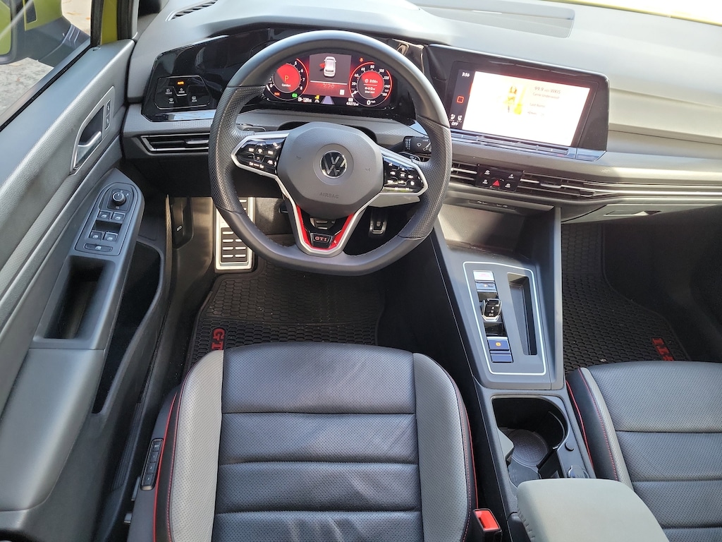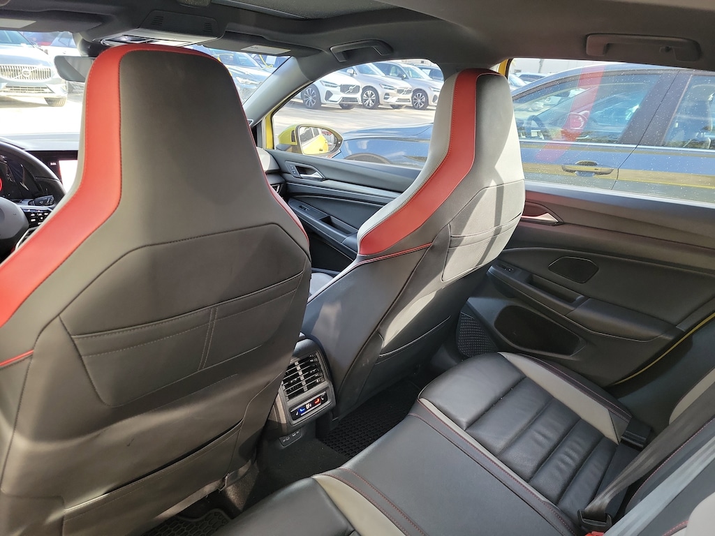 CARFAX One-Owner. Yellow Metallic 2022 Volkswagen Golf GTI Autobahn 2.0L TSI DOHC 7-Speed DSG Automatic with Tiptronic FWD 4-Wheel Disc Brakes, 9 Speakers, ABS brakes, Active Blind Spot Monitor, Actively Ventilated Front Seats, Adaptive suspension, Air Conditioning, Alloy wheels, AM/FM radio: SiriusXM with 360L, Auto High-beam Headlights, Auto-dimming Rear-View mirror, Auto-Dimming Rearview Mirror w/HomeLink Connect (DISC), Automatic temperature control, Brake assist, Bumpers: body-color, Compass, Delay-off headlights, Driver door bin, Driver vanity mirror, Dual front impact airbags, Dual front side impact airbags, Electronic Stability Control, Emergency communication system: VW Car-Net services (capabilities require enrollment or subscription), Exterior Parking Camera Rear, First Aid Kit, Forward collision: FCW w/Autonomous Emergency Braking mitigation, Four wheel independent suspension, Front anti-roll bar, Front Bucket Seats, Front Center Armrest, Front dual zone A/C, Front fog lights, Front reading lights, Fully automatic headlights, harman/kardon® Speakers, Heads-Up Display, Heated door mirrors, Heated front seats, Heated Front Top Sport Seats, Heated rear seats, Heated steering wheel, Illuminated entry, Leather steering wheel, Low tire pressure warning, Memory seat, Navigation System, Occupant sensing airbag, Outside temperature display, Overhead airbag, Overhead console, Panic alarm, Passenger door bin, Passenger vanity mirror, Perforated Vienna Leather Seating Surfaces, Power door mirrors, Power driver seat, Power moonroof: Panoramic, Power passenger seat, Power steering, Power windows, Radio data system, Radio: MIB3 Discover Pro w/10" Touchscreen Navi, Rain sensing wipers, Rear air conditioning, Rear anti-roll bar, Rear reading lights, Rear seat center armrest, Rear window defroster, Rear window wiper, Remote keyless entry, Roadside Assistance Kit, Rubber Mats Kit, Security system, Speed control, Speed-sensing steering, Speed-Sensitive Wipers, Split folding rear seat, Spoiler, Sport steering wheel, Steering wheel mounted audio controls, Tachometer, Telescoping steering wheel, Tilt steering wheel, Traction control, Trip computer, Turn signal indicator mirrors, Variably intermittent wipers, Ventilated front seats, and Wheels: 19" x 8J 2-Tone Machined Alloy.