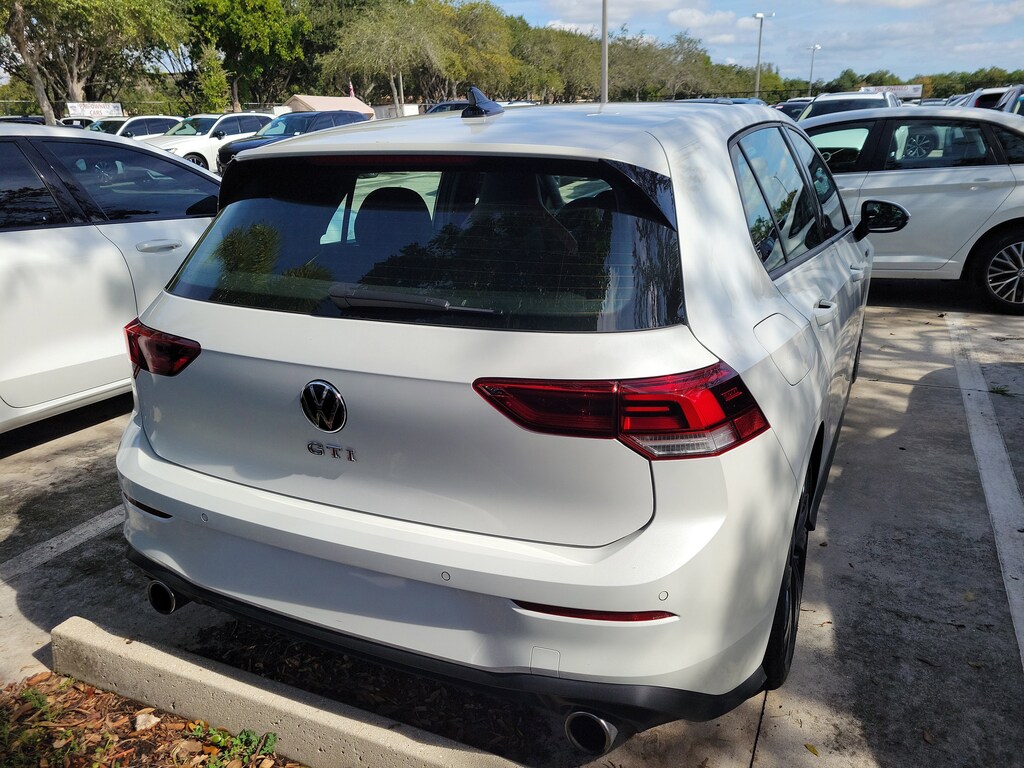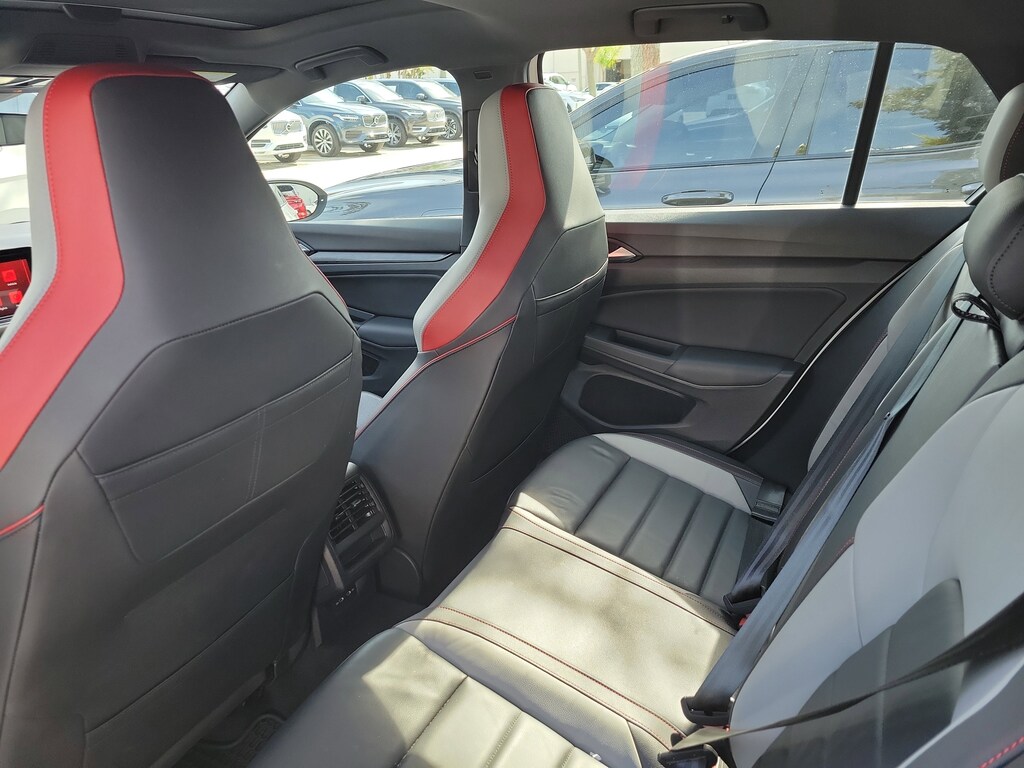 White Pearl 2022 Volkswagen Golf GTI 2.0T SE 2.0L TSI DOHC 7-Speed DSG Automatic with Tiptronic FWD 4-Wheel Disc Brakes, 9 Speakers, ABS brakes, Air Conditioning, Alloy wheels, AM/FM radio: SiriusXM with 360L, Auto-dimming Rear-View mirror, Automatic temperature control, Brake assist, Bumpers: body-color, Cloth Seating Surfaces, Compass, Delay-off headlights, Driver door bin, Driver vanity mirror, Dual front impact airbags, Dual front side impact airbags, Electronic Stability Control, Emergency communication system: VW Car-Net services (capabilities require enrollment or subscription), Exterior Parking Camera Rear, Forward collision: FCW w/Autonomous Emergency Braking mitigation, Four wheel independent suspension, Front anti-roll bar, Front Bucket Seats, Front Center Armrest, Front fog lights, Front reading lights, Fully automatic headlights, harman/kardon® Speakers, Heated door mirrors, Heated front seats, Heated Front Top Sport Seats, Heated steering wheel, Illuminated entry, Lane Departure Warning System, Leather steering wheel, Low tire pressure warning, Navigation System, Occupant sensing airbag, Outside temperature display, Overhead airbag, Overhead console, Panic alarm, Passenger door bin, Passenger vanity mirror, Power door mirrors, Power driver seat, Power moonroof: Panoramic, Power passenger seat, Power steering, Power windows, Radio data system, Radio: MIB3 Discover Pro w/10" Touchscreen Navi, Rain sensing wipers, Rear anti-roll bar, Rear reading lights, Rear seat center armrest, Rear window defroster, Rear window wiper, Remote keyless entry, Security system, Speed control, Speed-sensing steering, Speed-Sensitive Wipers, Split folding rear seat, Spoiler, Sport steering wheel, Steering wheel mounted audio controls, Tachometer, Telescoping steering wheel, Tilt steering wheel, Traction control, Trip computer, Turn signal indicator mirrors, Variably intermittent wipers, and Wheels: 18" x 7.5J 2-Tone Machined Alloy.