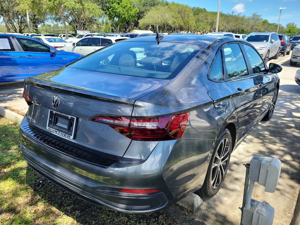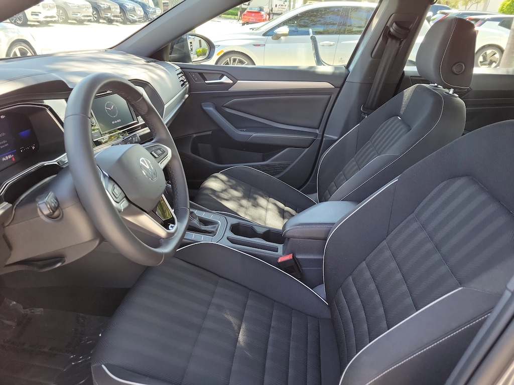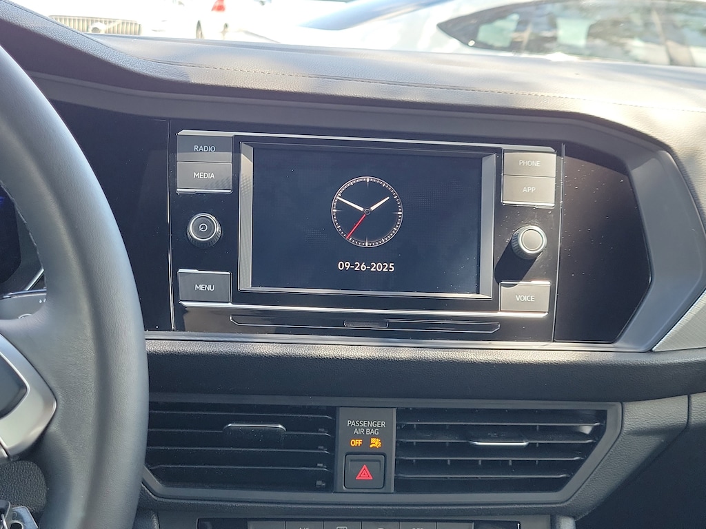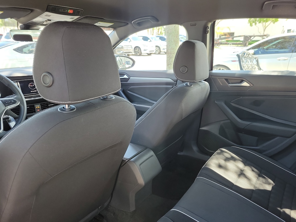 CARFAX One-Owner. Platinum Gray 2022 Volkswagen Jetta 1.5T Sport 1.5L I-4 DI DOHC Turbocharged 8-Speed Automatic with Tiptronic FWD 4 Speakers, 4-Wheel Disc Brakes, ABS brakes, Air Conditioning, Alloy wheels, AM/FM radio, Brake assist, Bumpers: body-color, Cloth Seat Trim, Delay-off headlights, Driver door bin, Driver vanity mirror, Dual front impact airbags, Dual front side impact airbags, Electronic Stability Control, Emergency communication system: Car-Net, Exterior Parking Camera Rear, Front anti-roll bar, Front Bucket Seats, Front Center Armrest, Front Comfort Seats, Front wheel independent suspension, Fully automatic headlights, Heated door mirrors, Illuminated entry, Low tire pressure warning, Occupant sensing airbag, Outside temperature display, Overhead airbag, Overhead console, Panic alarm, Passenger door bin, Passenger vanity mirror, Power door mirrors, Power steering, Power windows, Radio data system, Radio: MIB3 Composition Color w/6.5" Touchscreen, Rear anti-roll bar, Rear reading lights, Rear seat center armrest, Rear window defroster, Remote keyless entry, Speed control, Speed-sensing steering, Split folding rear seat, Steering wheel mounted audio controls, Tachometer, Telescoping steering wheel, Tilt steering wheel, Traction control, Trip computer, Variably intermittent wipers, and Wheels: 17" 2-Tone Machined Alloy.
