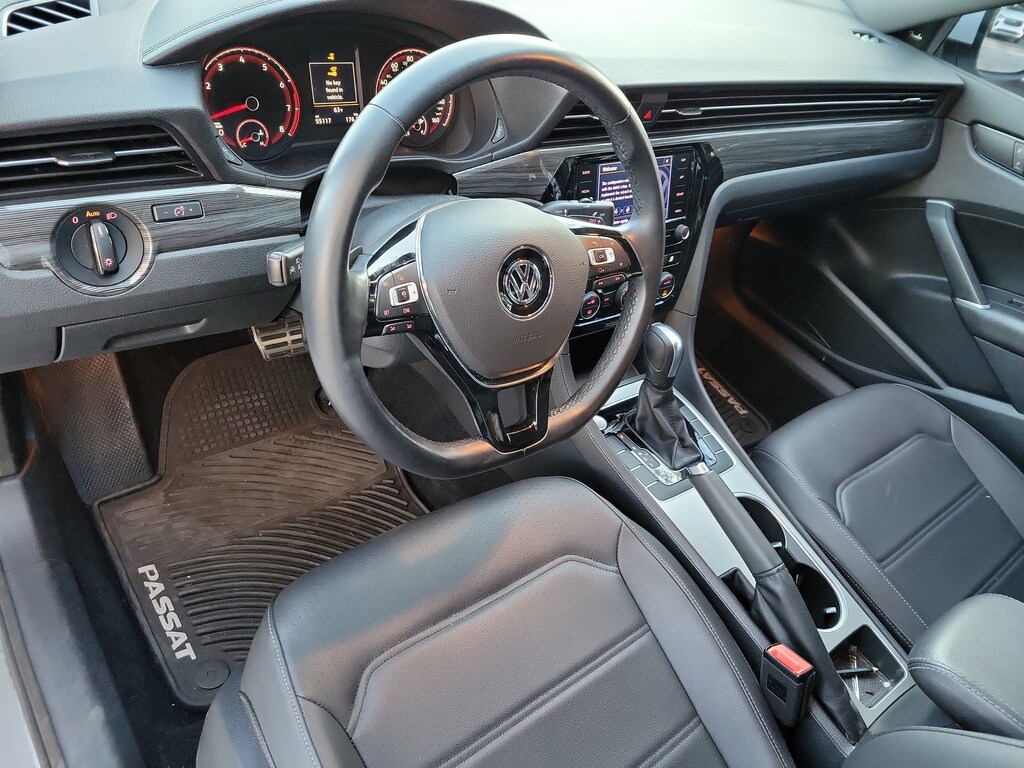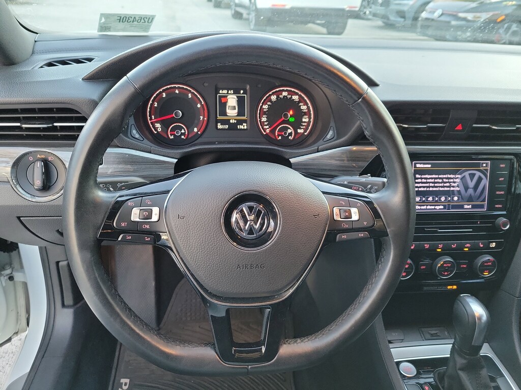 Pure White 2022 Volkswagen Passat 2.0T R-Line 2.0L I4 TSI Turbocharged 6-Speed Automatic with Tiptronic FWD 4-Wheel Disc Brakes, 9 Speakers, ABS brakes, Active Blind Spot Monitor, Air Conditioning, Alloy wheels, AM/FM radio: SiriusXM, Auto High-beam Headlights, Auto-dimming Rear-View mirror, Automatic temperature control, Brake assist, Bumpers: body-color, Delay-off headlights, Driver door bin, Driver vanity mirror, Dual front impact airbags, Dual front side impact airbags, Electronic Stability Control, Emergency communication system, Exterior Parking Camera Rear, Four wheel independent suspension, Frameless Auto-Dimming Rearview Mirror, Front anti-roll bar, Front Bucket Seats, Front Center Armrest, Front dual zone A/C, Front reading lights, Fully automatic headlights, Heated door mirrors, Heated Front Comfort Seats, Heated front seats, Illuminated entry, Leather Shift Knob, Leather steering wheel, Low tire pressure warning, MojoMats w/Logo Carpeted Mats Kit (Set of 4), Navigation System, Occupant sensing airbag, Outside temperature display, Overhead airbag, Overhead console, Panic alarm, Passenger door bin, Passenger vanity mirror, Perforated V-Tex Leatherette Seating Surfaces, Power door mirrors, Power driver seat, Power moonroof, Power steering, Power windows, Radio data system, Radio: Discover Media w/Touchscreen Navigation, Rain sensing wipers, Rear anti-roll bar, Rear reading lights, Rear seat center armrest, Rear window defroster, Remote keyless entry, Security system, Speed control, Speed-sensing steering, Split folding rear seat, Spoiler, Steering wheel mounted audio controls, Tachometer, Telescoping steering wheel, Tilt steering wheel, Traction control, Trip computer, Turn signal indicator mirrors, Variably intermittent wipers, and Wheels: 19" x 8J 5-Spoke 2-Tone Machined Alloy.