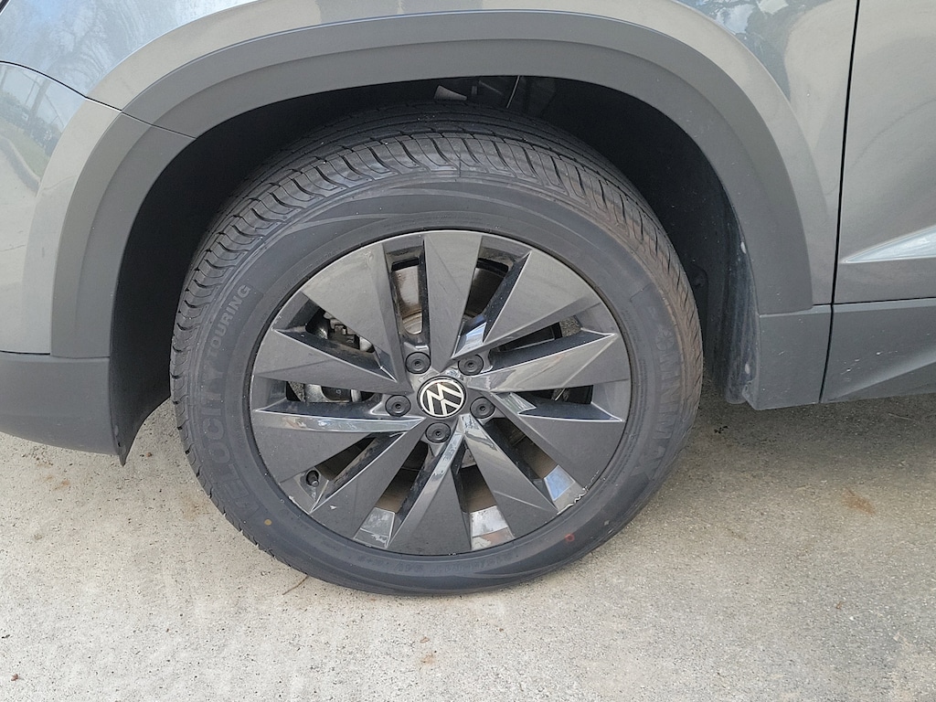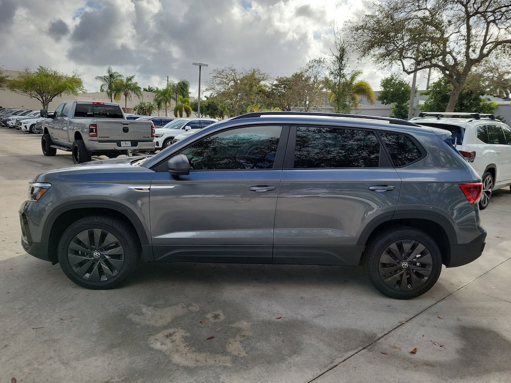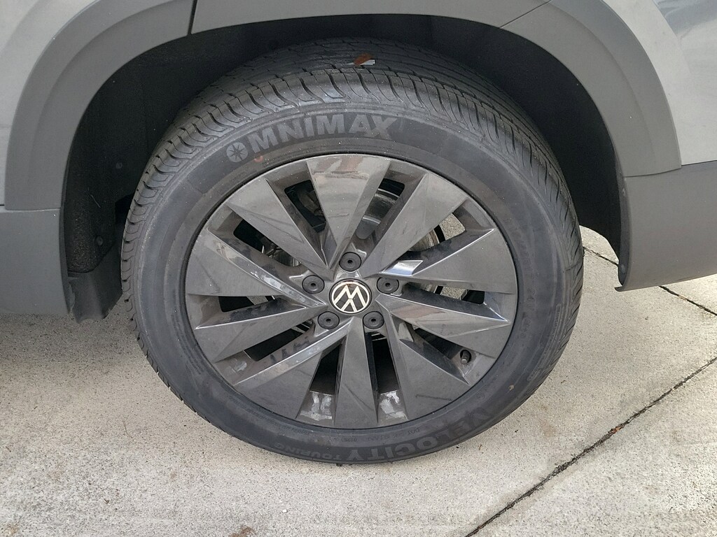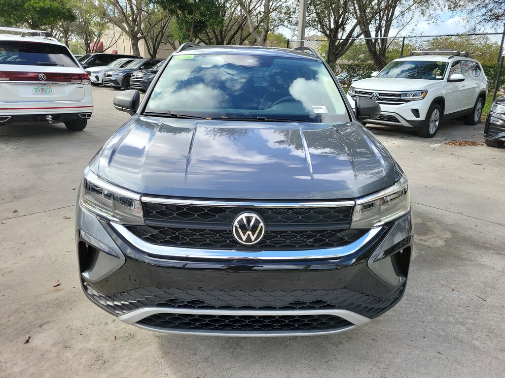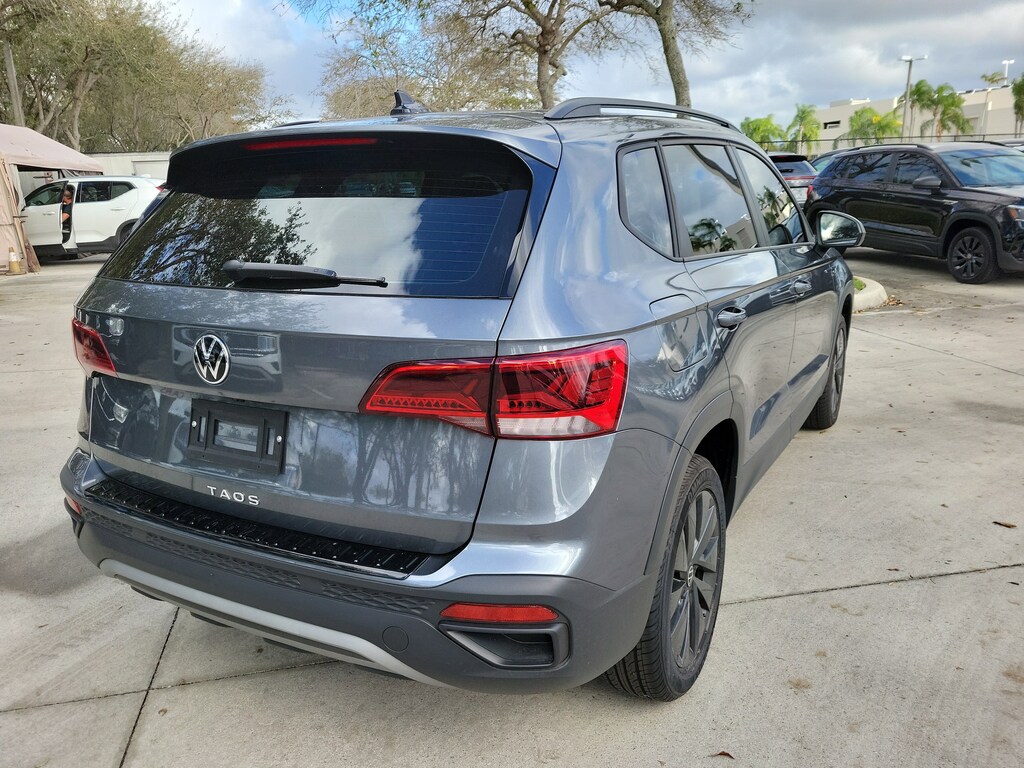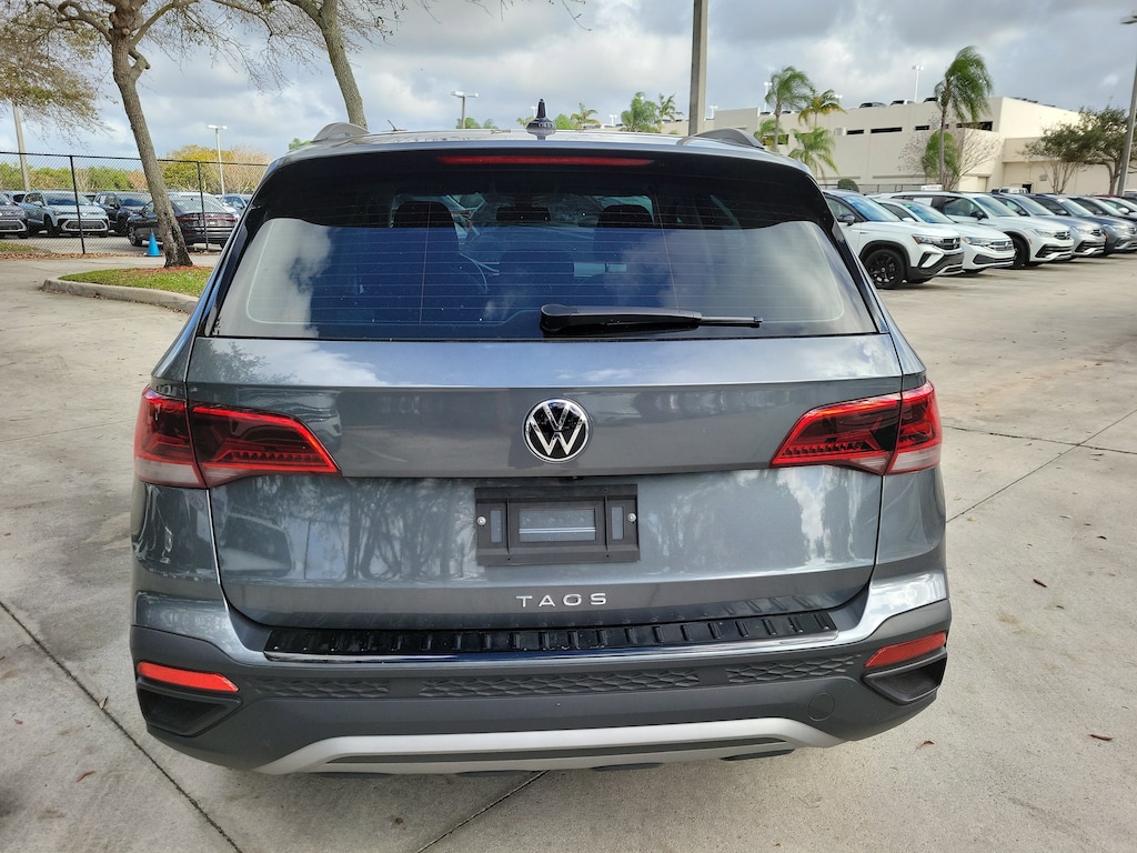 CARFAX One-Owner. Platinum Gray Metallic 2022 Volkswagen Taos 1.5T S 1.5L I4 Turbocharged DOHC 16V LEV3-SULEV30 158hp 8-Speed Automatic with Tiptronic FWD IQ.DRIVE S Package (Active Blind Spot Monitor, Adaptive Cruise Control (ACC) w/Stop & Go, Emergency Assist, Front Assist, Hands-On Detection Sensor Steering Wheel, Lane Assist (Lane Keeping System), Rear Traffic Alert, and Travel Assist (Semi-Automated Driving Assistance)), S Convenience Package (Automatic Rain-Sensing Front Wipers, Heated Leatherette-Wrapped Steering Wheel, Leather-Trimmed Shifter, and Light Assist (High Beam Control)), 17" Silver Alloy Wheels, 3.23 Axle Ratio, 4-Wheel Disc Brakes, 6 Speakers, ABS brakes, Air Conditioning, Alloy wheels, AM/FM radio, Brake assist, Bumpers: body-color, Cloth Seating Surfaces, Compass, Delay-off headlights, Driver door bin, Driver vanity mirror, Dual front impact airbags, Dual front side impact airbags, Electronic Stability Control, Emergency communication system: Car-Net, Exterior Parking Camera Rear, First Aid Kit, Front anti-roll bar, Front Bucket Seats, Front Center Armrest, Front reading lights, Front Strut Rear Torsion Beam Suspension, Front wheel independent suspension, Fully automatic headlights, Illuminated entry, Low tire pressure warning, Occupant sensing airbag, Outside temperature display, Overhead airbag, Overhead console, Panic alarm, Passenger door bin, Passenger vanity mirror, Power door mirrors, Power steering, Power windows, Radio data system, Radio: Composition Color AM/FM, Rear anti-roll bar, Rear seat center armrest, Rear window defroster, Rear window wiper, Remote keyless entry, Roadside Assistance Kit, Roof rack: rails only, Rubber Mats Kit (SNM), Speed control, Speed-sensing steering, Split folding rear seat, Spoiler, Steering wheel mounted audio controls, Tachometer, Telescoping steering wheel, Tilt steering wheel, Traction control, Trip computer, and Variably intermittent wipers.