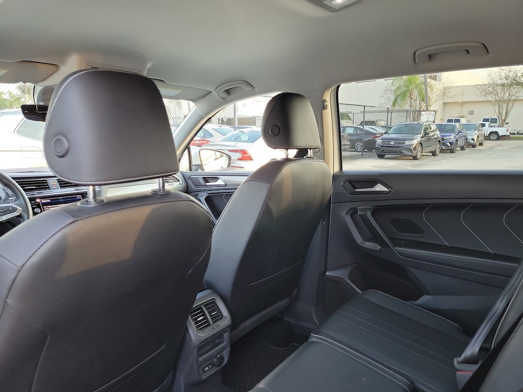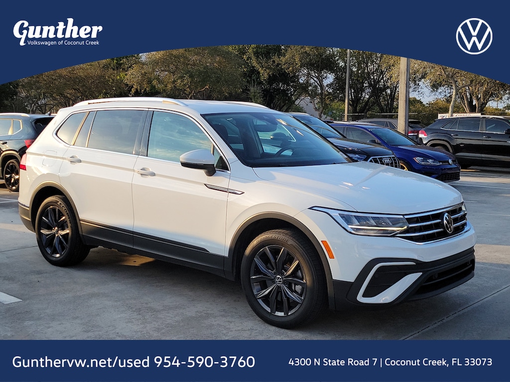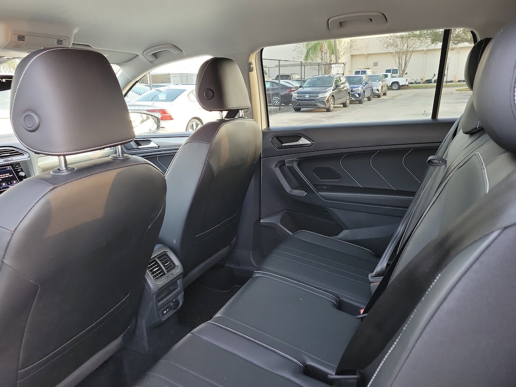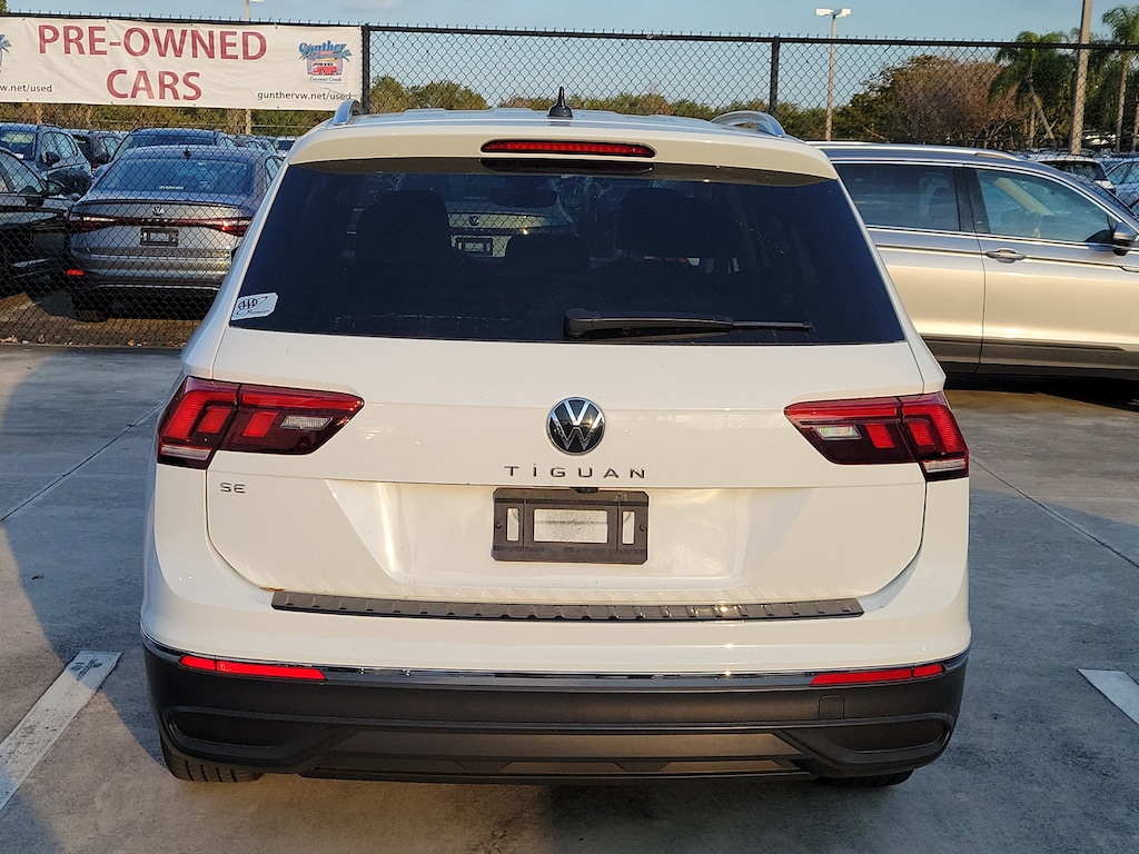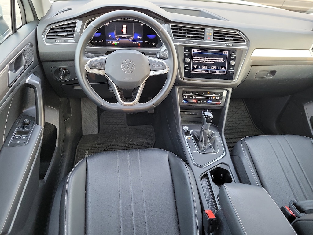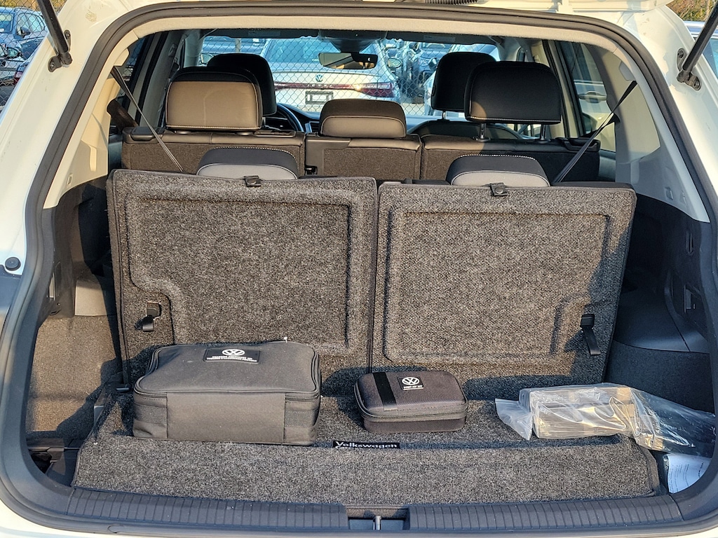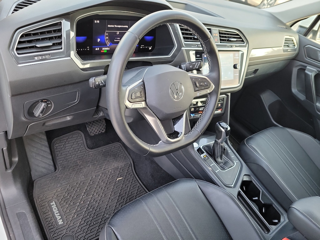 CARFAX One-Owner. Pure White 2022 Volkswagen Tiguan 2.0T SE 2.0L TSI DOHC 8-Speed Automatic with Tiptronic FWD 3.33 Axle Ratio, 3rd row seats: bench, 4-Wheel Disc Brakes, 4-Wheel Independent Suspension, 6 Speakers, ABS brakes, Air Conditioning, Alloy wheels, AM/FM radio: SiriusXM with 360L, Auto-dimming Rear-View mirror, Automatic temperature control, Brake assist, Bumpers: body-color, Compass, Delay-off headlights, Driver door bin, Driver vanity mirror, Dual front impact airbags, Dual front side impact airbags, Electronic Stability Control, Emergency communication system: Car-Net, Exterior Parking Camera Rear, Four wheel independent suspension, Front anti-roll bar, Front Bucket Seats, Front Center Armrest, Front dual zone A/C, Front reading lights, Fully automatic headlights, Heated door mirrors, Heated Front Comfort Seats, Heated front seats, Illuminated entry, Leather Shift Knob, Low tire pressure warning, Occupant sensing airbag, Outside temperature display, Overhead airbag, Overhead console, Panic alarm, Passenger door bin, Passenger vanity mirror, Perforated V-Tex Leatherette Seating Surfaces, Power door mirrors, Power driver seat, Power Liftgate, Power steering, Power windows, Radio data system, Radio: MIB3 Composition Media AM/FM/HD, Rain sensing wipers, Rear anti-roll bar, Rear reading lights, Rear seat center armrest, Rear window defroster, Rear window wiper, Remote keyless entry, Roof rack: rails only, Security system, Speed control, Speed-sensing steering, Split folding rear seat, Spoiler, Steering wheel mounted audio controls, Tachometer, Telescoping steering wheel, Tilt steering wheel, Traction control, Trip computer, Turn signal indicator mirrors, Variably intermittent wipers, and Wheels: 18" Dark Graphite 10-Spoke Alloy.