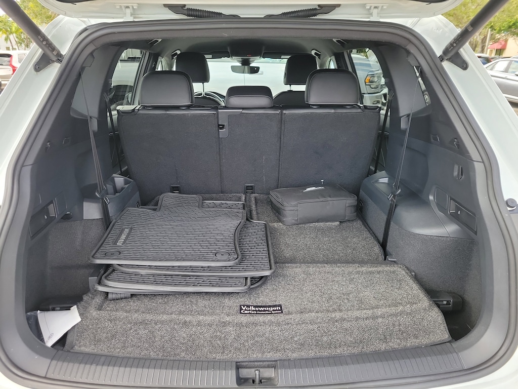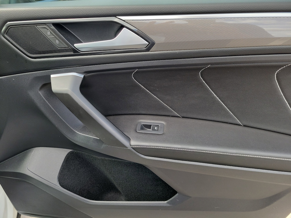CARFAX One-Owner. Pure White 2022 Volkswagen Tiguan 2.0T SE R-Line Black 2.0L TSI DOHC 8-Speed Automatic with Tiptronic FWD 3-Row Rubber Monster Mats w/Logo Kit (Set of 5), 3.33 Axle Ratio, 3rd row seats: bench, 4-Wheel Disc Brakes, 4-Wheel Independent Suspension, 6 Speakers, ABS brakes, Air Conditioning, Alloy wheels, AM/FM radio: SiriusXM with 360L, Auto-Dimming Rear-View Mirror, Auto-dimming Rear-View mirror, Automatic temperature control, Brake assist, Bumpers: body-color, Cargo Area Retractable Privacy Cover, Compass, Delay-off headlights, Driver door bin, Driver vanity mirror, Dual front impact airbags, Dual front side impact airbags, Electronic Stability Control, Emergency communication system: Car-Net, Exterior Parking Camera Rear, First Aid Kit, Four wheel independent suspension, Front anti-roll bar, Front Bucket Seats, Front Center Armrest, Front dual zone A/C, Front reading lights, Fully automatic headlights, Heated door mirrors, Heated Front Comfort Seats, Heated front seats, Heavy Duty Trunk Liner w/VW CarGo Blocks, Illuminated entry, Leather Shift Knob, Leather steering wheel, Low tire pressure warning, Occupant sensing airbag, Outside temperature display, Overhead airbag, Overhead console, Panic alarm, Passenger door bin, Passenger vanity mirror, Perforated V-Tex Leatherette Seating Surfaces, Power door mirrors, Power driver seat, Power Liftgate, Power moonroof, Power steering, Power windows, Radio data system, Radio: MIB3 Composition Media AM/FM/HD, Rain sensing wipers, Rear anti-roll bar, Rear reading lights, Rear seat center armrest, Rear window defroster, Rear window wiper, Remote keyless entry, Roadside Assistance Kit, Roof rack: rails only, Security system, Speed control, Speed-sensing steering, Split folding rear seat, Spoiler, Sport steering wheel, Steering wheel mounted audio controls, Tachometer, Telescoping steering wheel, Tilt steering wheel, Traction control, Trip computer, Turn signal indicator mirrors, Variably intermittent wipers, and Wheels: 19" Black Twin 5-Spoke Alloy.