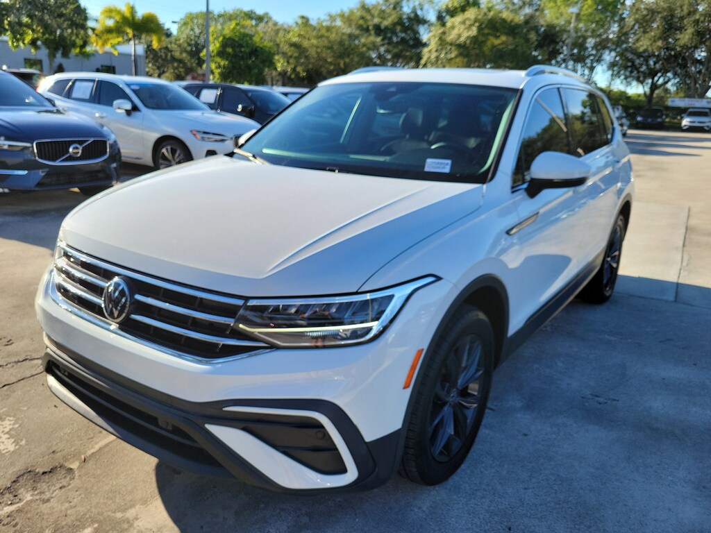 CARFAX One-Owner. Certified. Pure White 2022 Volkswagen Tiguan 2.0T SE 2.0L TSI DOHC 8-Speed Automatic with Tiptronic FWD Panoramic Sunroof Package, 3-Row Rubber Monster Mats w/Logo Kit (Set of 5), 3.33 Axle Ratio, 3rd row seats: bench, 4-Wheel Disc Brakes, 4-Wheel Independent Suspension, 6 Speakers, ABS brakes, Air Conditioning, Alloy wheels, AM/FM radio: SiriusXM with 360L, Auto-Dimming Rear-View Mirror, Auto-dimming Rear-View mirror, Automatic temperature control, Brake assist, Bumpers: body-color, Cargo Area Retractable Privacy Cover, Compass, Delay-off headlights, Driver door bin, Driver vanity mirror, Dual front impact airbags, Dual front side impact airbags, Electronic Stability Control, Emergency communication system: Car-Net, Exterior Parking Camera Rear, Four wheel independent suspension, Front anti-roll bar, Front Bucket Seats, Front Center Armrest, Front dual zone A/C, Front reading lights, Fully automatic headlights, Heated door mirrors, Heated Front Comfort Seats, Heated front seats, Heavy Duty Trunk Liner w/VW CarGo Blocks, Illuminated entry, Leather Shift Knob, Low tire pressure warning, Occupant sensing airbag, Outside temperature display, Overhead airbag, Overhead console, Panic alarm, Passenger door bin, Passenger vanity mirror, Perforated V-Tex Leatherette Seating Surfaces, Power door mirrors, Power driver seat, Power Liftgate, Power steering, Power windows, Radio data system, Radio: MIB3 Composition Media AM/FM/HD, Rain sensing wipers, Rear anti-roll bar, Rear reading lights, Rear seat center armrest, Rear window defroster, Rear window wiper, Remote keyless entry, Roof rack: rails only, Security system, Speed control, Speed-sensing steering, Split folding rear seat, Spoiler, Steering wheel mounted audio controls, Tachometer, Telescoping steering wheel, Tilt steering wheel, Traction control, Trip computer, Turn signal indicator mirrors, Variably intermittent wipers, and Wheels: 18" Dark Graphite 10-Spoke Alloy.