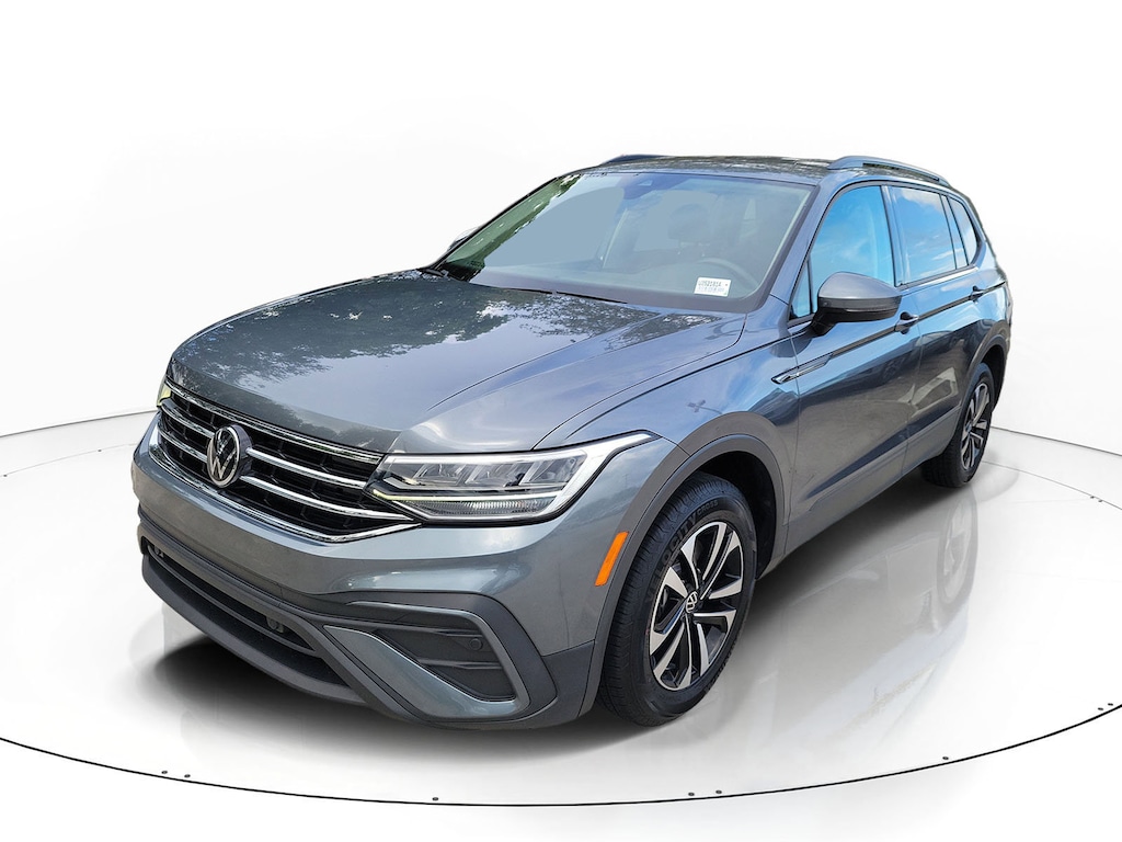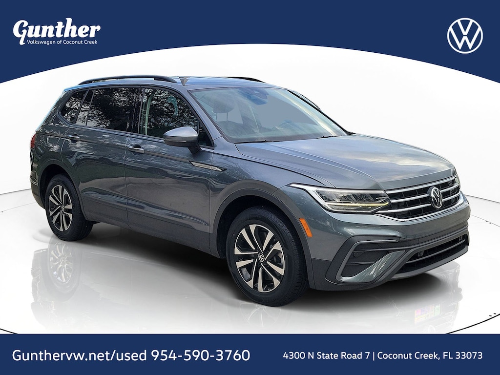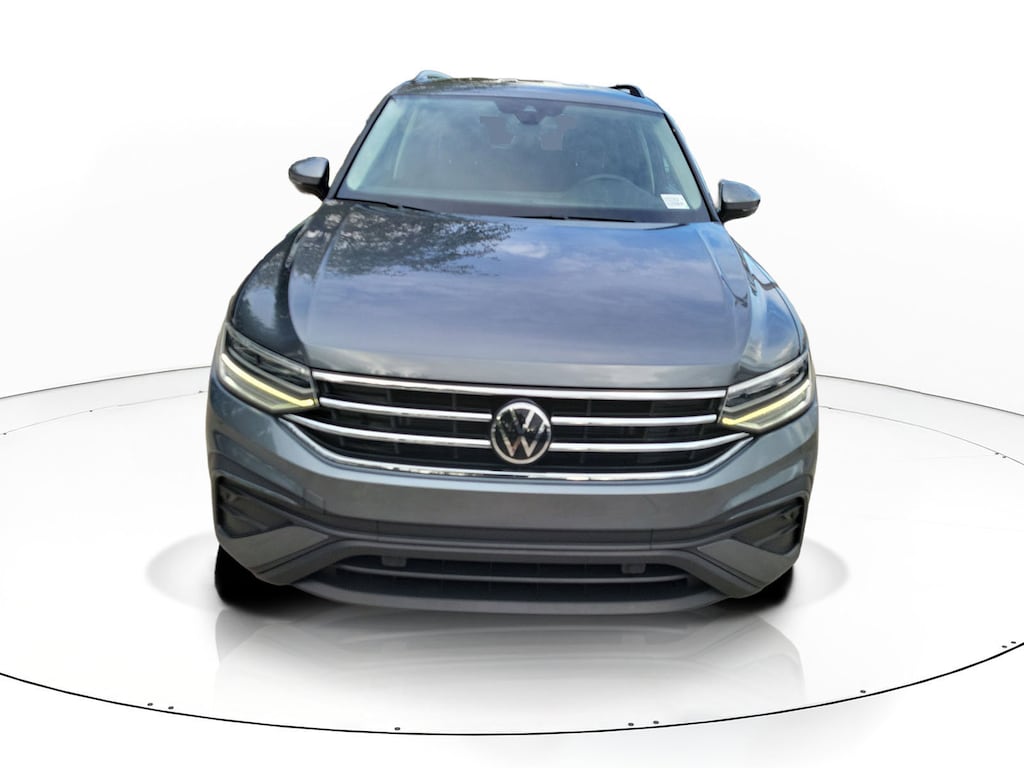 Recent Arrival! Platinum Gray 2022 Volkswagen Tiguan 2.0T S 2.0L TSI DOHC 8-Speed Automatic with Tiptronic AWD 3.33 Axle Ratio, 4-Wheel Disc Brakes, 4-Wheel Independent Suspension, 6 Speakers, ABS brakes, Air Conditioning, Alloy wheels, AM/FM radio, Brake assist, Bumpers: body-color, Cloth Seating Surfaces, Compass, Delay-off headlights, Driver door bin, Driver vanity mirror, Dual front impact airbags, Dual front side impact airbags, Electronic Stability Control, Emergency communication system: Car-Net, Exterior Parking Camera Rear, Forward collision: FCW w/Autonomous Emergency Braking mitigation, Four wheel independent suspension, Front anti-roll bar, Front Bucket Seats, Front Center Armrest, Front reading lights, Fully automatic headlights, Heated door mirrors, Heated Front Bucket Seats, Heated front seats, Illuminated entry, Leather Shift Knob, Low tire pressure warning, Occupant sensing airbag, Outside temperature display, Overhead airbag, Overhead console, Panic alarm, Passenger door bin, Passenger vanity mirror, Power door mirrors, Power steering, Power windows, Radio data system, Radio: Composition Color AM/FM, Rear anti-roll bar, Rear reading lights, Rear seat center armrest, Rear window defroster, Rear window wiper, Remote keyless entry, Roof rack: rails only, Speed control, Speed-sensing steering, Split folding rear seat, Spoiler, Steering wheel mounted audio controls, Tachometer, Telescoping steering wheel, Tilt steering wheel, Traction control, Trip computer, Turn signal indicator mirrors, Variably intermittent wipers, and Wheels: 17" 2-Tone Machined Twin 5-Spoke Alloy.