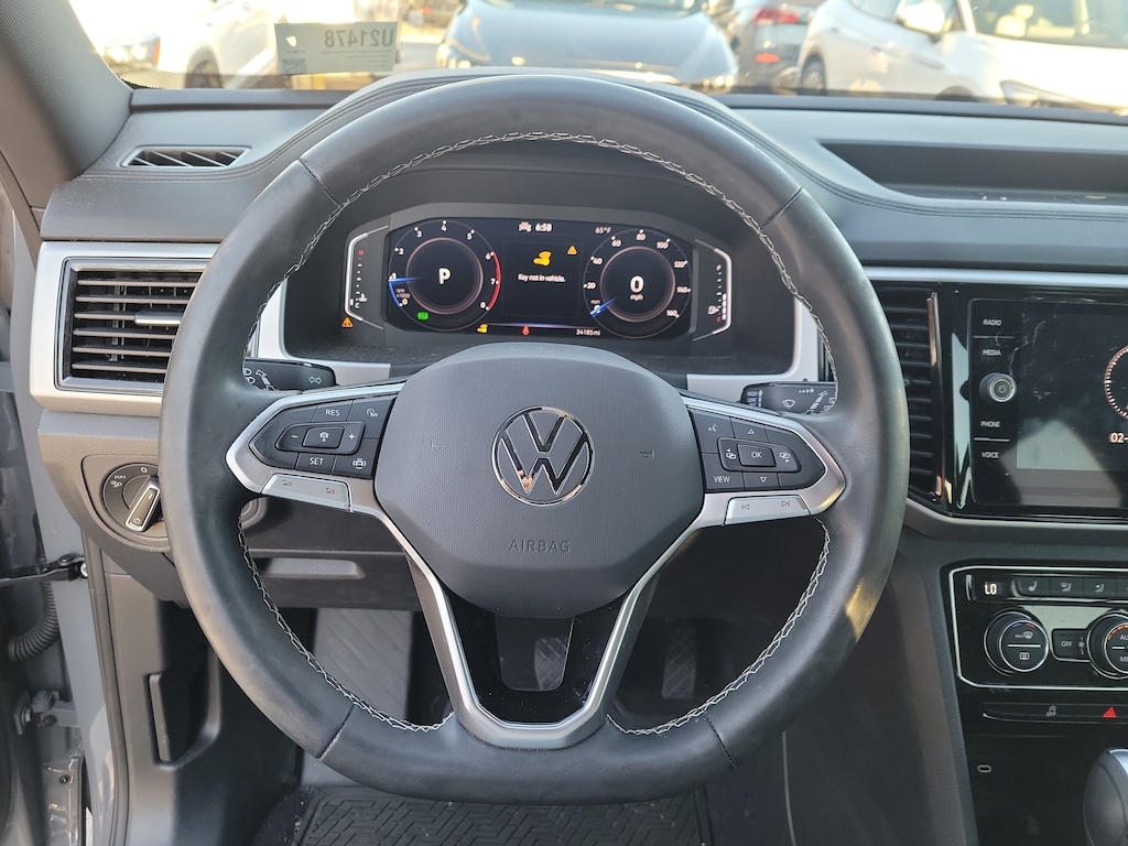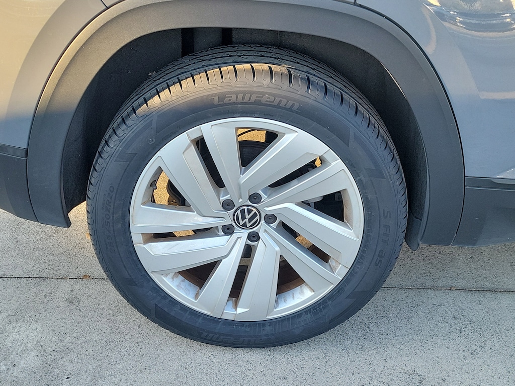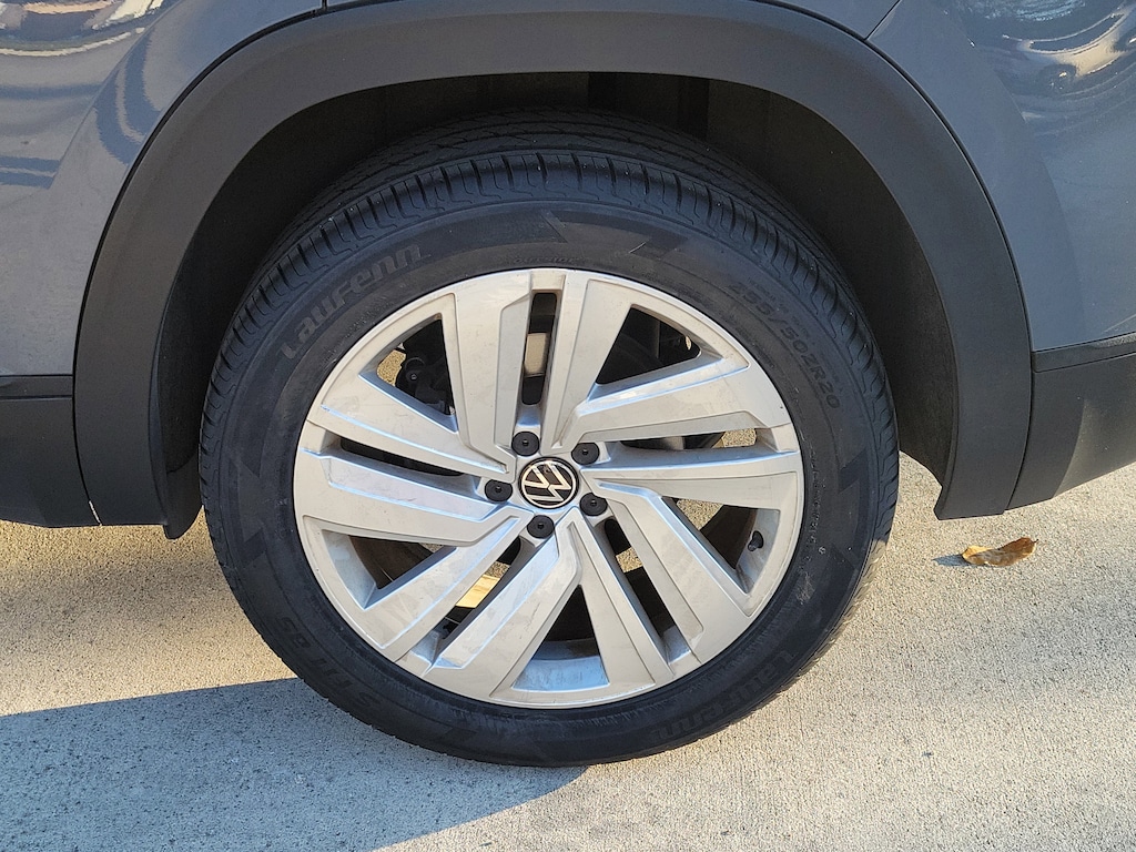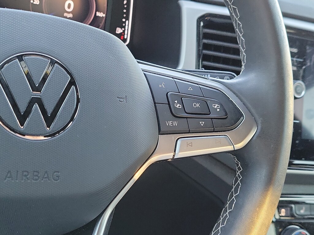 CARFAX One-Owner. Gray 2023 Volkswagen Atlas Cross Sport 3.6L V6 SE w/Technology 3.6L VR6 8-Speed Automatic with Tiptronic FWD 3.60 Axle Ratio, 4-Wheel Disc Brakes, 6 Speakers, ABS brakes, Air Conditioning, Alloy wheels, AM/FM radio: SiriusXM with 360L, Auto-dimming Rear-View mirror, Automatic temperature control, Brake assist, Bumpers: body-color, Compass, Delay-off headlights, Driver door bin, Driver vanity mirror, Dual front impact airbags, Dual front side impact airbags, Electronic Stability Control, Emergency communication system: VW Car-Net Safe & Secure 5-year, Exterior Parking Camera Rear, First Aid Kit, Four wheel independent suspension, Frameless Auto-Dimming Rearview Mirror, Front anti-roll bar, Front Bucket Seats, Front Center Armrest, Front dual zone A/C, Front fog lights, Front reading lights, Fully automatic headlights, Heated Comfort Front Bucket Seats, Heated door mirrors, Heated front seats, Heavy Duty Trunk Liner w/VW CarGo Blocks, Illuminated entry, Leather Shift Knob, Low tire pressure warning, Occupant sensing airbag, Outside temperature display, Overhead airbag, Overhead console, Panic alarm, Passenger door bin, Passenger vanity mirror, Perforated V-Tex Leatherette Seating Surfaces, Power door mirrors, Power driver seat, Power Liftgate, Power steering, Power windows, Privacy Cover, Radio data system, Radio: MIB3 Composition Media w/8" Touchscreen, Rain sensing wipers, Rear anti-roll bar, Rear reading lights, Rear seat center armrest, Rear window defroster, Rear window wiper, Remote keyless entry, Roadside Assistance Kit, Roof Rack Base Carrier Bars (Set of 2), Rubber Mats Kit, Security system, Speed control, Speed-sensing steering, Split folding rear seat, Spoiler, Standard Suspension, Steering wheel mounted audio controls, Tachometer, Telescoping steering wheel, Tilt steering wheel, Traction control, Trip computer, Turn signal indicator mirrors, Variably intermittent wipers, and Wheels: 20" x 8J 5-Spoke Silver Painted Alloy.