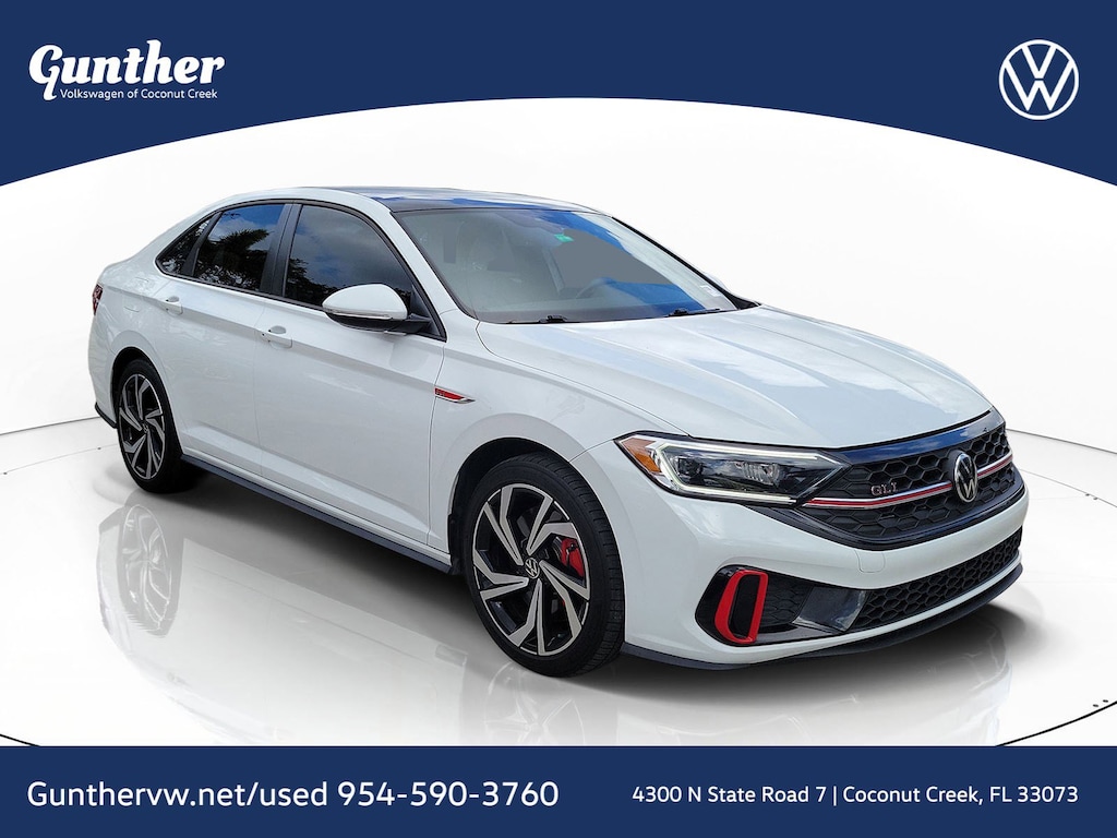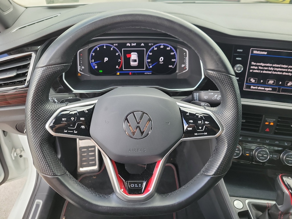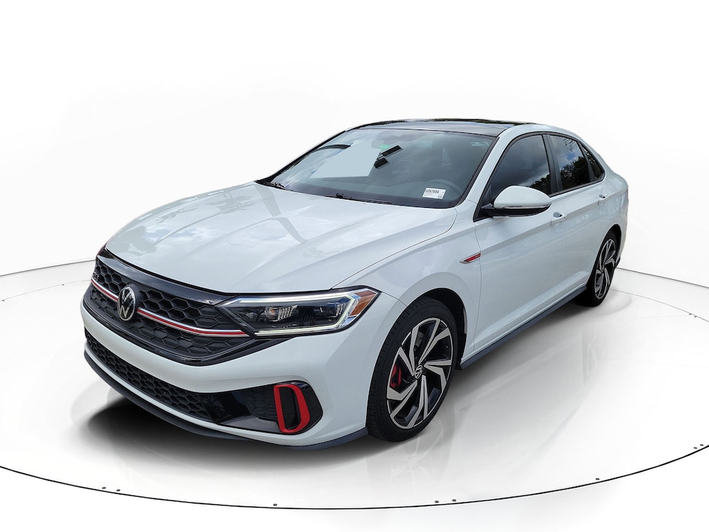 CARFAX One-Owner. Pure White 2023 Volkswagen Jetta GLI 2.0T Autobahn 2.0L TSI DOHC 7-Speed DSG Automatic with Tiptronic FWD 4-Wheel Disc Brakes, 9 Speakers, ABS brakes, Active Blind Spot Monitor, Adaptive suspension, Air Conditioning, Alloy wheels, AM/FM radio: SiriusXM with 360L, Auto High-beam Headlights, Auto-dimming Rear-View mirror, Auto-Dimming Rearview Mirror w/Electronic Compass, Automatic temperature control, Brake assist, Bumpers: body-color, Credit - Ventilated Front Seats Removed, Delay-off headlights, Driver door bin, Driver vanity mirror, Dual front impact airbags, Dual front side impact airbags, Electronic Stability Control, Emergency communication system: VW Car-Net Safe & Secure 5-year, Exterior Parking Camera Rear, First Aid Kit, Four wheel independent suspension, Front anti-roll bar, Front Bucket Seats, Front Center Armrest, Front dual zone A/C, Front reading lights, Fully automatic headlights, Heated door mirrors, Heated front seats, Htd & Actively Ventilated Fr Comfort Sport Seats, Illuminated entry, Leather Shift Knob, Leather steering wheel, Low tire pressure warning, Memory seat, Occupant sensing airbag, Outside temperature display, Overhead airbag, Overhead console, Panic alarm, Passenger door bin, Passenger vanity mirror, Perforated Vienna Leather Seating Surfaces, Power door mirrors, Power driver seat, Power moonroof: Panoramic, Power steering, Power windows, Radio data system, Radio: MIB3 Composition Media w/8" Touchscreen, Rain sensing wipers, Rear anti-roll bar, Rear reading lights, Rear seat center armrest, Rear window defroster, Remote keyless entry, Roadside Assistance Kit, Security system, Speed control, Speed-sensing steering, Split folding rear seat, Sport steering wheel, Steering wheel mounted audio controls, Tachometer, Telescoping steering wheel, Tilt steering wheel, Traction control, Trip computer, Turn signal indicator mirrors, Variably intermittent wipers, Ventilated front seats, and Wheels: 18" Two-Tone Machined Alloy.