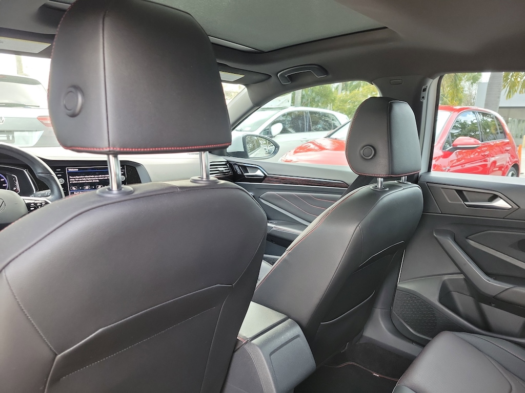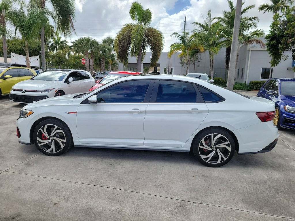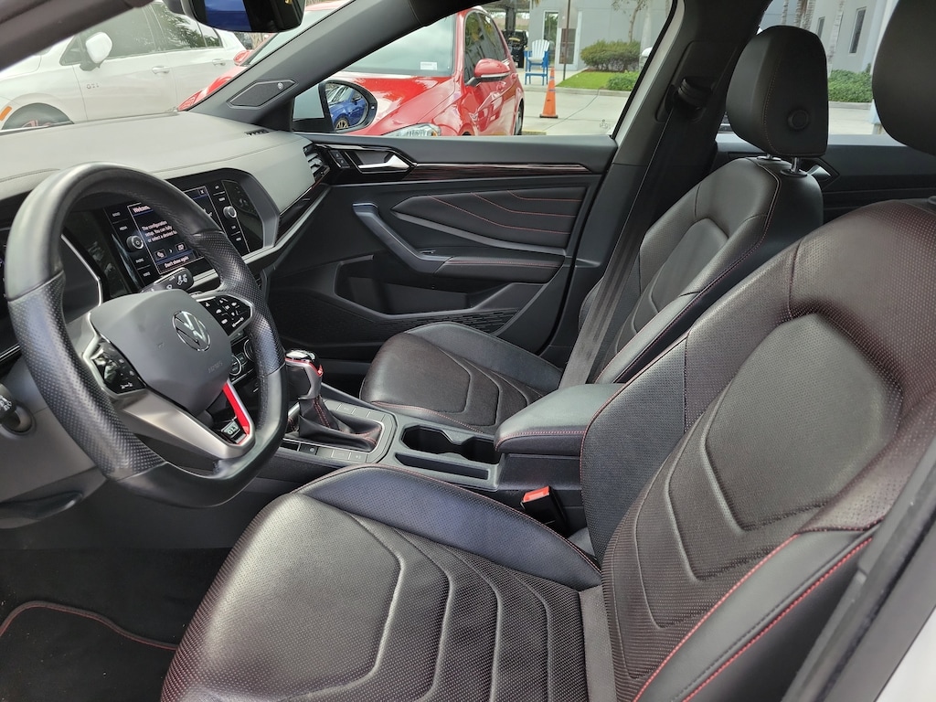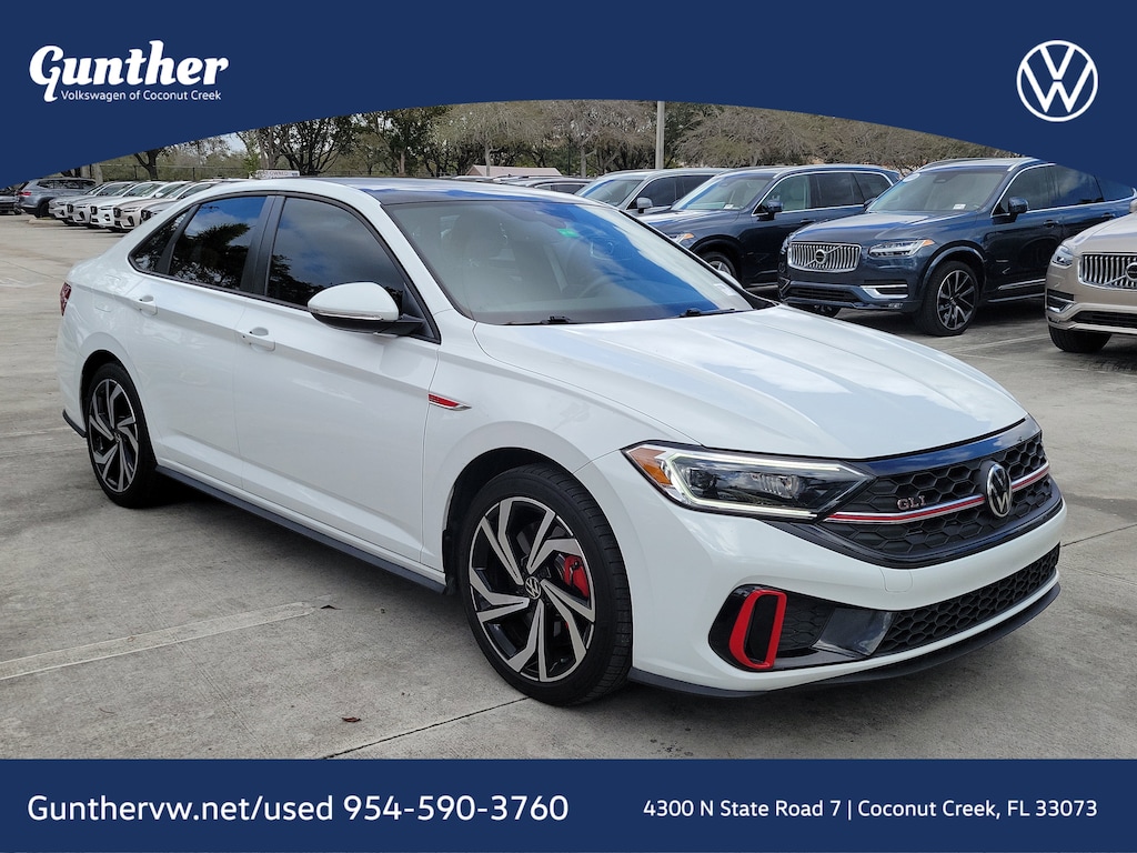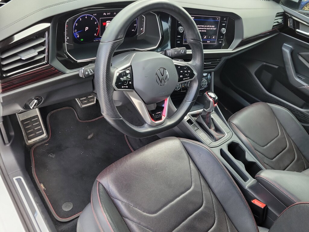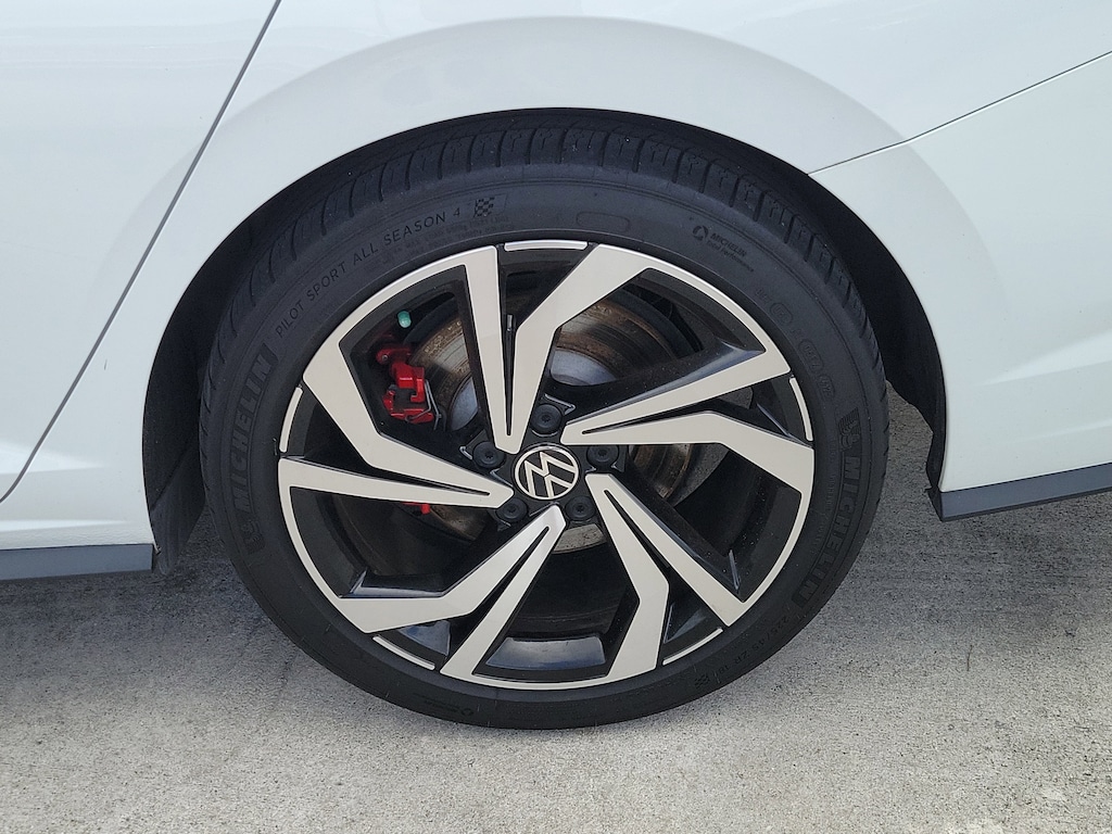 Recent Arrival! CARFAX One-Owner. Pure White 2023 Volkswagen Jetta GLI 2.0T Autobahn 2.0L TSI DOHC 7-Speed DSG Automatic with Tiptronic FWD 4-Wheel Disc Brakes, 9 Speakers, ABS brakes, Active Blind Spot Monitor, Adaptive suspension, Air Conditioning, Alloy wheels, AM/FM radio: SiriusXM with 360L, Auto High-beam Headlights, Auto-dimming Rear-View mirror, Auto-Dimming Rearview Mirror w/Electronic Compass, Automatic temperature control, Brake assist, Bumpers: body-color, Credit - Ventilated Front Seats Removed, Delay-off headlights, Driver door bin, Driver vanity mirror, Dual front impact airbags, Dual front side impact airbags, Electronic Stability Control, Emergency communication system: VW Car-Net Safe & Secure 5-year, Exterior Parking Camera Rear, First Aid Kit, Four wheel independent suspension, Front anti-roll bar, Front Bucket Seats, Front Center Armrest, Front dual zone A/C, Front reading lights, Fully automatic headlights, Heated door mirrors, Heated front seats, Htd & Actively Ventilated Fr Comfort Sport Seats, Illuminated entry, Leather Shift Knob, Leather steering wheel, Low tire pressure warning, Memory seat, Occupant sensing airbag, Outside temperature display, Overhead airbag, Overhead console, Panic alarm, Passenger door bin, Passenger vanity mirror, Perforated Vienna Leather Seating Surfaces, Power door mirrors, Power driver seat, Power moonroof: Panoramic, Power steering, Power windows, Radio data system, Radio: MIB3 Composition Media w/8" Touchscreen, Rain sensing wipers, Rear anti-roll bar, Rear reading lights, Rear seat center armrest, Rear window defroster, Remote keyless entry, Roadside Assistance Kit, Security system, Speed control, Speed-sensing steering, Split folding rear seat, Sport steering wheel, Steering wheel mounted audio controls, Tachometer, Telescoping steering wheel, Tilt steering wheel, Traction control, Trip computer, Turn signal indicator mirrors, Variably intermittent wipers, Ventilated front seats, and Wheels: 18" Two-Tone Machined Alloy.
