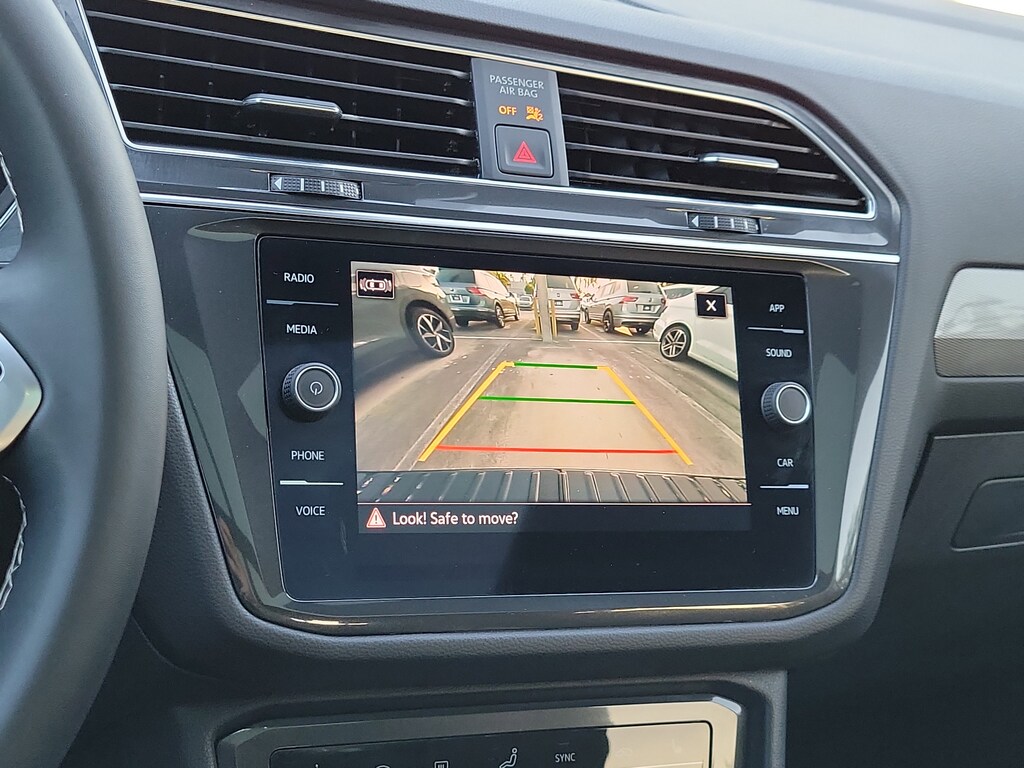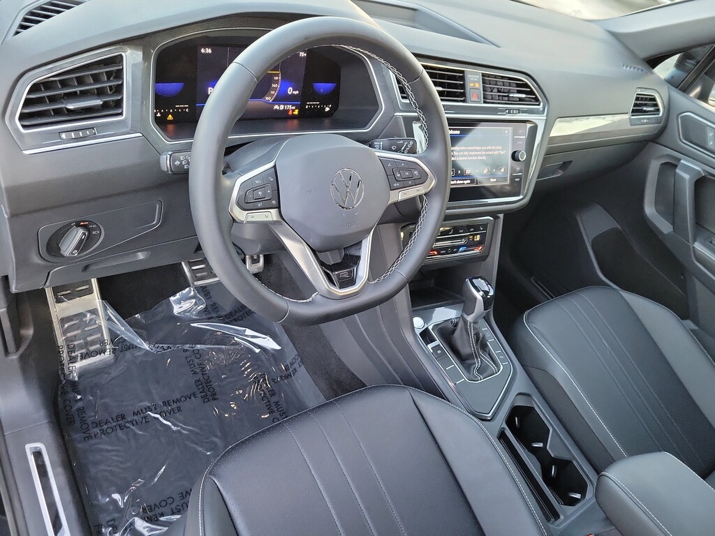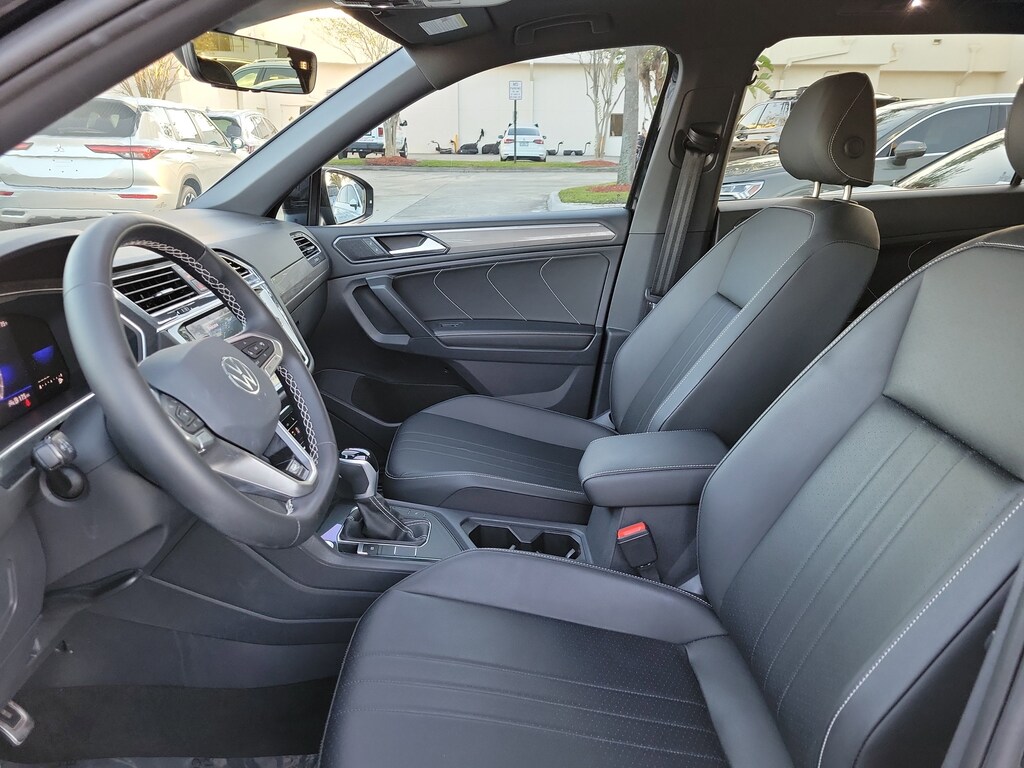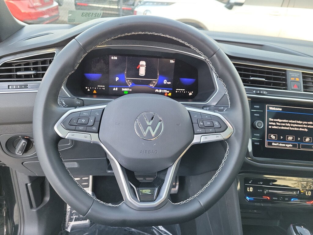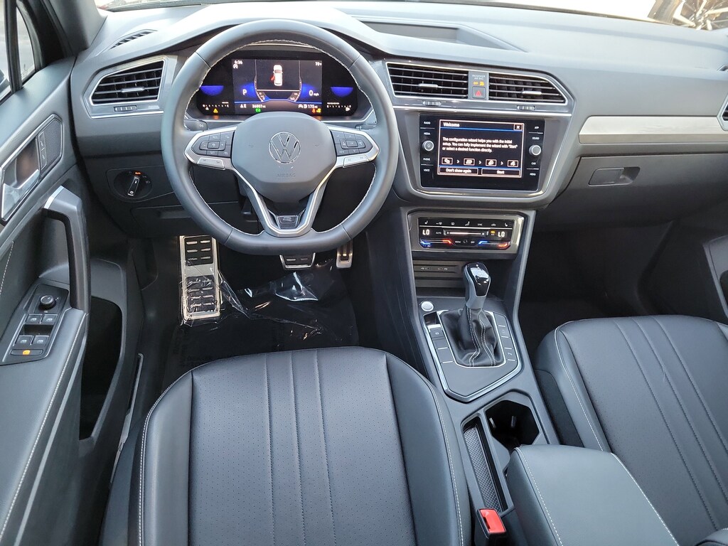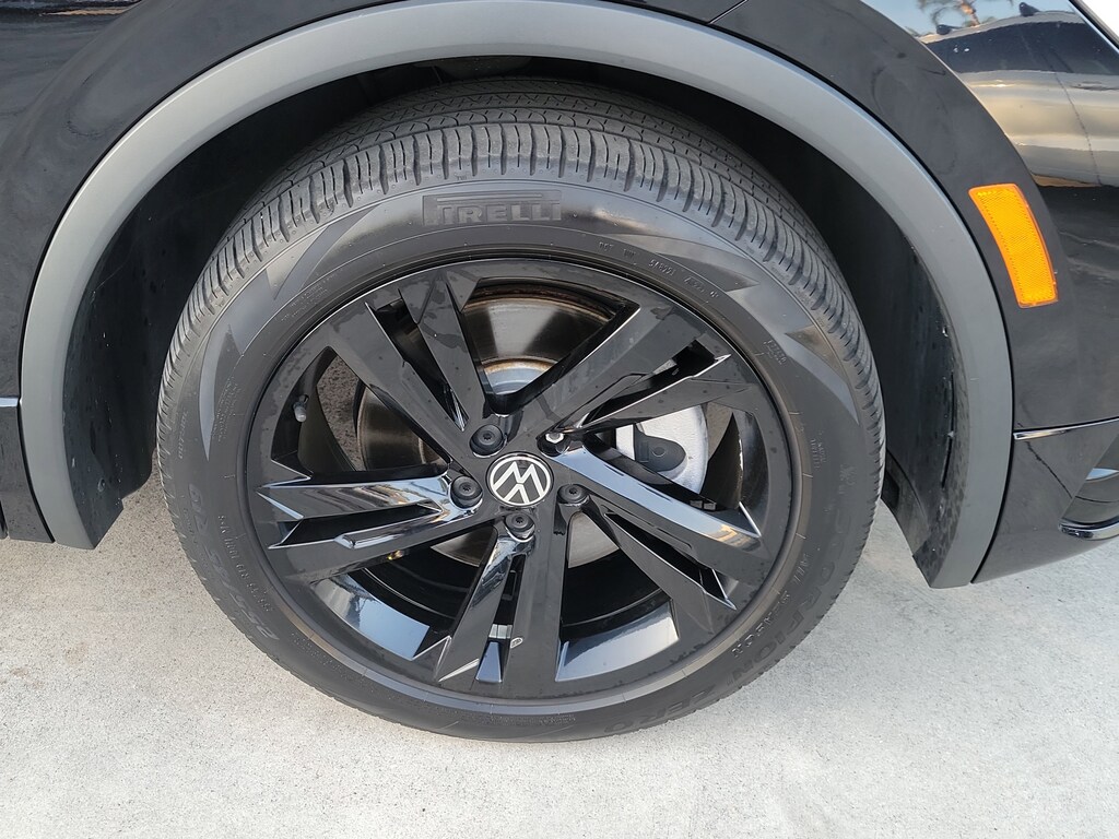 CARFAX One-Owner. Deep Black 2023 Volkswagen Tiguan 2.0T SE R-Line Black 2.0L TSI DOHC 8-Speed Automatic with Tiptronic FWD 3-Row Rubber Monster Mats w/Logo Kit (Set of 5), 3.33 Axle Ratio, 3rd row seats: bench, 4-Wheel Disc Brakes, 4-Wheel Independent Suspension, 6 Speakers, ABS brakes, Air Conditioning, Alloy wheels, AM/FM radio: SiriusXM with 360L, Auto-dimming Rear-View mirror, Auto-Dimming Rearview Mirror w/HomeLink Connect, Automatic temperature control, Brake assist, Bumpers: body-color, Cargo Area Retractable Privacy Cover, Compass, Credit - Power Rear Liftgate Removed, Credit - Steering Wheel Substitution, Delay-off headlights, Driver door bin, Driver vanity mirror, Dual front impact airbags, Dual front side impact airbags, Electronic Stability Control, Emergency communication system: VW Car-Net Safe & Secure 5-year, Exterior Parking Camera Rear, First Aid Kit, Four wheel independent suspension, Front anti-roll bar, Front Bucket Seats, Front Center Armrest, Front dual zone A/C, Front reading lights, Fully automatic headlights, Heated door mirrors, Heated Front Comfort Seats, Heated front seats, Heavy Duty Trunk Liner w/VW CarGo Blocks, Illuminated entry, Leather Shift Knob, Leather steering wheel, Low tire pressure warning, Occupant sensing airbag, Outside temperature display, Overhead airbag, Overhead console, Panic alarm, Passenger door bin, Passenger vanity mirror, Perforated V-Tex Leatherette Seating Surfaces, Power door mirrors, Power driver seat, Power Liftgate, Power moonroof, Power steering, Power windows, Radio data system, Radio: MIB3 Composition Media AM/FM/HD, Rain sensing wipers, Rear anti-roll bar, Rear reading lights, Rear seat center armrest, Rear window defroster, Rear window wiper, Remote keyless entry, Roadside Assistance Kit, Roof Rack Base Carrier Bars (Set of 2), Security system, Speed control, Speed-sensing steering, Split folding rear seat, Spoiler, Sport steering wheel, Steering wheel mounted audio controls, Tachometer, Telescoping steering wheel, Tilt steering wheel, Traction control, Trip computer, Turn signal indicator mirrors, Variably intermittent wipers, and Wheels: 19" Black Painted Twin 5-Spoke Alloy.