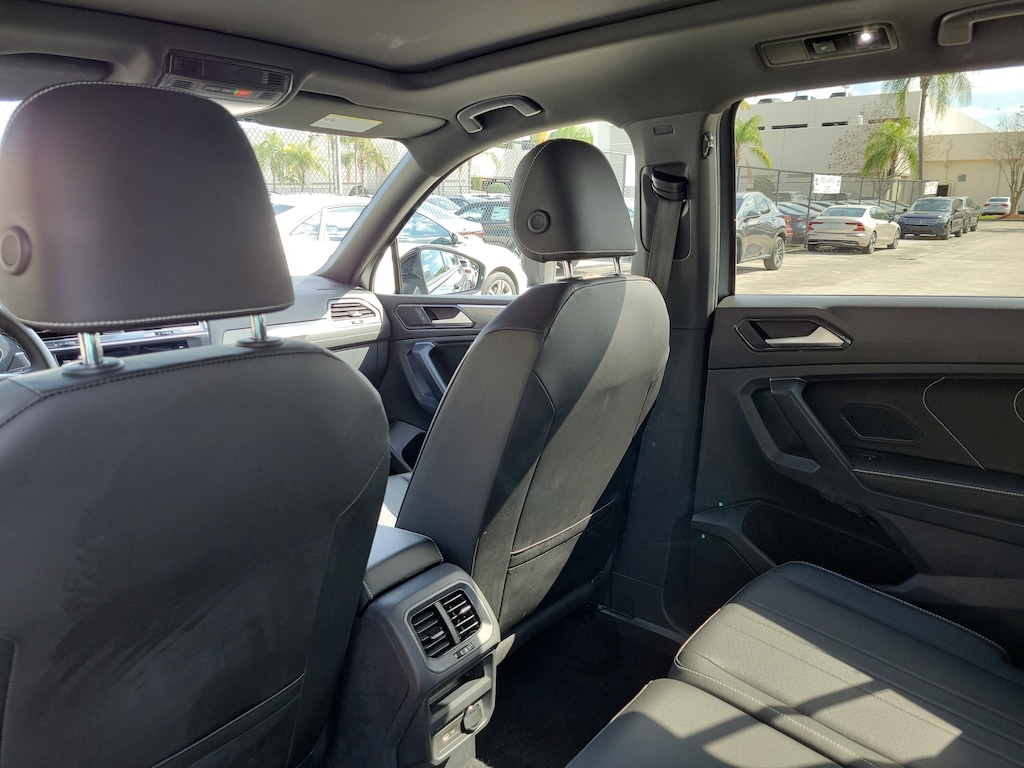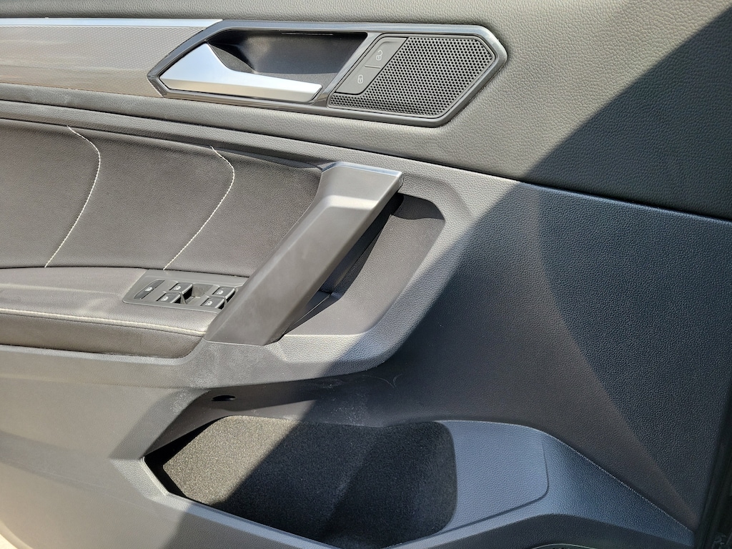 CARFAX One-Owner. Platinum Gray Metallic 2023 Volkswagen Tiguan 2.0T SE R-Line Black 2.0L TSI DOHC 8-Speed Automatic with Tiptronic FWD 3-Row Rubber Monster Mats w/Logo Kit (Set of 5), 3.33 Axle Ratio, 3rd row seats: bench, 4-Wheel Disc Brakes, 4-Wheel Independent Suspension, 6 Speakers, ABS brakes, Air Conditioning, Alloy wheels, AM/FM radio: SiriusXM with 360L, Auto-dimming Rear-View mirror, Auto-Dimming Rearview Mirror w/Compass/HomeLink (DISC), Automatic temperature control, Brake assist, Bumpers: body-color, Cargo Area Retractable Privacy Cover, Compass, Credit - Power Rear Liftgate Removed, Credit - Steering Wheel Substitution, Delay-off headlights, Driver door bin, Driver vanity mirror, Dual front impact airbags, Dual front side impact airbags, Electronic Stability Control, Emergency communication system: VW Car-Net Safe & Secure 5-year, Exterior Parking Camera Rear, First Aid Kit, Four wheel independent suspension, Front anti-roll bar, Front Bucket Seats, Front Center Armrest, Front dual zone A/C, Front reading lights, Fully automatic headlights, Heated door mirrors, Heated Front Comfort Seats, Heated front seats, Heavy Duty Trunk Liner w/VW CarGo Blocks, Illuminated entry, Leather Shift Knob, Leather steering wheel, Low tire pressure warning, Occupant sensing airbag, Outside temperature display, Overhead airbag, Overhead console, Panic alarm, Passenger door bin, Passenger vanity mirror, Perforated V-Tex Leatherette Seating Surfaces, Power door mirrors, Power driver seat, Power Liftgate, Power moonroof, Power steering, Power windows, Radio data system, Radio: MIB3 Composition Media AM/FM/HD, Rain sensing wipers, Rear anti-roll bar, Rear reading lights, Rear seat center armrest, Rear window defroster, Rear window wiper, Remote keyless entry, Roadside Assistance Kit, Security system, Speed control, Speed-sensing steering, Split folding rear seat, Spoiler, Sport steering wheel, Steering wheel mounted audio controls, Tachometer, Telescoping steering wheel, Tilt steering wheel, Traction control, Trip computer, Turn signal indicator mirrors, Variably intermittent wipers, and Wheels: 19" Black Painted Twin 5-Spoke Alloy.