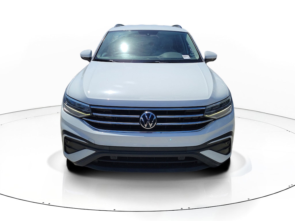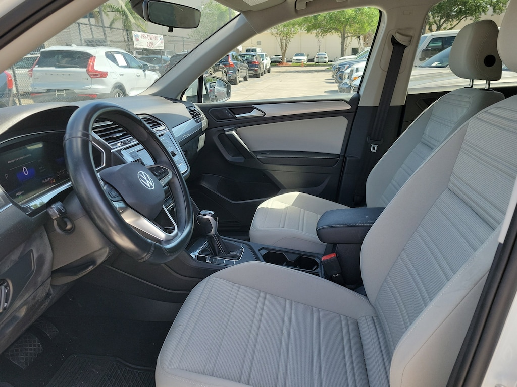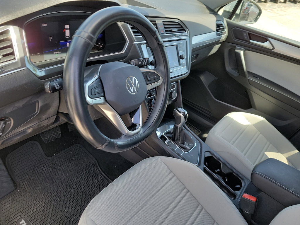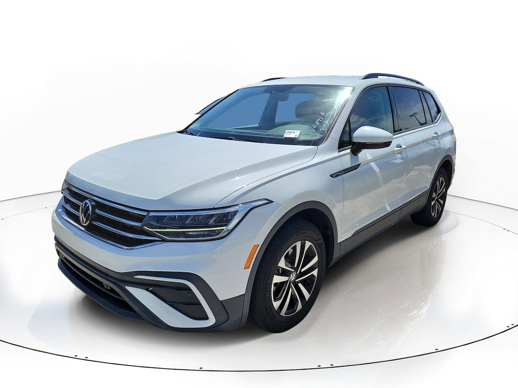 Recent Arrival! CARFAX One-Owner. Pure White 2023 Volkswagen Tiguan 2.0T S 2.0L TSI DOHC 8-Speed Automatic with Tiptronic FWD 3-Row Rubber Monster Mats w/Logo Kit (Set of 5), 3.33 Axle Ratio, 3rd row seats: bench, 4-Wheel Disc Brakes, 4-Wheel Independent Suspension, 6 Speakers, ABS brakes, Air Conditioning, Alloy wheels, AM/FM radio, Brake assist, Bumpers: body-color, Cloth Seating Surfaces, Compass, Credit - Rear Sensors Removed, Delay-off headlights, Driver door bin, Driver vanity mirror, Dual front impact airbags, Dual front side impact airbags, Electronic Stability Control, Emergency communication system: VW Car-Net Safe & Secure 5-year, Exterior Parking Camera Rear, First Aid Kit, Forward collision: FCW w/Autonomous Emergency Braking mitigation, Four wheel independent suspension, Front anti-roll bar, Front Bucket Seats, Front Center Armrest, Front reading lights, Fully automatic headlights, Heated door mirrors, Heated Front Bucket Seats, Heated front seats, Heavy Duty Trunk Liner w/VW CarGo Blocks, Illuminated entry, Leather Shift Knob, Low tire pressure warning, Occupant sensing airbag, Outside temperature display, Overhead airbag, Overhead console, Panic alarm, Passenger door bin, Passenger vanity mirror, Power door mirrors, Power steering, Power windows, Radio data system, Radio: Composition Color AM/FM, Rear anti-roll bar, Rear reading lights, Rear seat center armrest, Rear window defroster, Rear window wiper, Remote keyless entry, Roadside Assistance Kit, Speed control, Speed-sensing steering, Split folding rear seat, Spoiler, Steering wheel mounted audio controls, Tachometer, Telescoping steering wheel, Tilt steering wheel, Traction control, Trip computer, Turn signal indicator mirrors, Variably intermittent wipers, and Wheels: 17" 2-Tone Machined Twin 5-Spoke Alloy.