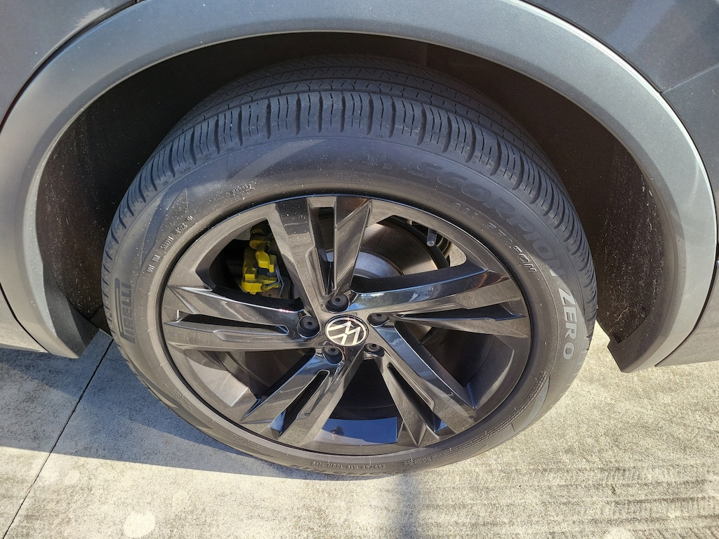 CARFAX One-Owner. Platinum Gray Metallic 2023 Volkswagen Tiguan 2.0T SE R-Line Black 2.0L TSI DOHC 8-Speed Automatic with Tiptronic FWD 3-Row Rubber Monster Mats w/Logo Kit (Set of 5), 3.33 Axle Ratio, 3rd row seats: bench, 4-Wheel Disc Brakes, 4-Wheel Independent Suspension, 6 Speakers, ABS brakes, Air Conditioning, Alloy wheels, AM/FM radio: SiriusXM with 360L, Auto-dimming Rear-View mirror, Auto-Dimming Rearview Mirror w/Compass/HomeLink (DISC), Automatic temperature control, Brake assist, Bumpers: body-color, Cargo Area Retractable Privacy Cover, Compass, Credit - Power Rear Liftgate Removed, Credit - Steering Wheel Substitution, Delay-off headlights, Driver door bin, Driver vanity mirror, Dual front impact airbags, Dual front side impact airbags, Electronic Stability Control, Emergency communication system: VW Car-Net Safe & Secure 5-year, Exterior Parking Camera Rear, First Aid Kit, Four wheel independent suspension, Front anti-roll bar, Front Bucket Seats, Front Center Armrest, Front dual zone A/C, Front reading lights, Fully automatic headlights, Heated door mirrors, Heated Front Comfort Seats, Heated front seats, Heavy Duty Trunk Liner w/VW CarGo Blocks, Illuminated entry, Leather Shift Knob, Leather steering wheel, Low tire pressure warning, Occupant sensing airbag, Outside temperature display, Overhead airbag, Overhead console, Panic alarm, Passenger door bin, Passenger vanity mirror, Perforated V-Tex Leatherette Seating Surfaces, Power door mirrors, Power driver seat, Power Liftgate, Power moonroof, Power steering, Power windows, Radio data system, Radio: MIB3 Composition Media AM/FM/HD, Rain sensing wipers, Rear anti-roll bar, Rear reading lights, Rear seat center armrest, Rear window defroster, Rear window wiper, Remote keyless entry, Roadside Assistance Kit, Security system, Speed control, Speed-sensing steering, Split folding rear seat, Spoiler, Sport steering wheel, Steering wheel mounted audio controls, Tachometer, Telescoping steering wheel, Tilt steering wheel, Traction control, Trip computer, Turn signal indicator mirrors, Variably intermittent wipers, and Wheels: 19" Black Painted Twin 5-Spoke Alloy.
