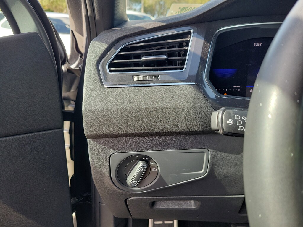 CARFAX One-Owner. Platinum Gray Metallic 2023 Volkswagen Tiguan 2.0T SE R-Line Black 2.0L TSI DOHC 8-Speed Automatic with Tiptronic FWD 3-Row Rubber Monster Mats w/Logo Kit (Set of 5), 3.33 Axle Ratio, 3rd row seats: bench, 4-Wheel Disc Brakes, 4-Wheel Independent Suspension, 6 Speakers, ABS brakes, Air Conditioning, Alloy wheels, AM/FM radio: SiriusXM with 360L, Auto-dimming Rear-View mirror, Auto-Dimming Rearview Mirror w/Compass/HomeLink (DISC), Automatic temperature control, Brake assist, Bumpers: body-color, Cargo Area Retractable Privacy Cover, Compass, Credit - Power Rear Liftgate Removed, Credit - Steering Wheel Substitution, Delay-off headlights, Driver door bin, Driver vanity mirror, Dual front impact airbags, Dual front side impact airbags, Electronic Stability Control, Emergency communication system: VW Car-Net Safe & Secure 5-year, Exterior Parking Camera Rear, First Aid Kit, Four wheel independent suspension, Front anti-roll bar, Front Bucket Seats, Front Center Armrest, Front dual zone A/C, Front reading lights, Fully automatic headlights, Heated door mirrors, Heated Front Comfort Seats, Heated front seats, Heavy Duty Trunk Liner w/VW CarGo Blocks, Illuminated entry, Leather Shift Knob, Leather steering wheel, Low tire pressure warning, Occupant sensing airbag, Outside temperature display, Overhead airbag, Overhead console, Panic alarm, Passenger door bin, Passenger vanity mirror, Perforated V-Tex Leatherette Seating Surfaces, Power door mirrors, Power driver seat, Power Liftgate, Power moonroof, Power steering, Power windows, Radio data system, Radio: MIB3 Composition Media AM/FM/HD, Rain sensing wipers, Rear anti-roll bar, Rear reading lights, Rear seat center armrest, Rear window defroster, Rear window wiper, Remote keyless entry, Roadside Assistance Kit, Roof Rack Base Carrier Bars (Set of 2), Security system, Speed control, Speed-sensing steering, Split folding rear seat, Spoiler, Sport steering wheel, Steering wheel mounted audio controls, Tachometer, Telescoping steering wheel, Tilt steering wheel, Traction control, Trip computer, Turn signal indicator mirrors, Variably intermittent wipers, and Wheels: 19" Black Painted Twin 5-Spoke Alloy.