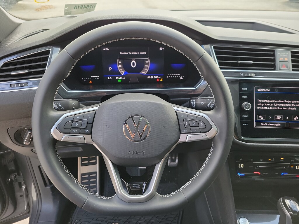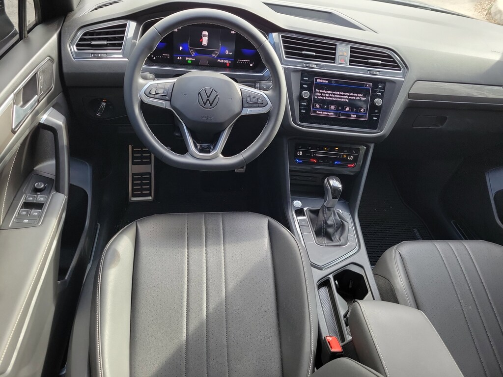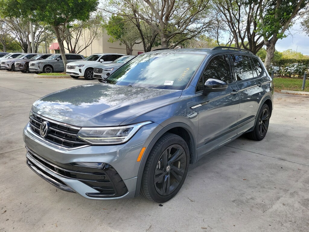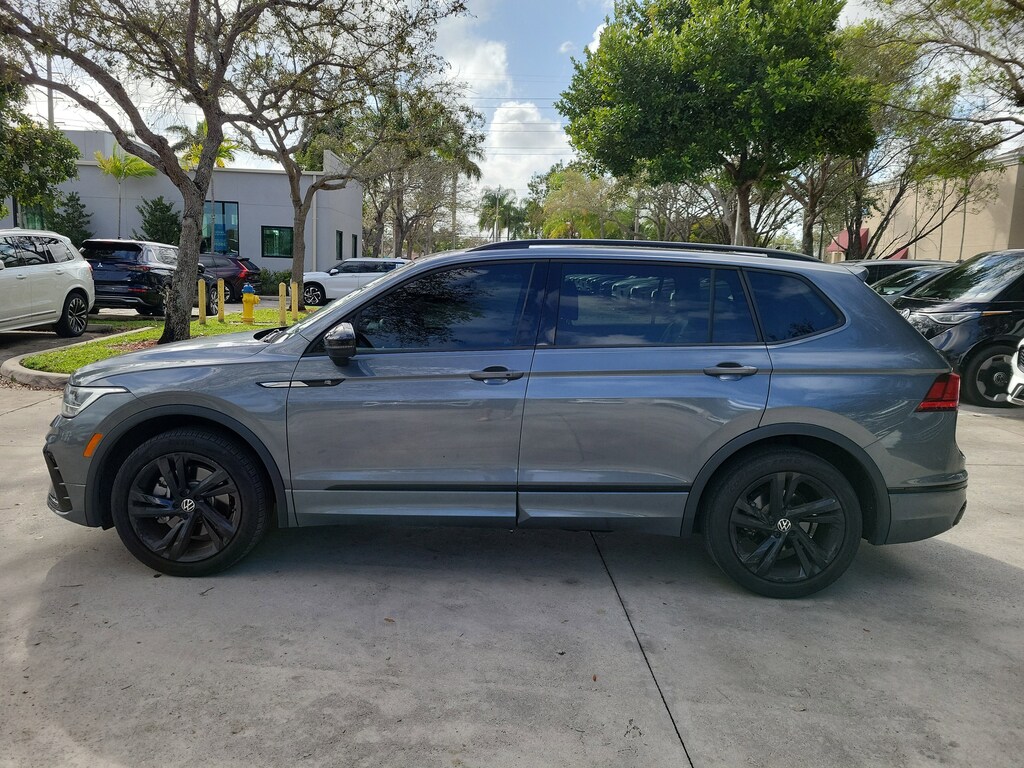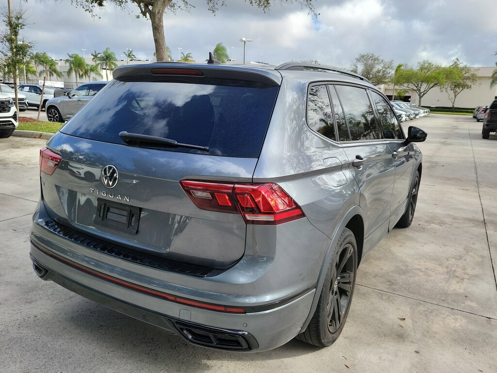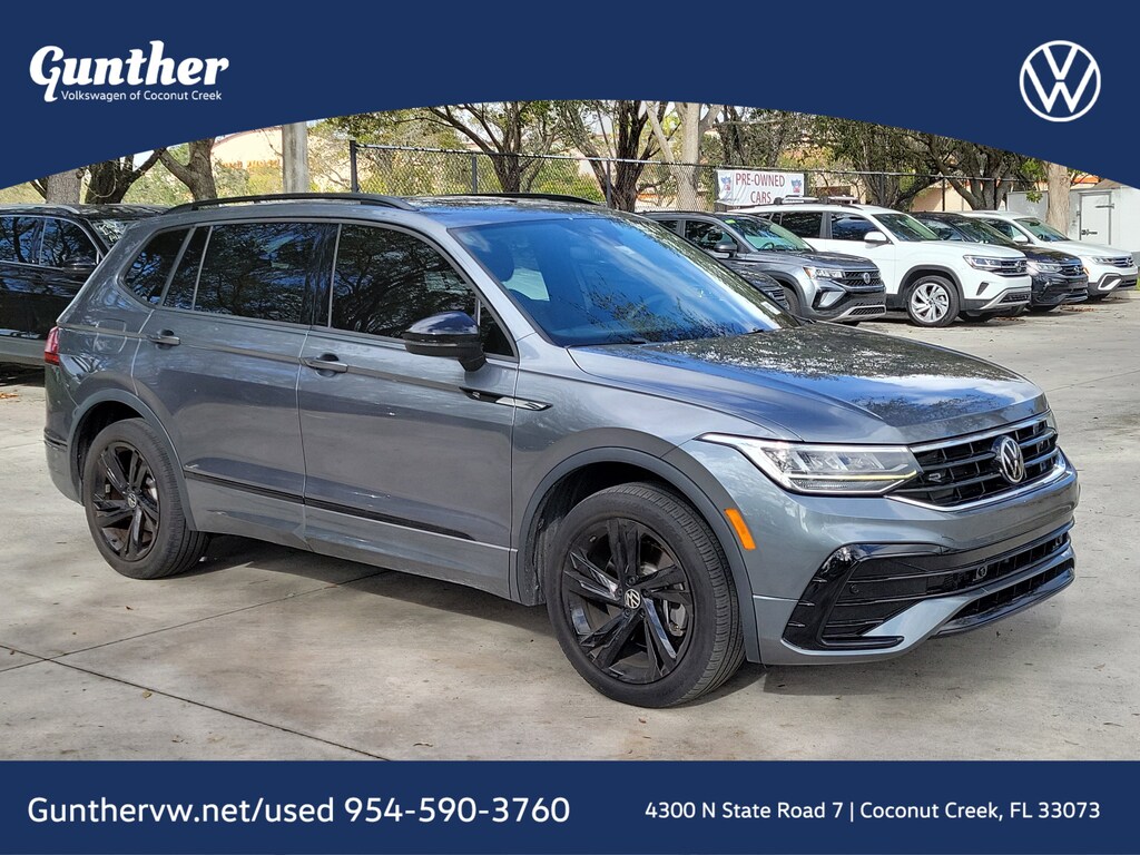 Recent Arrival! CARFAX One-Owner. Platinum Gray Metallic 2023 Volkswagen Tiguan 2.0T SE R-Line Black 2.0L TSI DOHC 8-Speed Automatic with Tiptronic FWD 3-Row Rubber Monster Mats w/Logo Kit (Set of 5), 3.33 Axle Ratio, 3rd row seats: bench, 4-Wheel Disc Brakes, 4-Wheel Independent Suspension, 6 Speakers, ABS brakes, Air Conditioning, Alloy wheels, AM/FM radio: SiriusXM with 360L, Auto-dimming Rear-View mirror, Auto-Dimming Rearview Mirror w/Compass/HomeLink (DISC), Automatic temperature control, Brake assist, Bumpers: body-color, Cargo Area Retractable Privacy Cover, Compass, Credit - Power Rear Liftgate Removed, Credit - Steering Wheel Substitution, Delay-off headlights, Driver door bin, Driver vanity mirror, Dual front impact airbags, Dual front side impact airbags, Electronic Stability Control, Emergency communication system: VW Car-Net Safe & Secure 5-year, Exterior Parking Camera Rear, First Aid Kit, Four wheel independent suspension, Front anti-roll bar, Front Bucket Seats, Front Center Armrest, Front dual zone A/C, Front reading lights, Fully automatic headlights, Heated door mirrors, Heated Front Comfort Seats, Heated front seats, Heavy Duty Trunk Liner w/VW CarGo Blocks, Illuminated entry, Leather Shift Knob, Leather steering wheel, Low tire pressure warning, Occupant sensing airbag, Outside temperature display, Overhead airbag, Overhead console, Panic alarm, Passenger door bin, Passenger vanity mirror, Perforated V-Tex Leatherette Seating Surfaces, Power door mirrors, Power driver seat, Power Liftgate, Power moonroof, Power steering, Power windows, Radio data system, Radio: MIB3 Composition Media AM/FM/HD, Rain sensing wipers, Rear anti-roll bar, Rear reading lights, Rear seat center armrest, Rear window defroster, Rear window wiper, Remote keyless entry, Roadside Assistance Kit, Security system, Speed control, Speed-sensing steering, Split folding rear seat, Spoiler, Sport steering wheel, Steering wheel mounted audio controls, Tachometer, Telescoping steering wheel, Tilt steering wheel, Traction control, Trip computer, Turn signal indicator mirrors, Variably intermittent wipers, and Wheels: 19" Black Painted Twin 5-Spoke Alloy.