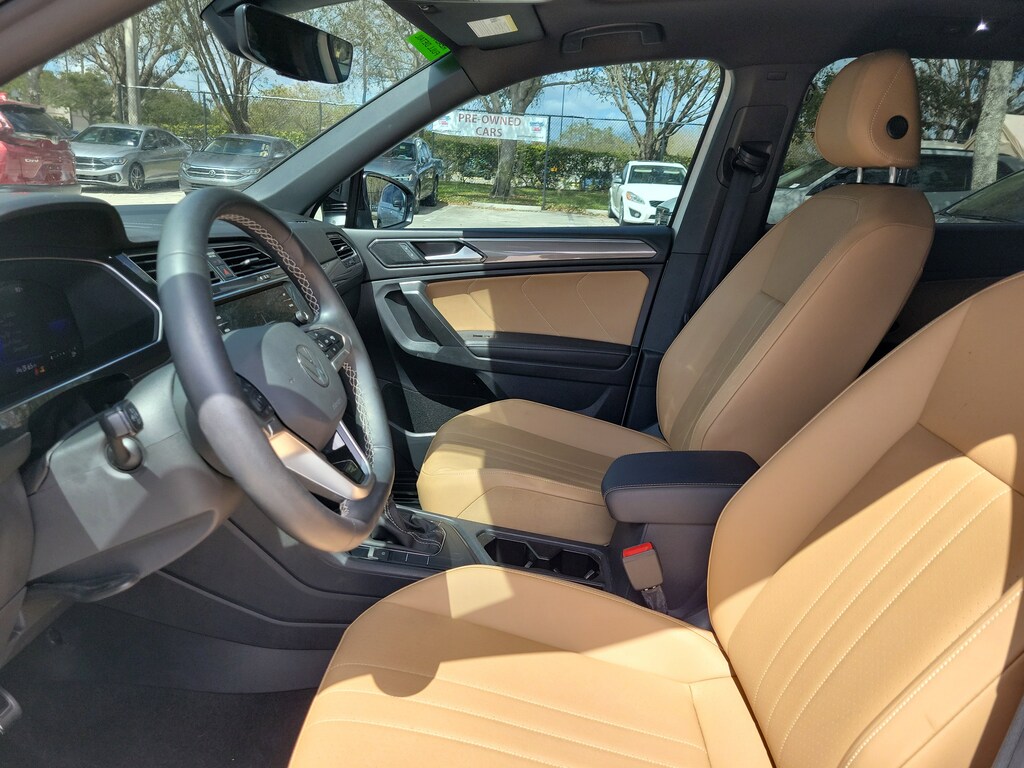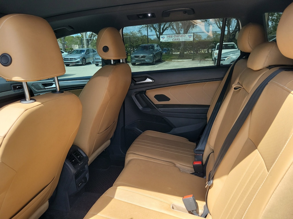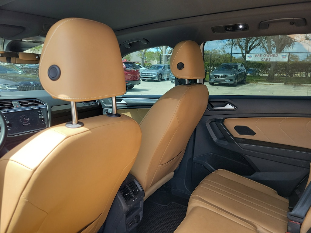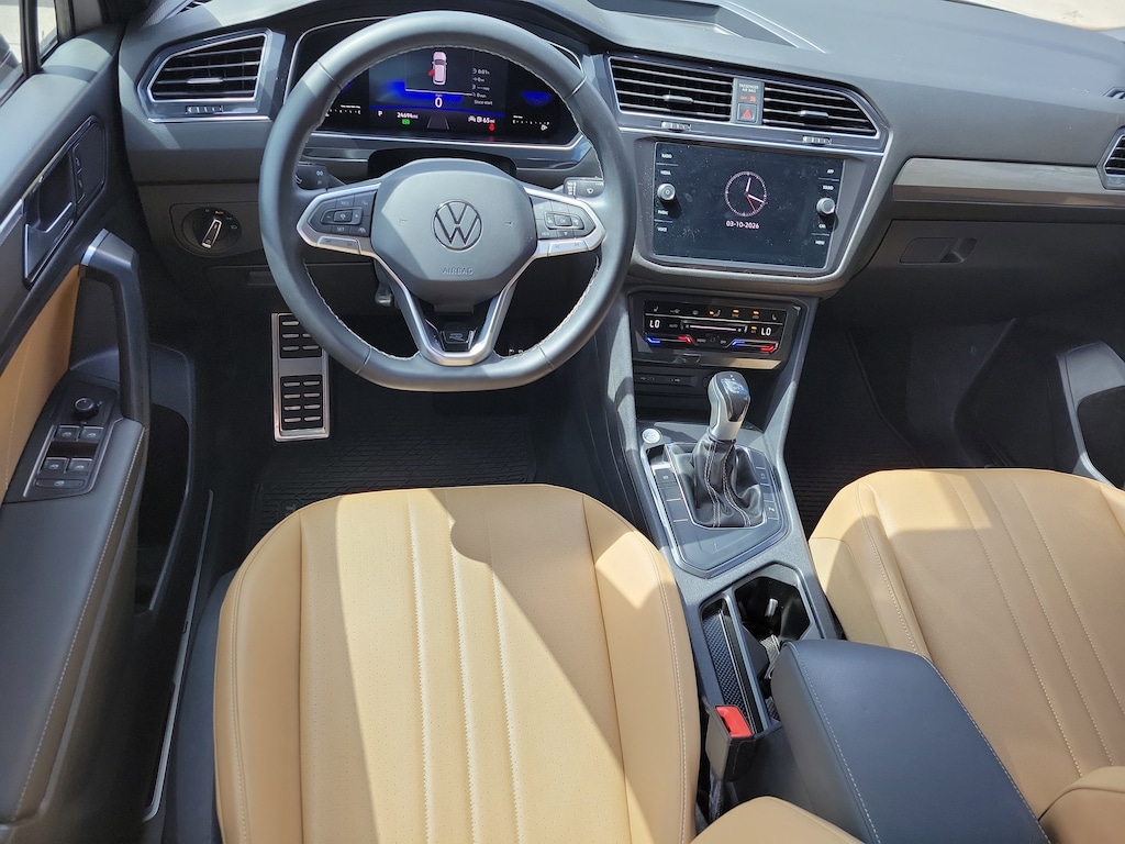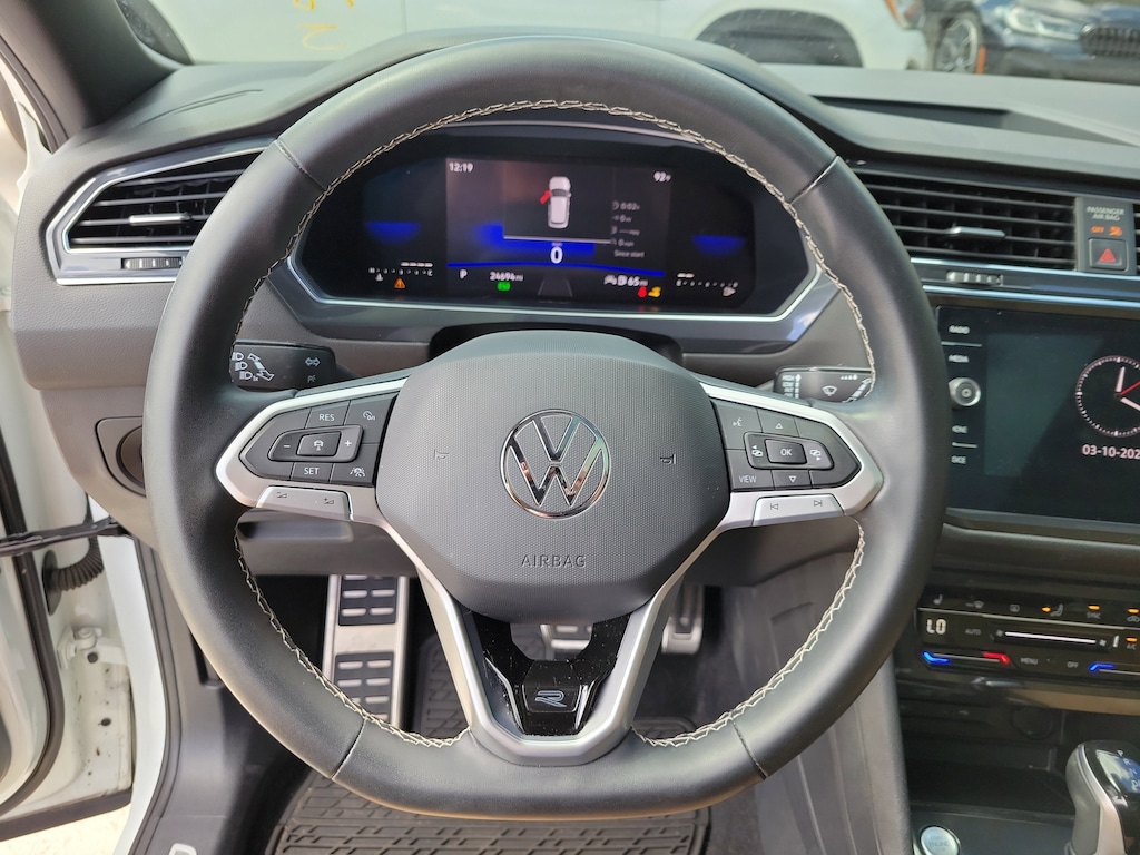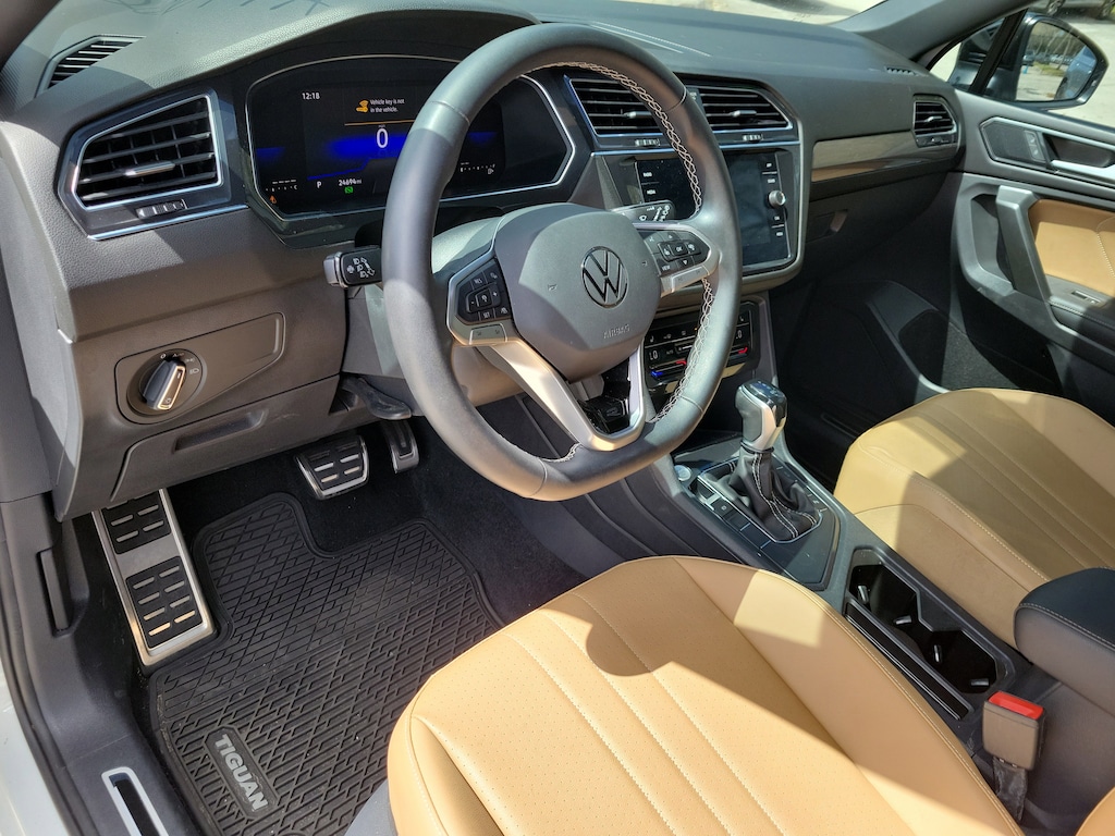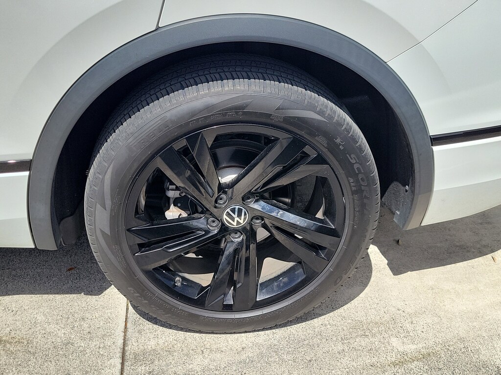 Recent Arrival! CARFAX One-Owner. Opal White 2023 Volkswagen Tiguan 2.0T SE R-Line Black 2.0L TSI DOHC 8-Speed Automatic with Tiptronic FWD 3-Row Rubber Monster Mats w/Logo Kit (Set of 5), 3.33 Axle Ratio, 3rd row seats: bench, 4-Wheel Disc Brakes, 4-Wheel Independent Suspension, 6 Speakers, ABS brakes, Air Conditioning, Alloy wheels, AM/FM radio: SiriusXM with 360L, Auto-dimming Rear-View mirror, Auto-Dimming Rearview Mirror w/Compass/HomeLink (DISC), Automatic temperature control, Brake assist, Bumpers: body-color, Cargo Area Retractable Privacy Cover, Compass, Credit - Power Rear Liftgate Removed, Credit - Steering Wheel Substitution, Delay-off headlights, Driver door bin, Driver vanity mirror, Dual front impact airbags, Dual front side impact airbags, Electronic Stability Control, Emergency communication system: VW Car-Net Safe & Secure 5-year, Exterior Parking Camera Rear, First Aid Kit, Four wheel independent suspension, Front anti-roll bar, Front Bucket Seats, Front Center Armrest, Front dual zone A/C, Front reading lights, Fully automatic headlights, Heated door mirrors, Heated Front Comfort Seats, Heated front seats, Heavy Duty Trunk Liner w/VW CarGo Blocks, Illuminated entry, Leather Shift Knob, Leather steering wheel, Low tire pressure warning, Occupant sensing airbag, Outside temperature display, Overhead airbag, Overhead console, Panic alarm, Passenger door bin, Passenger vanity mirror, Perforated V-Tex Leatherette Seating Surfaces, Power door mirrors, Power driver seat, Power Liftgate, Power moonroof, Power steering, Power windows, Radio data system, Radio: MIB3 Composition Media AM/FM/HD, Rain sensing wipers, Rear anti-roll bar, Rear reading lights, Rear seat center armrest, Rear window defroster, Rear window wiper, Remote keyless entry, Roadside Assistance Kit, Roof Rack Base Carrier Bars (Set of 2), Security system, Speed control, Speed-sensing steering, Split folding rear seat, Spoiler, Sport steering wheel, Steering wheel mounted audio controls, Tachometer, Telescoping steering wheel, Tilt steering wheel, Traction control, Trip computer, Turn signal indicator mirrors, Variably intermittent wipers, and Wheels: 19" Black Painted Twin 5-Spoke Alloy.