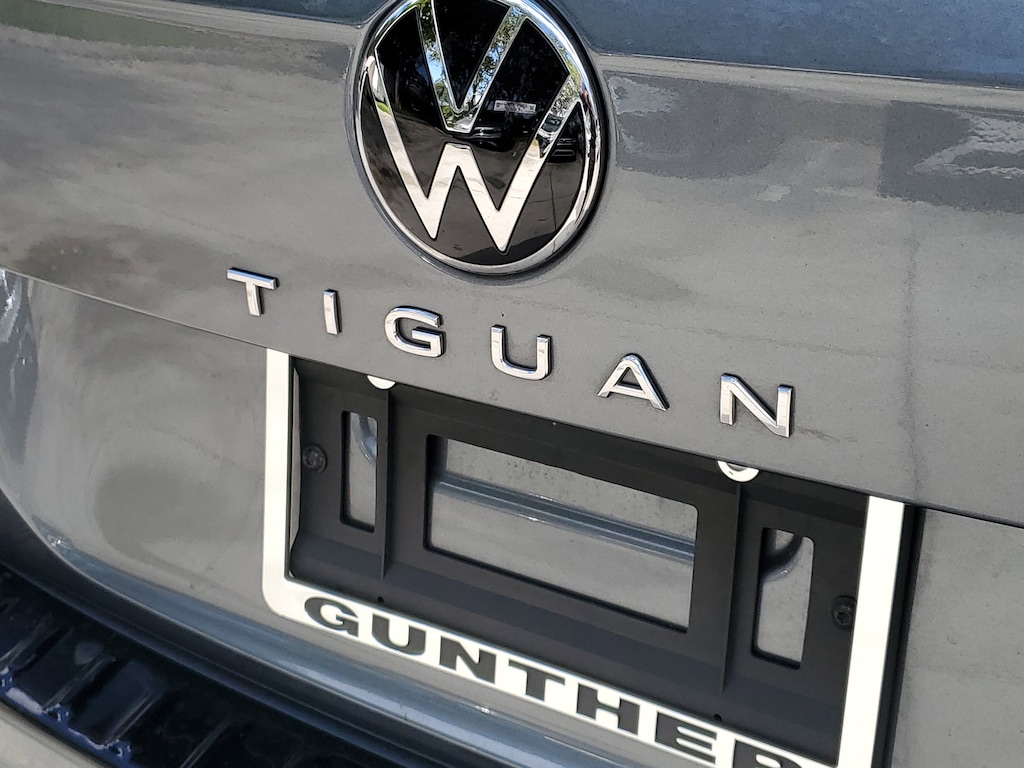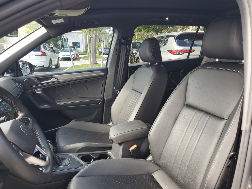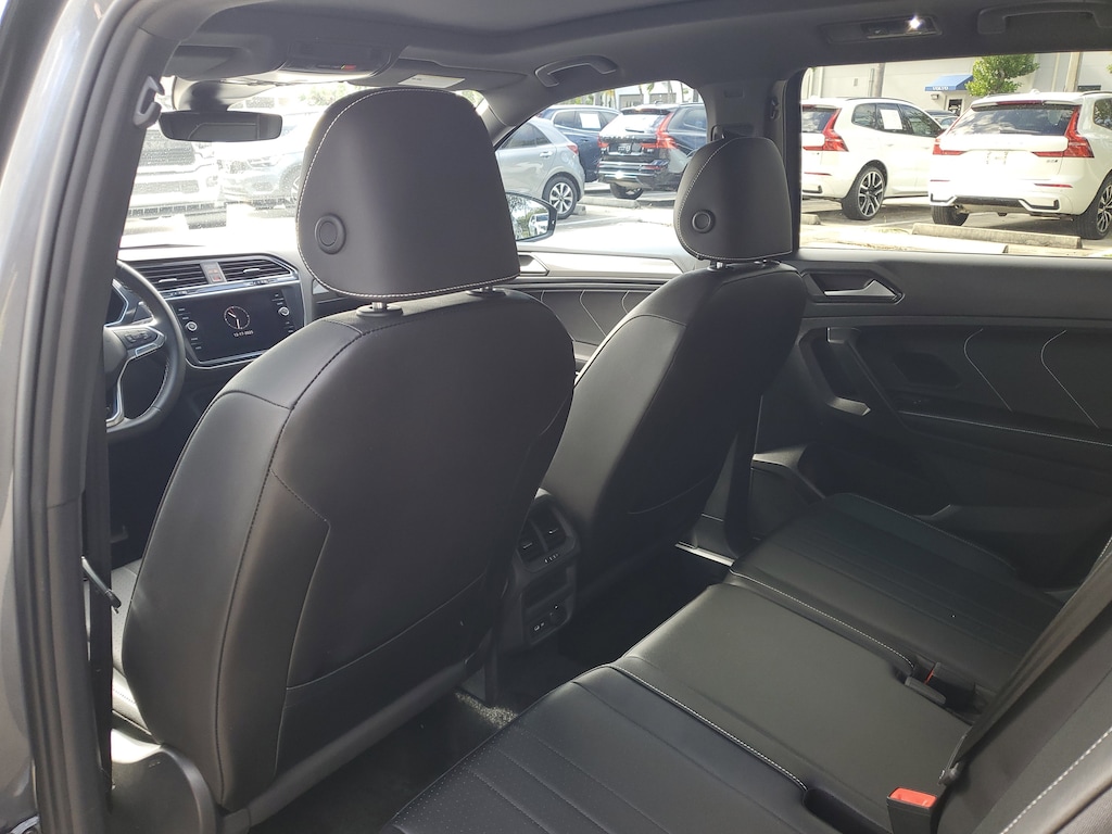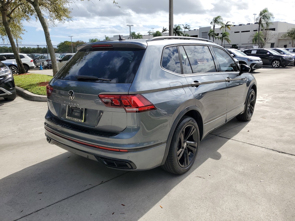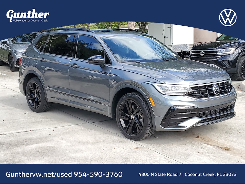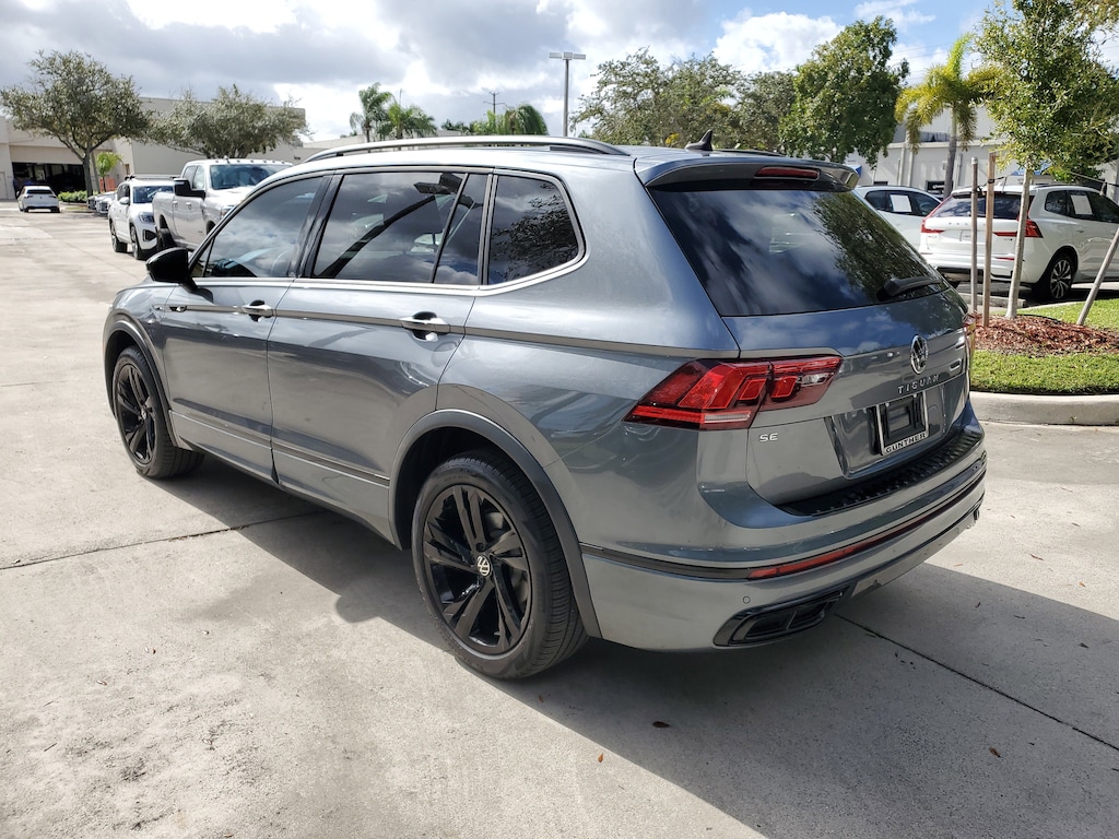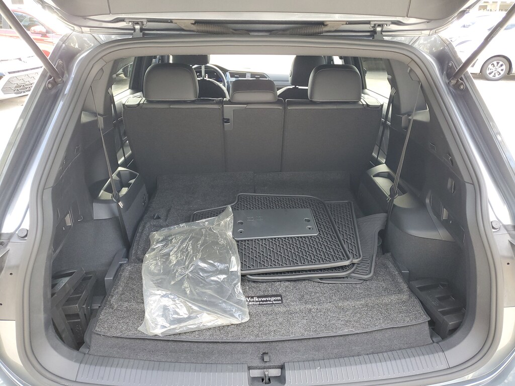 CARFAX One-Owner. Platinum Gray Metallic 2023 Volkswagen Tiguan 2.0T SE R-Line Black 2.0L TSI DOHC 8-Speed Automatic with Tiptronic FWD 3-Row Rubber Monster Mats w/Logo Kit (Set of 5), 3.33 Axle Ratio, 3rd row seats: bench, 4-Wheel Disc Brakes, 4-Wheel Independent Suspension, 6 Speakers, ABS brakes, Air Conditioning, Alloy wheels, AM/FM radio: SiriusXM with 360L, Auto-dimming Rear-View mirror, Auto-Dimming Rearview Mirror w/Compass/HomeLink (DISC), Automatic temperature control, Brake assist, Bumpers: body-color, Cargo Area Retractable Privacy Cover, Compass, Credit - Power Rear Liftgate Removed, Credit - Steering Wheel Substitution, Delay-off headlights, Driver door bin, Driver vanity mirror, Dual front impact airbags, Dual front side impact airbags, Electronic Stability Control, Emergency communication system: VW Car-Net Safe & Secure 5-year, Exterior Parking Camera Rear, First Aid Kit, Four wheel independent suspension, Front anti-roll bar, Front Bucket Seats, Front Center Armrest, Front dual zone A/C, Front reading lights, Fully automatic headlights, Heated door mirrors, Heated Front Comfort Seats, Heated front seats, Heavy Duty Trunk Liner w/VW CarGo Blocks, Illuminated entry, Leather Shift Knob, Leather steering wheel, Low tire pressure warning, Occupant sensing airbag, Outside temperature display, Overhead airbag, Overhead console, Panic alarm, Passenger door bin, Passenger vanity mirror, Perforated V-Tex Leatherette Seating Surfaces, Power door mirrors, Power driver seat, Power Liftgate, Power moonroof, Power steering, Power windows, Radio data system, Radio: MIB3 Composition Media AM/FM/HD, Rain sensing wipers, Rear anti-roll bar, Rear reading lights, Rear seat center armrest, Rear window defroster, Rear window wiper, Remote keyless entry, Roadside Assistance Kit, Roof Rack Base Carrier Bars (Set of 2), Security system, Speed control, Speed-sensing steering, Split folding rear seat, Spoiler, Sport steering wheel, Steering wheel mounted audio controls, Tachometer, Telescoping steering wheel, Tilt steering wheel, Traction control, Trip computer, Turn signal indicator mirrors, Variably intermittent wipers, and Wheels: 19" Black Painted Twin 5-Spoke Alloy.