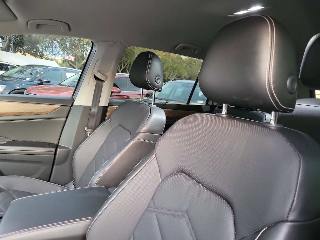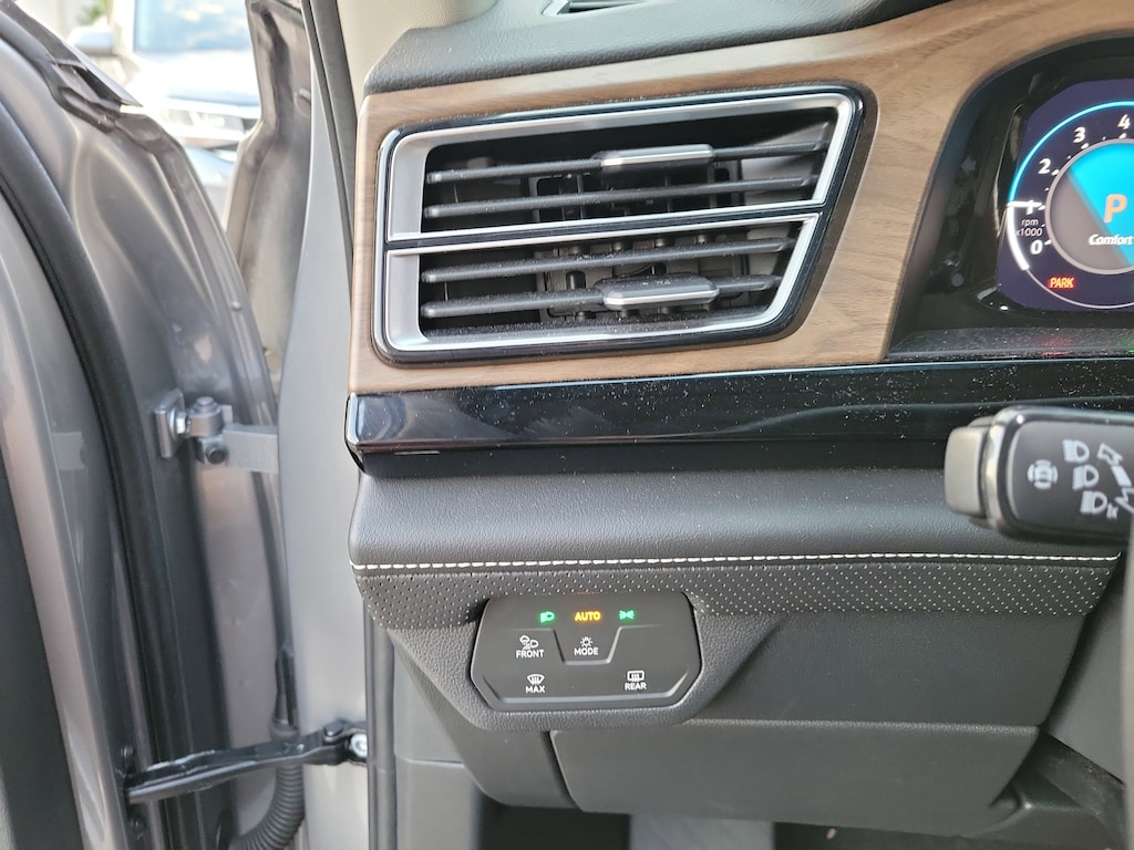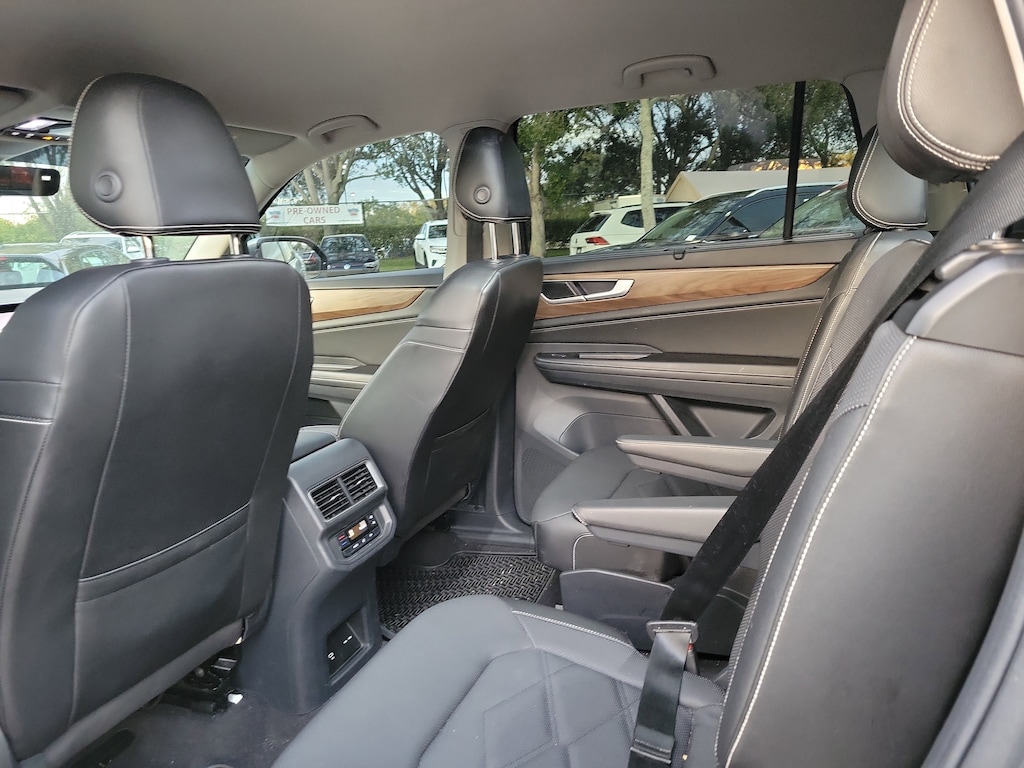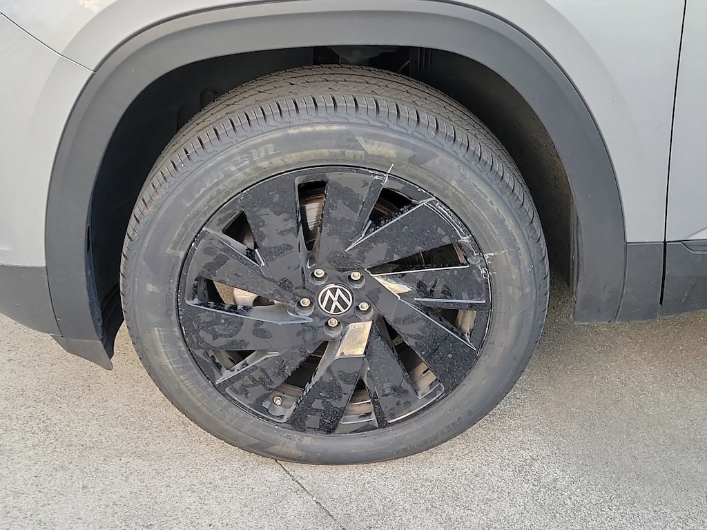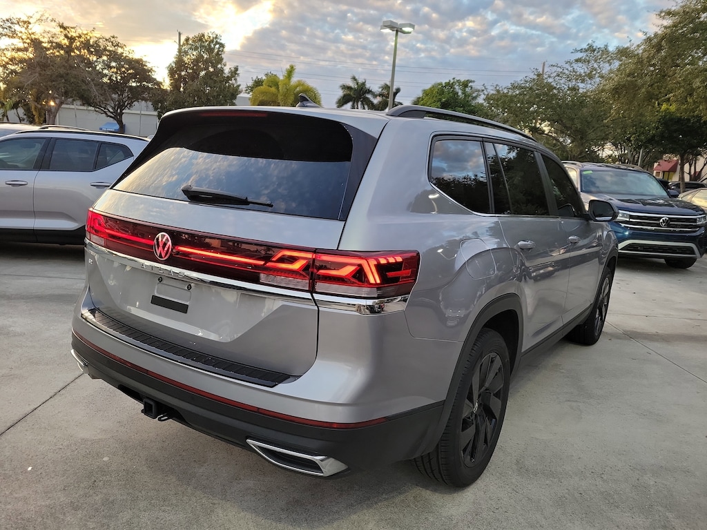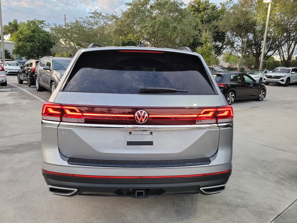 CARFAX One-Owner. Silver Mist Metallic 2024 Volkswagen Atlas 2.0T SE w/Technology 2.0L TSI 8-Speed Automatic with Tiptronic FWD Black Wheel Package (Wheels: 20" Multi-Spoke Black Painted Alloy), 2nd-Row Dual Captain's Chairs, 3.60 Axle Ratio, 3rd row seats: split-bench, 4-Wheel Disc Brakes, 6 Speakers, ABS brakes, Air Conditioning, Alloy wheels, AM/FM radio: SiriusXM with 360L, Auto-Dimming Rear-View Mirror, Auto-dimming Rear-View mirror, Automatic temperature control, Brake assist, Bumpers: body-color, Compass, Delay-off headlights, Driver door bin, Driver vanity mirror, Dual front impact airbags, Dual front side impact airbags, Electronic Stability Control, Emergency communication system: VW Car-Net Safe & Secure 5-year, Exterior Parking Camera Rear, Four wheel independent suspension, Front anti-roll bar, Front Bucket Seats, Front Center Armrest, Front dual zone A/C, Front fog lights, Front reading lights, Fully automatic headlights, Heated door mirrors, Heated front seats, Heated steering wheel, Heated/Actively Ventilated Front Bucket Seats, Heavy Duty Trunk Liner w/VW CarGo Blocks, Illuminated entry, Low tire pressure warning, Occupant sensing airbag, Outside temperature display, Overhead airbag, Overhead console, Panic alarm, Passenger door bin, Passenger vanity mirror, Perforated V-Tex Leatherette Seating Surfaces, Power door mirrors, Power driver seat, Power Liftgate, Power steering, Power windows, Radio data system, Radio: MIB3 Composition Media, Rain sensing wipers, Rear air conditioning, Rear anti-roll bar, Rear reading lights, Rear seat center armrest, Rear window defroster, Rear window wiper, Remote keyless entry, Rubber Mats - Captain's Chairs, Rubber Mats Kit - Captain's Chairs, Security system, Speed control, Speed-sensing steering, Split folding rear seat, Spoiler, Standard Suspension, Steering wheel mounted audio controls, Tachometer, Telescoping steering wheel, Tilt steering wheel, Traction control, Trip computer, Turn signal indicator mirrors, Variably intermittent wipers, Ventilated front seats, and Wheels: 20" 2-Tone Machined Alloy.
