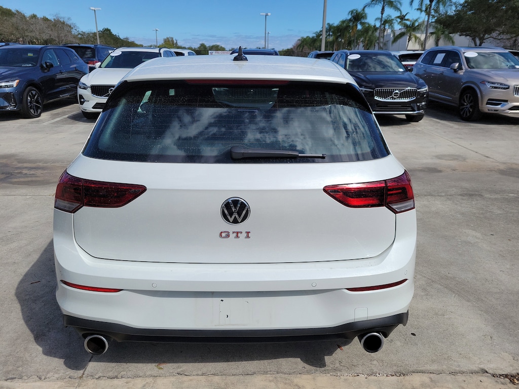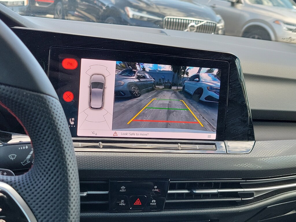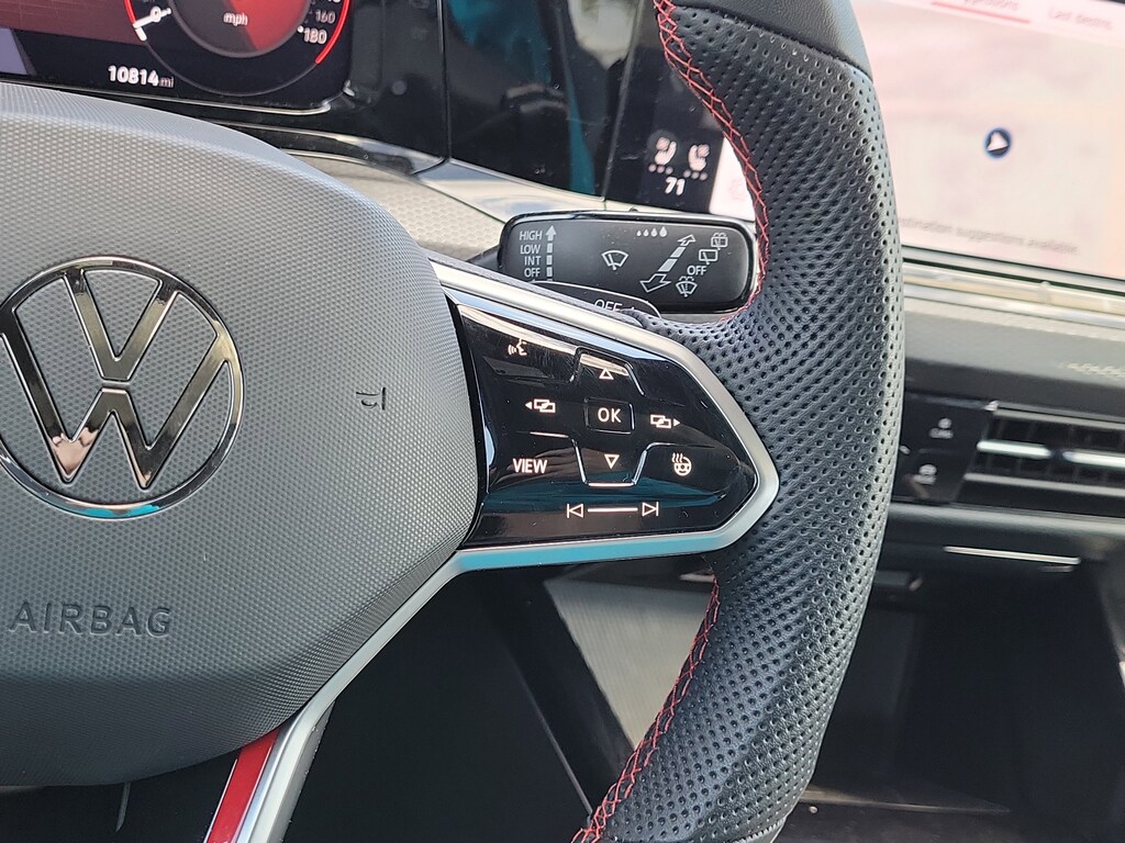 CARFAX One-Owner. Opal White 2024 Volkswagen Golf GTI 2.0T SE 2.0L TSI DOHC 7-Speed DSG Automatic with Tiptronic FWD SE Leather Seats Package (Actively Ventilated Front Seats, Padded Door Panels w/Leatherette Inserts, and Vienna Leather Seating Surfaces w/Perf Inserts), 4-Wheel Disc Brakes, 9 Speakers, ABS brakes, Air Conditioning, Alloy wheels, AM/FM radio: SiriusXM with 360L, Auto-dimming Rear-View mirror, Auto-Dimming Rearview Mirror w/HomeLink Connect, Automatic temperature control, Brake assist, Bumpers: body-color, Cloth Seating Surfaces, Compass, Delay-off headlights, Driver door bin, Driver vanity mirror, Dual front impact airbags, Dual front side impact airbags, Electronic Stability Control, Emergency communication system: VW Car-Net Safe & Secure 5-year, Exterior Parking Camera Rear, First Aid Kit, Forward collision: FCW w/Autonomous Emergency Braking mitigation, Four wheel independent suspension, Front anti-roll bar, Front Bucket Seats, Front Center Armrest, Front fog lights, Front reading lights, Fully automatic headlights, harman/kardon® Speakers, Heated door mirrors, Heated front seats, Heated Front Top Sport Seats, Heated steering wheel, Illuminated entry, Lane Departure Warning System, Leather steering wheel, Low tire pressure warning, Navigation System, Occupant sensing airbag, Outside temperature display, Overhead airbag, Overhead console, Panic alarm, Passenger door bin, Passenger vanity mirror, Power door mirrors, Power driver seat, Power moonroof: Panoramic, Power passenger seat, Power steering, Power windows, Radio data system, Radio: MIB3 Discover Pro w/10" Touchscreen Navi, Rain sensing wipers, Rear anti-roll bar, Rear reading lights, Rear seat center armrest, Rear window defroster, Rear window wiper, Remote keyless entry, Roadside Assistance Kit, Rubber Mats Kit, Security system, Speed control, Speed-sensing steering, Speed-Sensitive Wipers, Split folding rear seat, Spoiler, Sport steering wheel, Steering wheel mounted audio controls, Tachometer, Telescoping steering wheel, Tilt steering wheel, Traction control, Trip computer, Turn signal indicator mirrors, Variably intermittent wipers, and Wheels: 18" 2-Tone Machined Alloy.