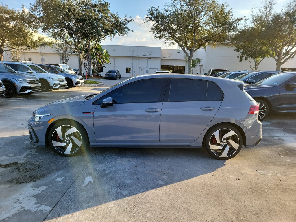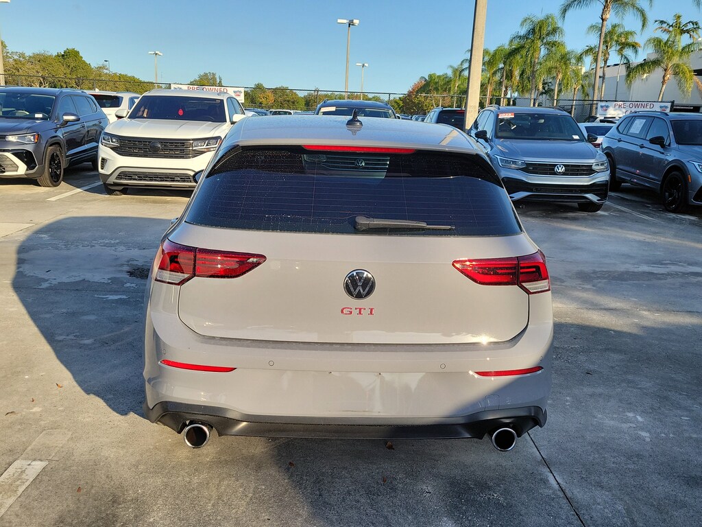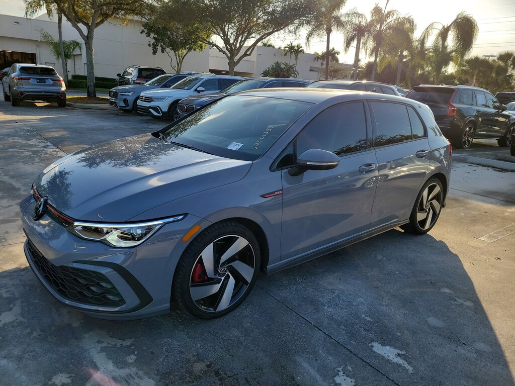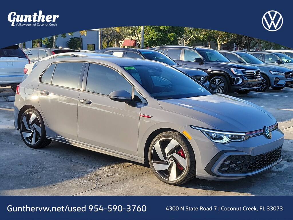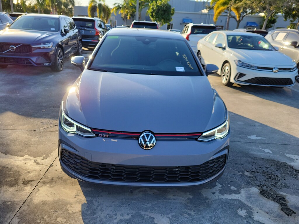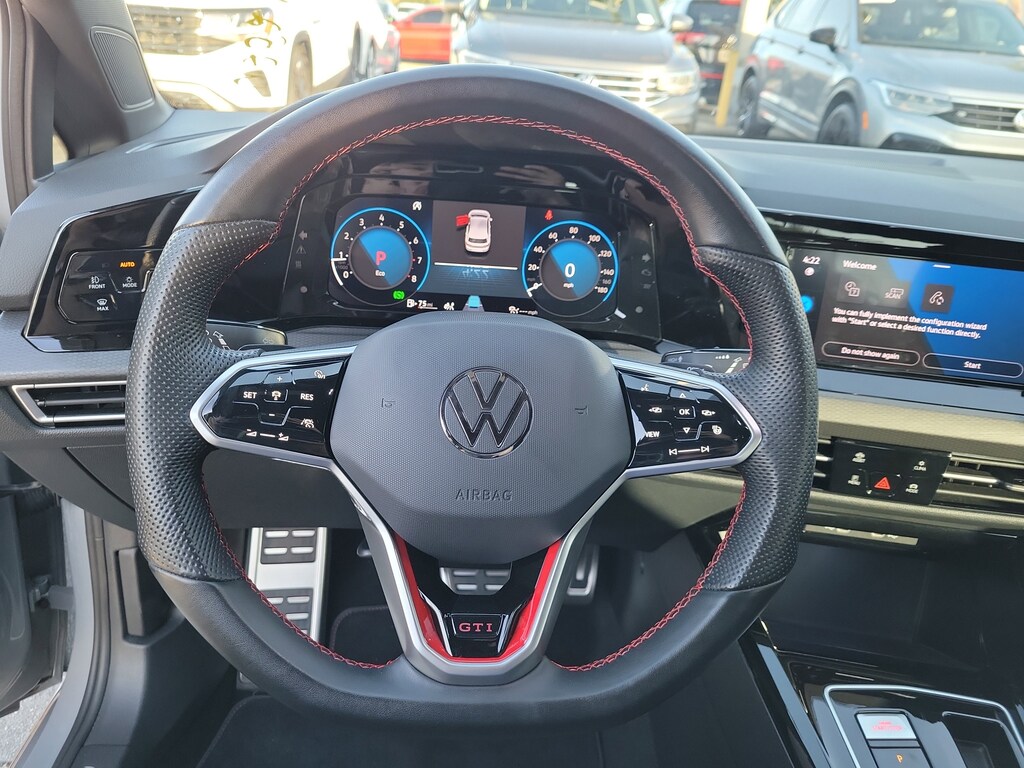 CARFAX One-Owner. Moonstone 2024 Volkswagen Golf GTI 2.0T S 2.0L TSI DOHC 7-Speed DSG Automatic with Tiptronic FWD 4-Wheel Disc Brakes, 7 Speakers, ABS brakes, Air Conditioning, Alloy wheels, AM/FM radio, Auto-dimming Rear-View mirror, Automatic temperature control, Brake assist, Bumpers: body-color, Cloth Seating Surfaces, Compass, Delay-off headlights, Driver door bin, Driver vanity mirror, Dual front impact airbags, Dual front side impact airbags, Electronic Stability Control, Emergency communication system: VW Car-Net Safe & Secure 5-year, Exterior Parking Camera Rear, Forward collision: FCW w/Autonomous Emergency Braking mitigation, Four wheel independent suspension, Front anti-roll bar, Front Bucket Seats, Front Center Armrest, Front fog lights, Front reading lights, Fully automatic headlights, Heated door mirrors, Heated front seats, Heated Front Top Sport Seats, Heated steering wheel, Illuminated entry, Lane Departure Warning System, Leather steering wheel, Low tire pressure warning, Occupant sensing airbag, Outside temperature display, Overhead airbag, Overhead console, Panic alarm, Passenger door bin, Passenger vanity mirror, Power door mirrors, Power driver seat, Power passenger seat, Power steering, Power windows, Radio data system, Radio: MIB3 Composition Color w/8.25" Touchscreen, Rain sensing wipers, Rear anti-roll bar, Rear reading lights, Rear seat center armrest, Rear window defroster, Rear window wiper, Remote keyless entry, Security system, Speed control, Speed-sensing steering, Speed-Sensitive Wipers, Split folding rear seat, Spoiler, Sport steering wheel, Steering wheel mounted audio controls, Tachometer, Telescoping steering wheel, Tilt steering wheel, Traction control, Trip computer, Turn signal indicator mirrors, Variably intermittent wipers, and Wheels: 18" 2-Tone Machined Alloy.