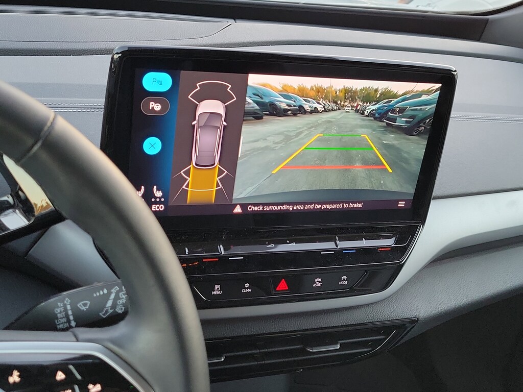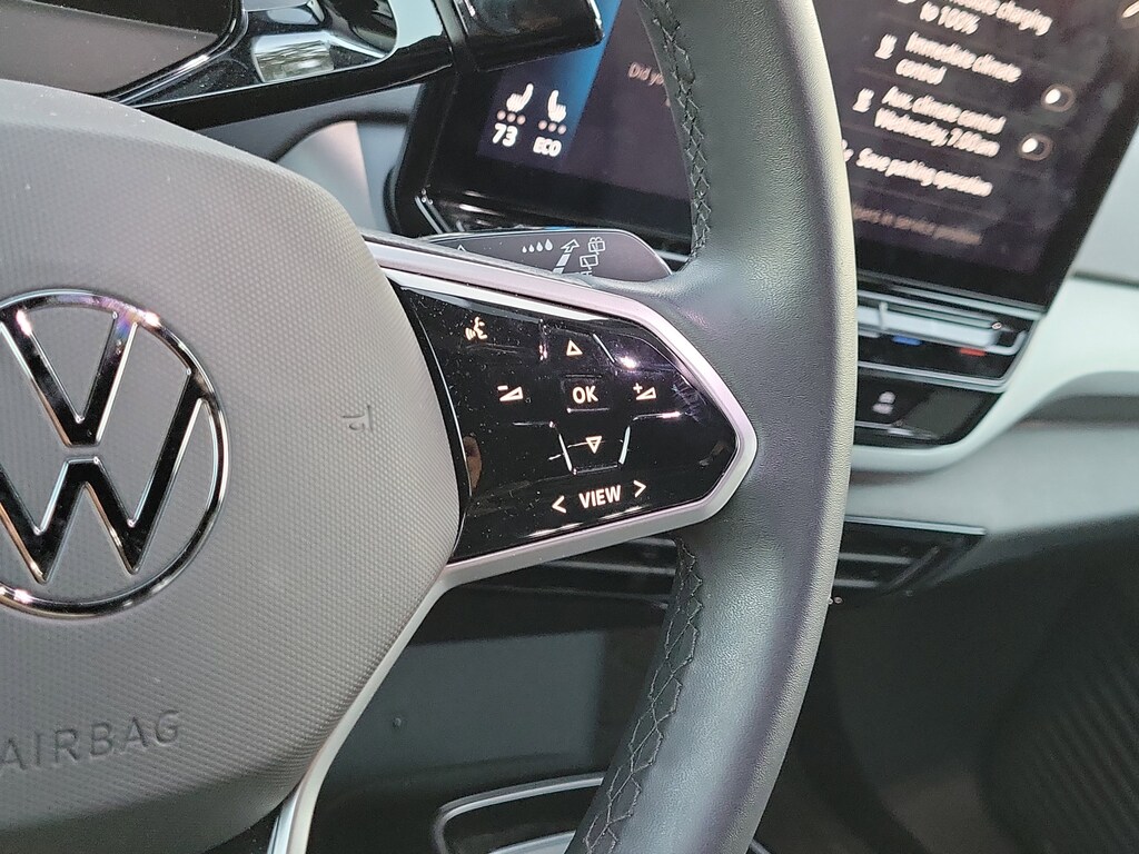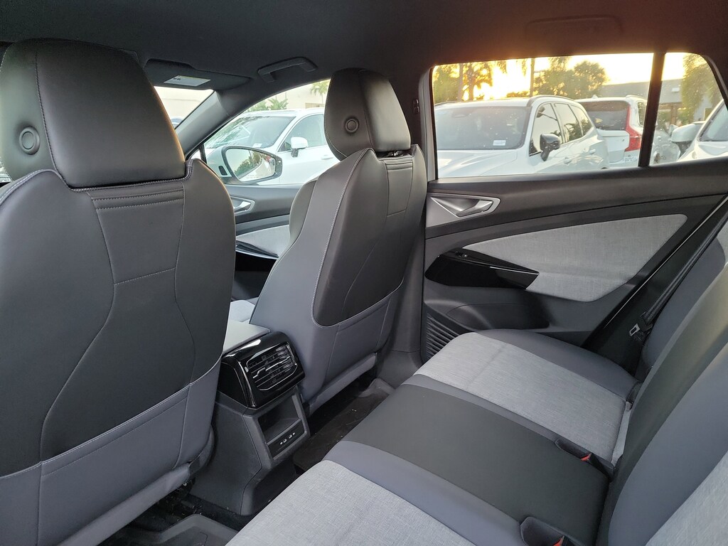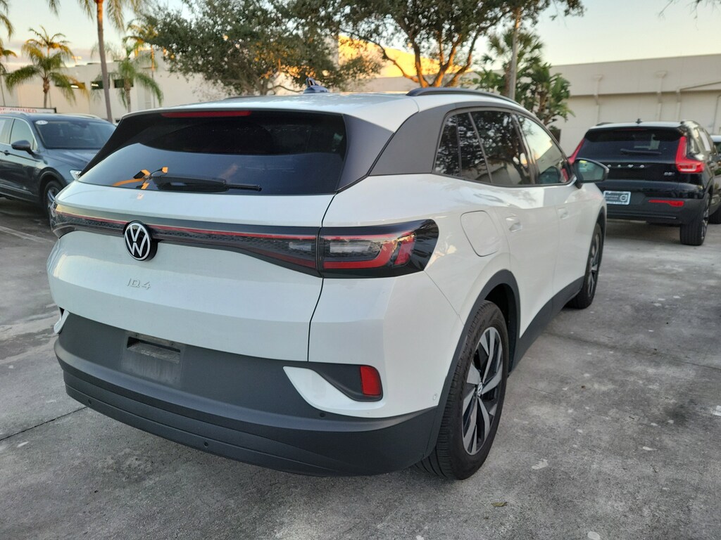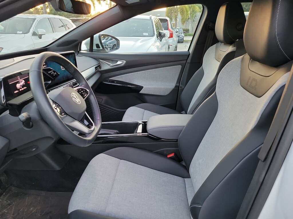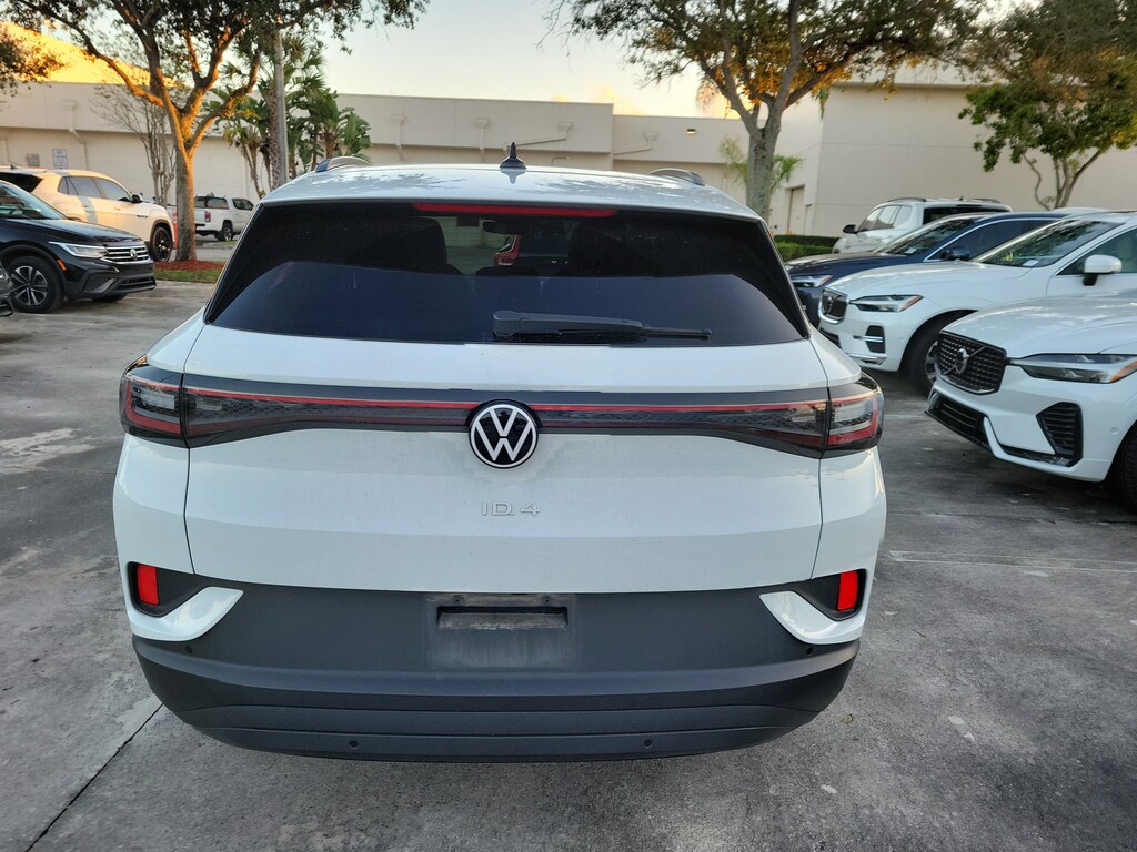 CARFAX One-Owner. Pure White 2024 Volkswagen ID.4 Standard Electric Motor Single-Speed Automatic RWD 4-Wheel Independent Suspension, 4.39 Axle Ratio, 7 Speakers, ABS brakes, Air Conditioning, Alloy wheels, Auto High-beam Headlights, Auto-dimming Rear-View mirror, Automatic temperature control, Brake assist, Bumpers: body-color, Cloth Seating Surfaces, Delay-off headlights, Driver door bin, Driver vanity mirror, Driver's Seat Mounted Armrest, Dual front impact airbags, Dual front side impact airbags, Electronic Stability Control, Emergency communication system: VW Car-Net Safe & Secure 5-year, Exterior Parking Camera Rear, Four wheel independent suspension, Front anti-roll bar, Front Bucket Seats, Front dual zone A/C, Front reading lights, Fully automatic headlights, Heated door mirrors, Heated Front Seats, Heated front seats, Heavy Duty Trunk Liner w/VW CarGo Blocks, Illuminated entry, Low tire pressure warning, Navigation System, Occupant sensing airbag, Outside temperature display, Overhead airbag, Overhead console, Panic alarm, Passenger door bin, Passenger seat mounted armrest, Passenger vanity mirror, Power door mirrors, Power steering, Power windows, Radio data system, Radio: Discover Pro Max w/Touchscreen Navigation, Rain sensing wipers, Rear anti-roll bar, Rear reading lights, Rear window defroster, Rear window wiper, Remote keyless entry, Rubber Mats Kit, Speed control, Speed-sensing steering, Split folding rear seat, Spoiler, Steering wheel mounted audio controls, Telescoping steering wheel, Tilt steering wheel, Traction control, Trip computer, Turn signal indicator mirrors, Variably intermittent wipers, and Wheels: 19" 2-Tone Machined Alloy.