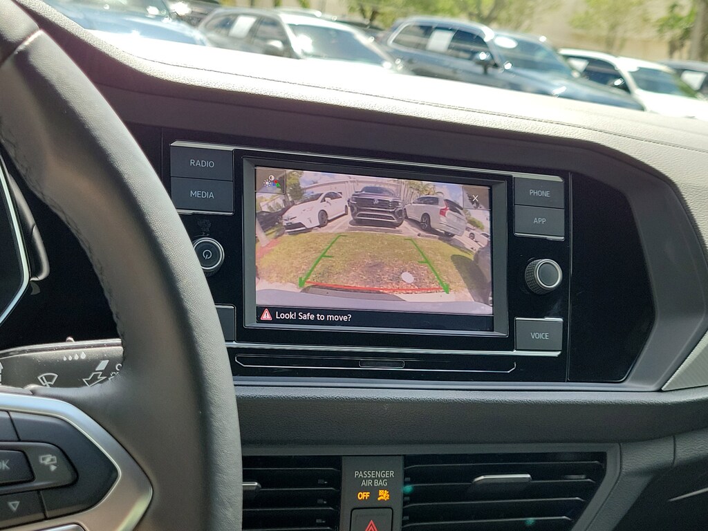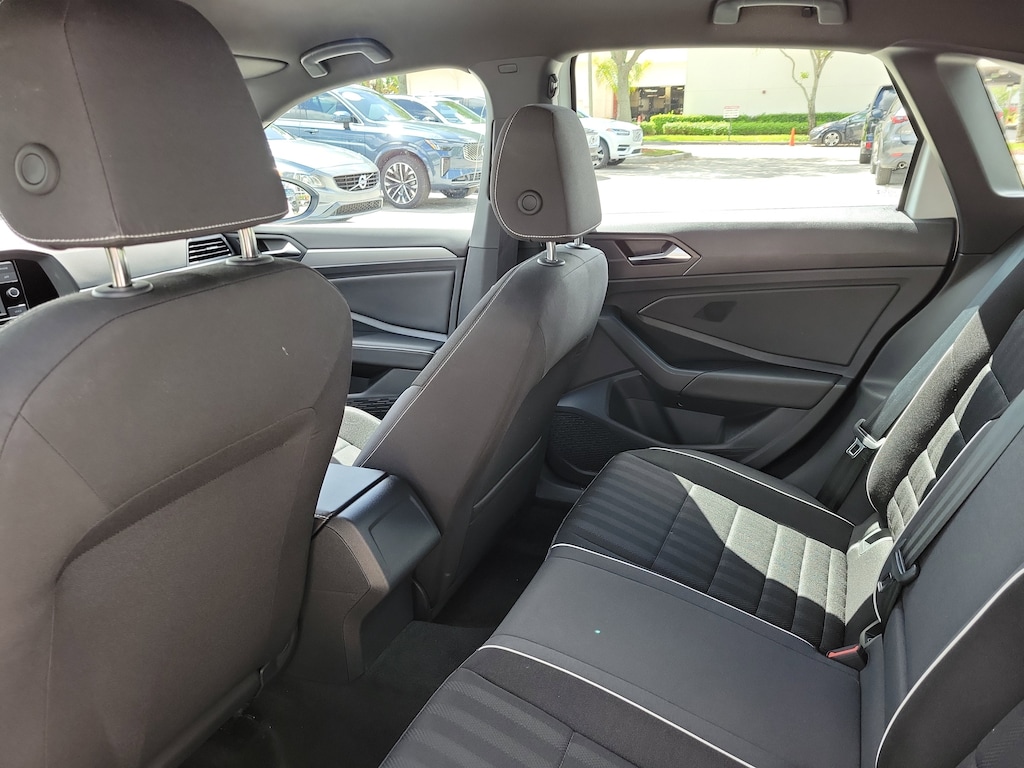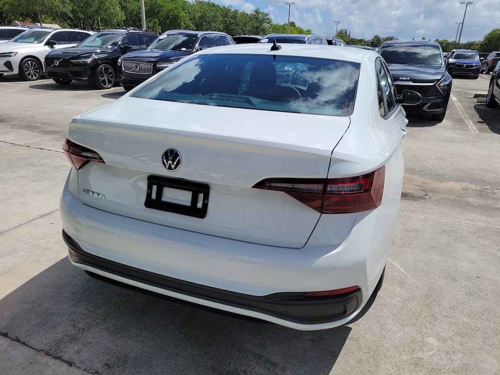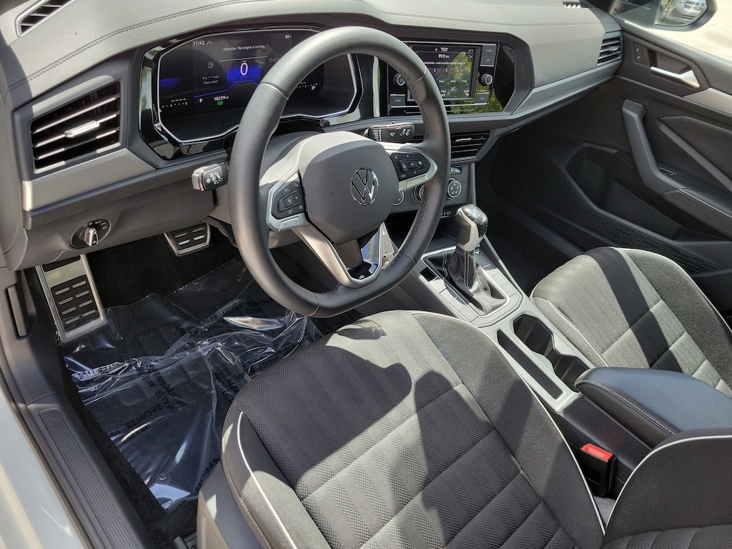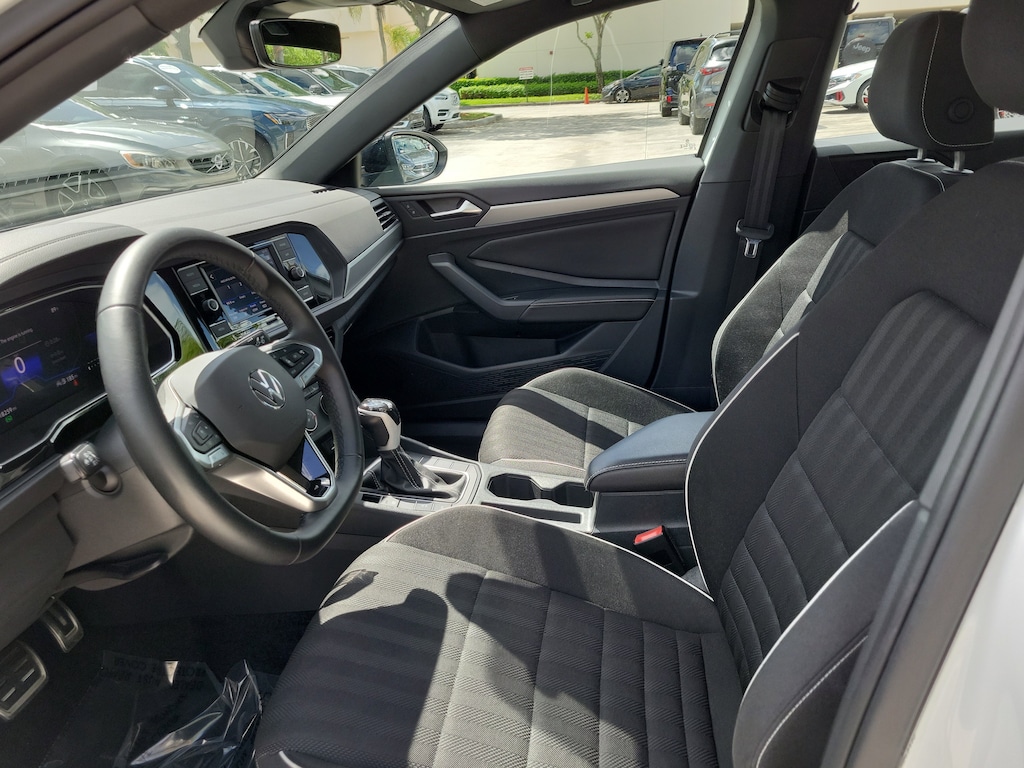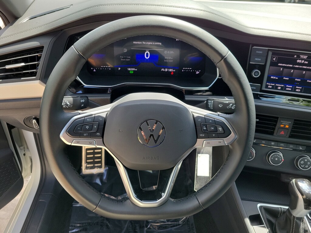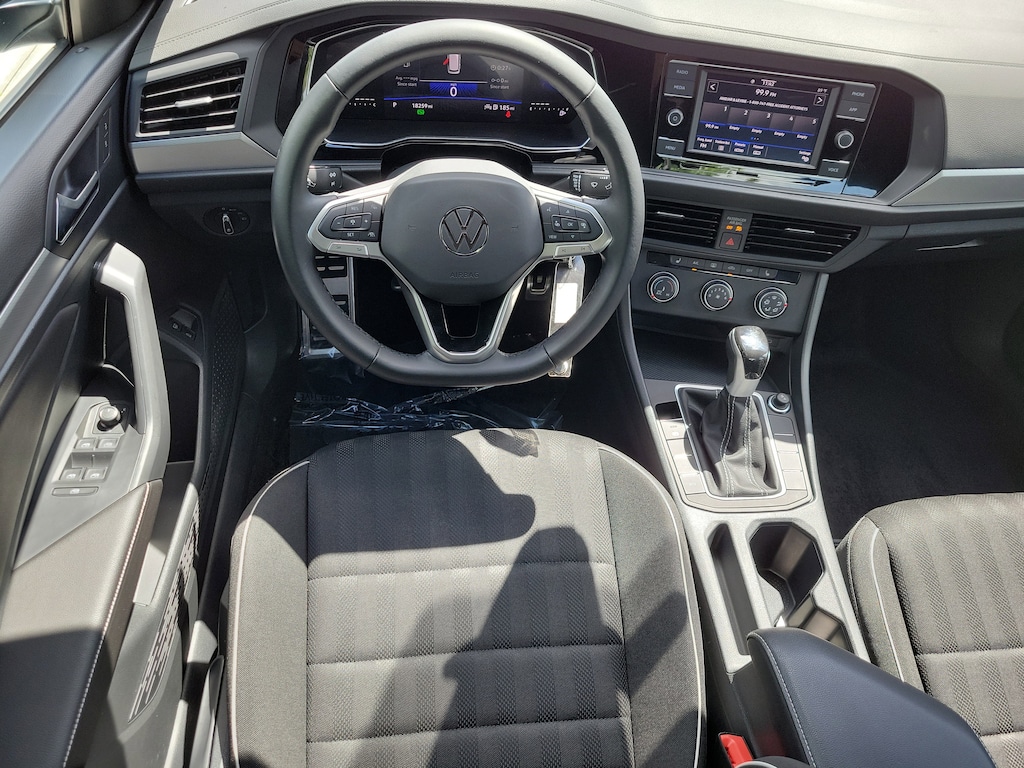CARFAX One-Owner. Pure White 2024 Volkswagen Jetta 1.5T Sport 1.5L I-4 DI DOHC Turbocharged 8-Speed Automatic with Tiptronic FWD 4 Speakers, 4-Wheel Disc Brakes, ABS brakes, Active Blind Spot Monitor, Air Conditioning, Alloy wheels, Auto-dimming Rear-View mirror, Brake assist, Bumpers: body-color, Cloth Seat Trim, Delay-off headlights, Driver door bin, Driver vanity mirror, Dual front impact airbags, Dual front side impact airbags, Electronic Stability Control, Emergency communication system: VW Car-Net Safe & Secure 5-year, Exterior Parking Camera Rear, Front anti-roll bar, Front Bucket Seats, Front Center Armrest, Front wheel independent suspension, Fully automatic headlights, Heated door mirrors, Heated Front Seats, Heated front seats, Illuminated entry, Leather Shift Knob, Leather steering wheel, Low tire pressure warning, Occupant sensing airbag, Outside temperature display, Overhead airbag, Overhead console, Panic alarm, Passenger door bin, Passenger vanity mirror, Power door mirrors, Power steering, Power windows, Radio data system, Radio: MIB3 Composition Color w/6.5" Touchscreen, Rain sensing wipers, Rear anti-roll bar, Rear reading lights, Rear seat center armrest, Rear window defroster, Remote keyless entry, Speed control, Speed-sensing steering, Split folding rear seat, Steering wheel mounted audio controls, Tachometer, Telescoping steering wheel, Tilt steering wheel, Traction control, Trip computer, Variably intermittent wipers, and Wheels: 17" 2-Tone Machined Alloy.