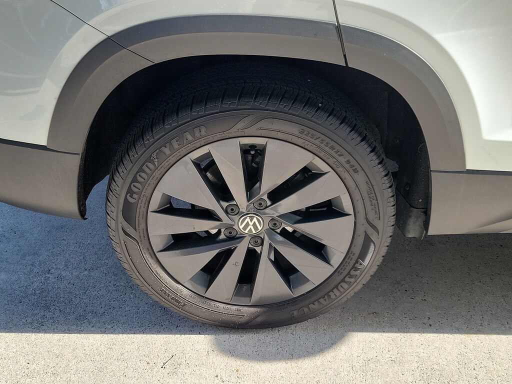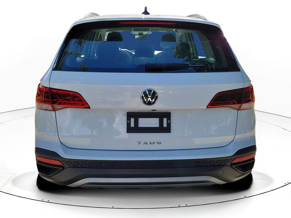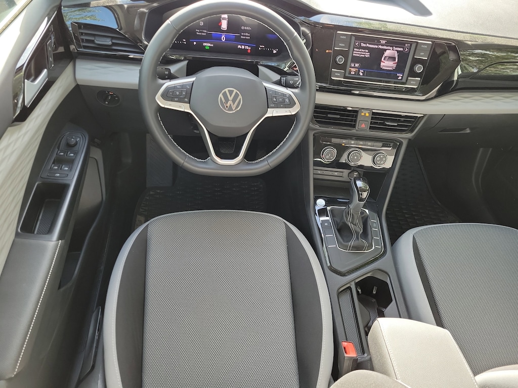 CARFAX One-Owner. Pure White 2024 Volkswagen Taos 1.5T S 1.5L I4 Turbocharged DOHC 16V LEV3-SULEV30 158hp 8-Speed Automatic with Tiptronic FWD 3.23 Axle Ratio, 4-Wheel Disc Brakes, 6 Speakers, ABS brakes, Active Blind Spot Monitor, Air Conditioning, Alloy wheels, AM/FM radio, Auto High-beam Headlights, Brake assist, Bumpers: body-color, Cloth Seating Surfaces, Compass, Delay-off headlights, Driver door bin, Driver vanity mirror, Dual front impact airbags, Dual front side impact airbags, Electronic Stability Control, Emergency communication system: VW Car-Net Safe & Secure 5-year, Exterior Parking Camera Rear, Front anti-roll bar, Front Bucket Seats, Front Center Armrest, Front reading lights, Front Strut Rear Torsion Beam Suspension, Front wheel independent suspension, Fully automatic headlights, Heated steering wheel, Illuminated entry, Leather Shift Knob, Low tire pressure warning, Occupant sensing airbag, Outside temperature display, Overhead airbag, Overhead console, Panic alarm, Passenger door bin, Passenger vanity mirror, Power door mirrors, Power steering, Power windows, Radio data system, Radio: Composition Color AM/FM, Rain sensing wipers, Rear anti-roll bar, Rear seat center armrest, Rear window defroster, Rear window wiper, Remote keyless entry, Roof rack: rails only, Rubber Mats Kit (SNM), Speed control, Speed-sensing steering, Split folding rear seat, Spoiler, Steering wheel mounted audio controls, Tachometer, Telescoping steering wheel, Tilt steering wheel, Traction control, Trip computer, Variably intermittent wipers, and Wheels: 17" Silver Painted Alloy.