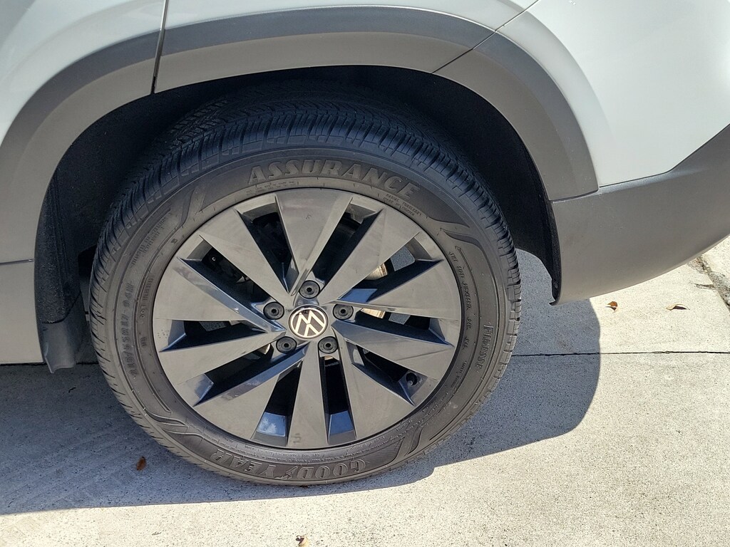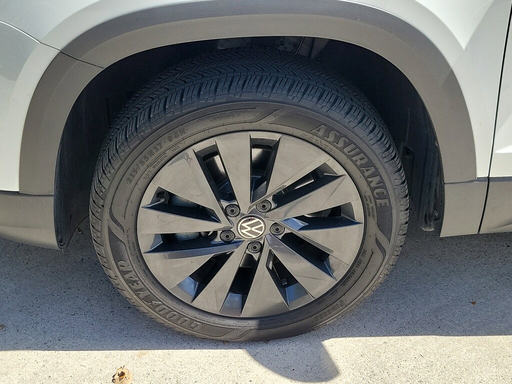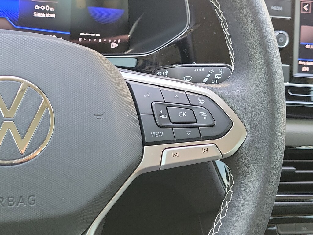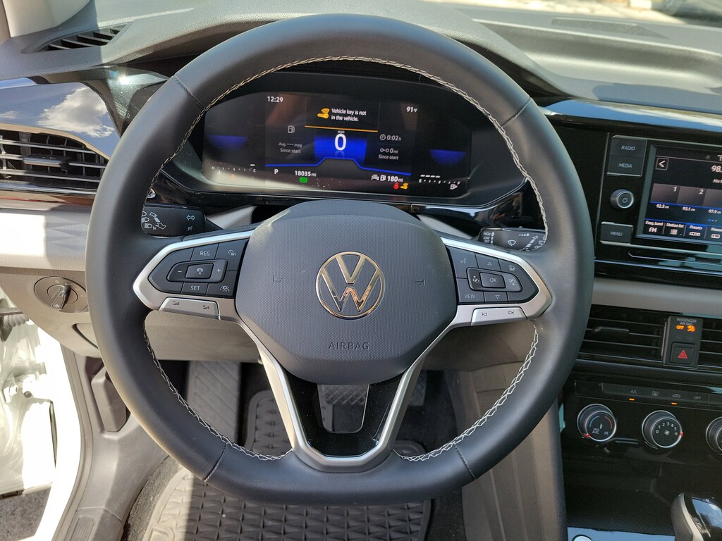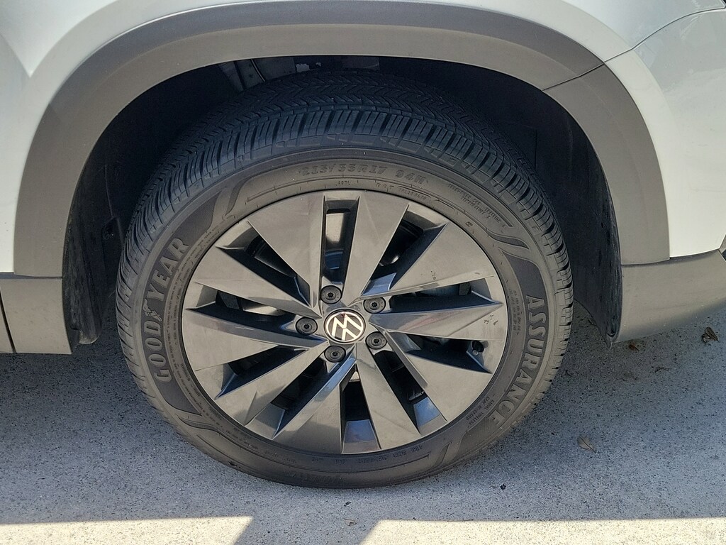 CARFAX One-Owner. Pure White 2024 Volkswagen Taos 1.5T S 1.5L I4 Turbocharged DOHC 16V LEV3-SULEV30 158hp 8-Speed Automatic with Tiptronic FWD 3.23 Axle Ratio, 4-Wheel Disc Brakes, 6 Speakers, ABS brakes, Active Blind Spot Monitor, Air Conditioning, Alloy wheels, AM/FM radio, Auto High-beam Headlights, Brake assist, Bumpers: body-color, Cloth Seating Surfaces, Compass, Delay-off headlights, Driver door bin, Driver vanity mirror, Dual front impact airbags, Dual front side impact airbags, Electronic Stability Control, Emergency communication system: VW Car-Net Safe & Secure 5-year, Exterior Parking Camera Rear, Front anti-roll bar, Front Bucket Seats, Front Center Armrest, Front reading lights, Front Strut Rear Torsion Beam Suspension, Front wheel independent suspension, Fully automatic headlights, Heated steering wheel, Illuminated entry, Leather Shift Knob, Low tire pressure warning, Occupant sensing airbag, Outside temperature display, Overhead airbag, Overhead console, Panic alarm, Passenger door bin, Passenger vanity mirror, Power door mirrors, Power steering, Power windows, Radio data system, Radio: Composition Color AM/FM, Rain sensing wipers, Rear anti-roll bar, Rear seat center armrest, Rear window defroster, Rear window wiper, Remote keyless entry, Roof rack: rails only, Speed control, Speed-sensing steering, Split folding rear seat, Spoiler, Steering wheel mounted audio controls, Tachometer, Telescoping steering wheel, Tilt steering wheel, Traction control, Trip computer, Variably intermittent wipers, and Wheels: 17" Silver Painted Alloy.
