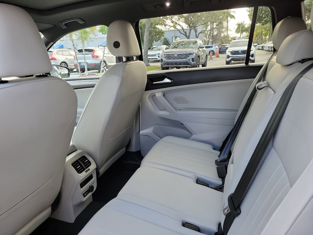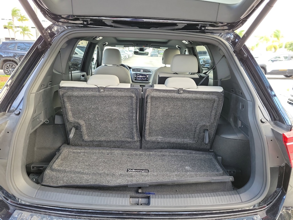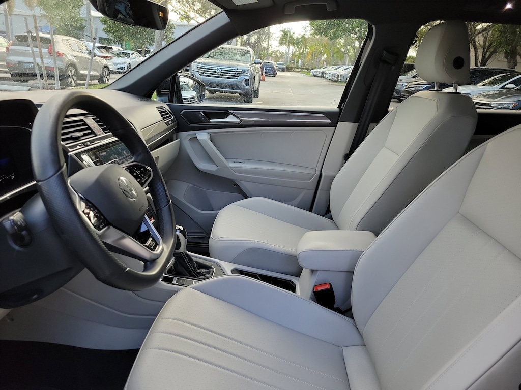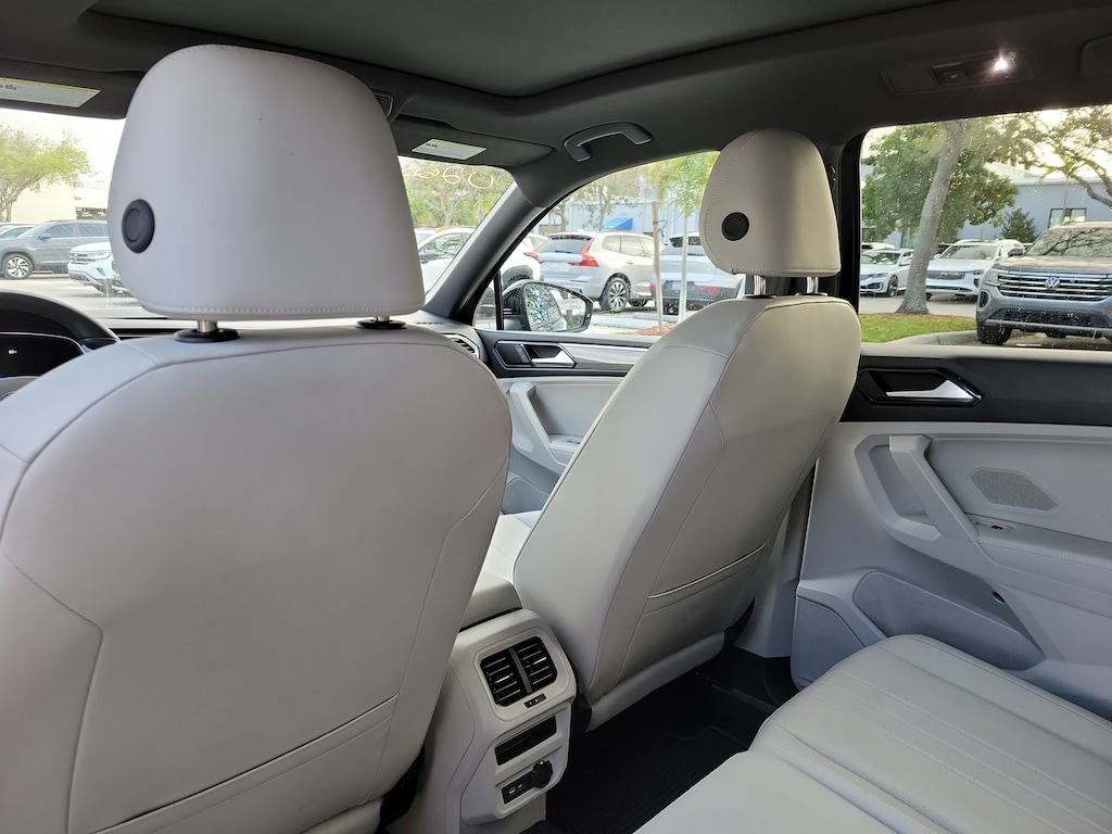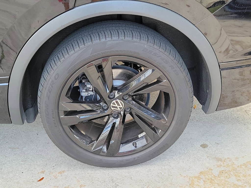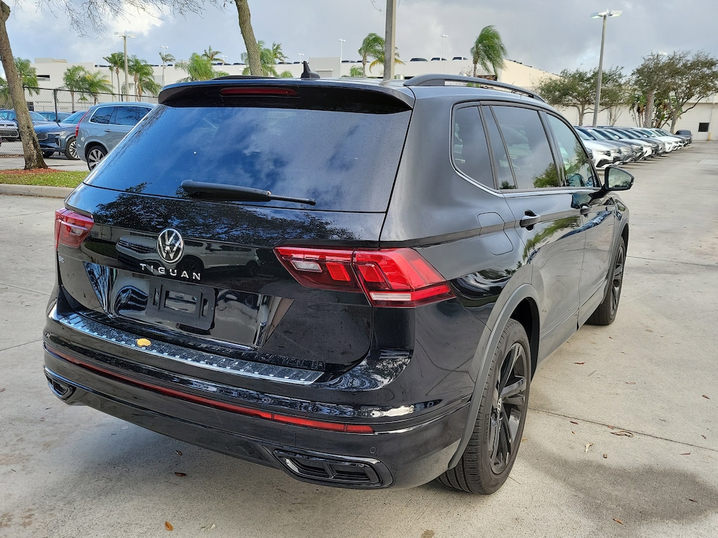 CARFAX One-Owner. Deep Black 2024 Volkswagen Tiguan 2.0T SE R-Line Black 2.0L TSI DOHC 8-Speed Automatic with Tiptronic FWD 3.33 Axle Ratio, 3rd row seats: bench, 4-Wheel Disc Brakes, 4-Wheel Independent Suspension, 6 Speakers, ABS brakes, Air Conditioning, Alloy wheels, AM/FM radio: SiriusXM with 360L, Auto-dimming Rear-View mirror, Automatic temperature control, Brake assist, Bumpers: body-color, Compass, Delay-off headlights, Driver door bin, Driver vanity mirror, Dual front impact airbags, Dual front side impact airbags, Electronic Stability Control, Emergency communication system: VW Car-Net Safe & Secure 5-year, Exterior Parking Camera Rear, Four wheel independent suspension, Front anti-roll bar, Front Bucket Seats, Front Center Armrest, Front dual zone A/C, Front reading lights, Fully automatic headlights, Heated door mirrors, Heated Front Seats, Heated front seats, Illuminated entry, Leather Shift Knob, Leather steering wheel, Low tire pressure warning, Occupant sensing airbag, Outside temperature display, Overhead airbag, Overhead console, Panic alarm, Passenger door bin, Passenger vanity mirror, Perforated V-Tex Leatherette Seating Surfaces, Power door mirrors, Power driver seat, Power Liftgate, Power moonroof, Power steering, Power windows, Radio data system, Radio: MIB3 Composition Media AM/FM/HD, Rain sensing wipers, Rear anti-roll bar, Rear reading lights, Rear seat center armrest, Rear window defroster, Rear window wiper, Remote keyless entry, Security system, Speed control, Speed-sensing steering, Split folding rear seat, Spoiler, Sport steering wheel, Steering wheel mounted audio controls, Tachometer, Telescoping steering wheel, Tilt steering wheel, Traction control, Trip computer, Turn signal indicator mirrors, Variably intermittent wipers, and Wheels: 19" Black Painted Twin 5-Spoke Alloy.