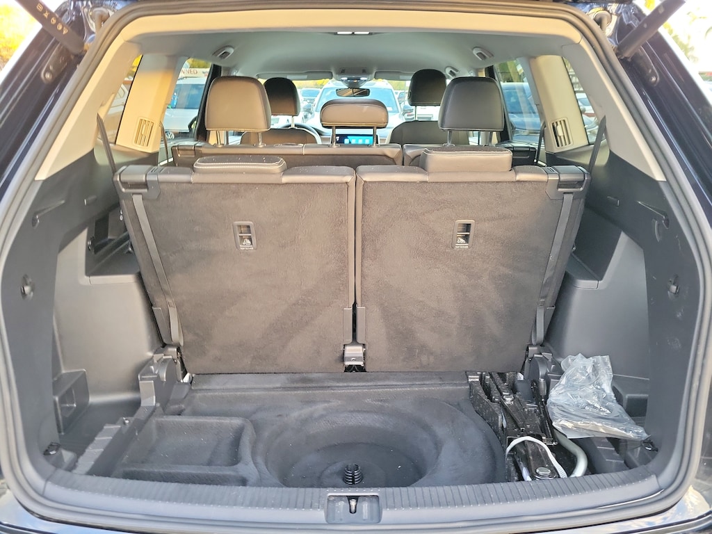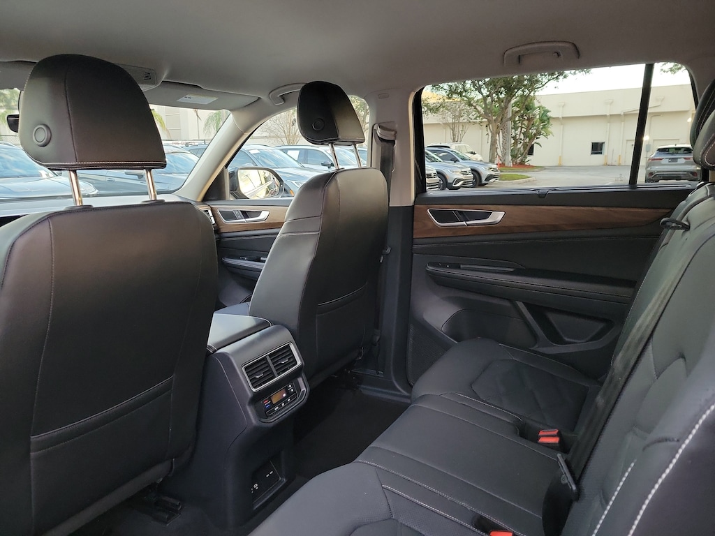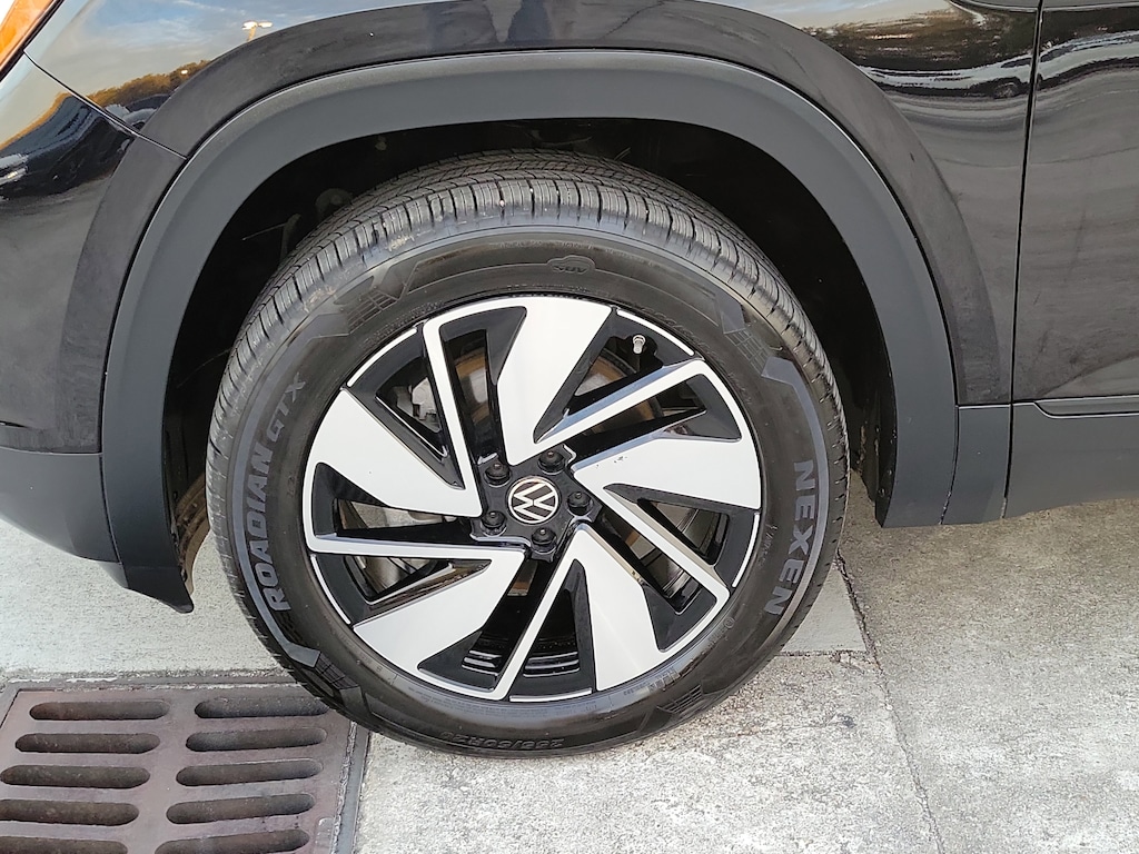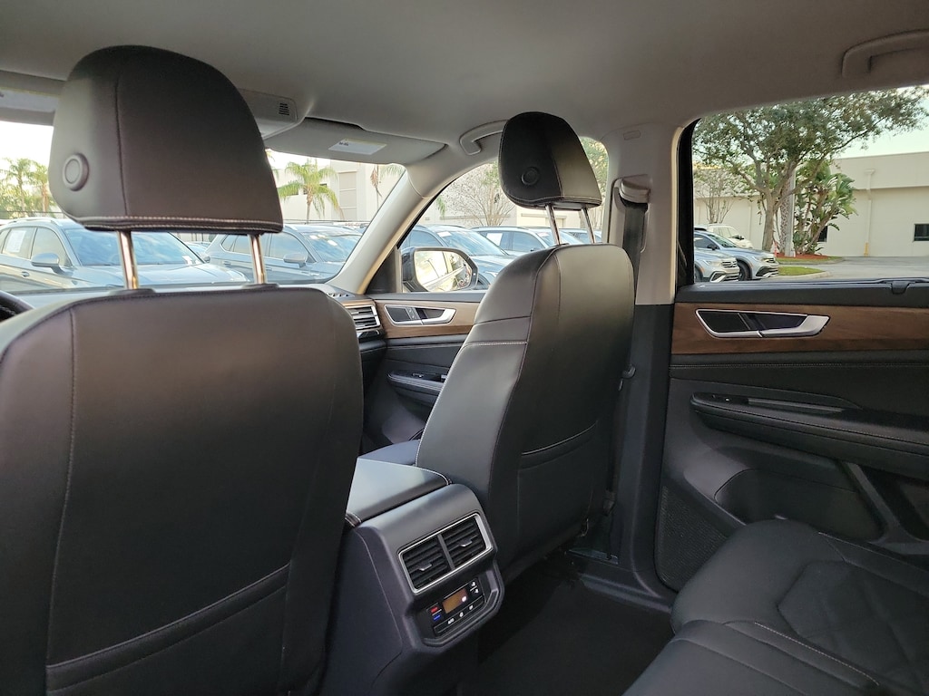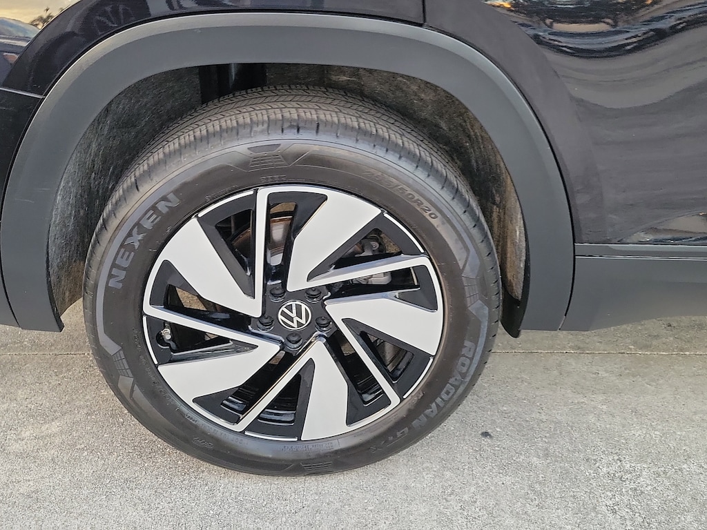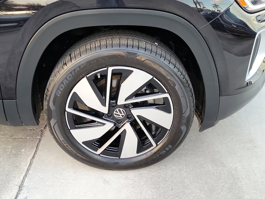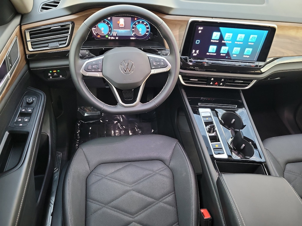CARFAX One-Owner. Deep Black 2025 Volkswagen Atlas 2.0T SE w/Technology 2.0L TSI 8-Speed Automatic FWD 20" 2-tone machined alloy wheels, 3rd row seats: split-bench, 4-Wheel Disc Brakes, 6 Speakers, ABS brakes, Air Conditioning, Alloy wheels, AM/FM radio: SiriusXM with 360L, Auto High-beam Headlights, Auto-dimming Rear-View mirror, Automatic temperature control, Brake assist, Bumpers: body-color, Compass, Delay-off headlights, Driver door bin, Driver vanity mirror, Dual front impact airbags, Dual front side impact airbags, Electronic Stability Control, Emergency communication system: VW Car-Net Safe & Secure 5-year, Exterior Parking Camera Rear, Four wheel independent suspension, four-wheel independent suspension, Front anti-roll bar, Front Bucket Seats, Front Center Armrest, Front dual zone A/C, Front fog lights, Front reading lights, Fully automatic headlights, heated and Actively ventilated front bucket seats, Heated door mirrors, Heated front seats, Heated steering wheel, Illuminated entry, Low tire pressure warning, MIB3 composition media radio, Occupant sensing airbag, Outside temperature display, Overhead airbag, Overhead console, Panic alarm, Passenger door bin, Passenger vanity mirror, perforated V-Tex leatherette seating surfaces, Power door mirrors, Power driver seat, Power Liftgate, Power steering, Power windows, Radio data system, Rain sensing wipers, Rear air conditioning, Rear anti-roll bar, Rear reading lights, Rear seat center armrest, Rear window defroster, Rear window wiper, Remote keyless entry, Security system, Speed control, Speed-sensing steering, Split folding rear seat, Spoiler, Steering wheel mounted audio controls, Tachometer, Telescoping steering wheel, Tilt steering wheel, Traction control, Trip computer, Turn signal indicator mirrors, Variably intermittent wipers, and Ventilated front seats.