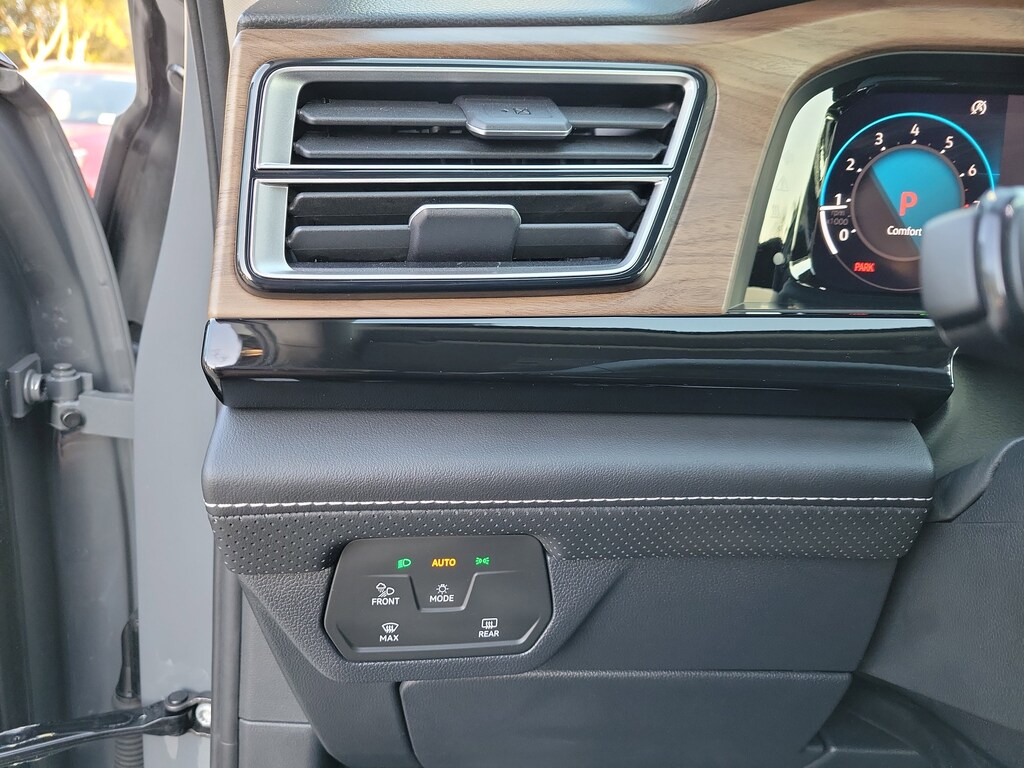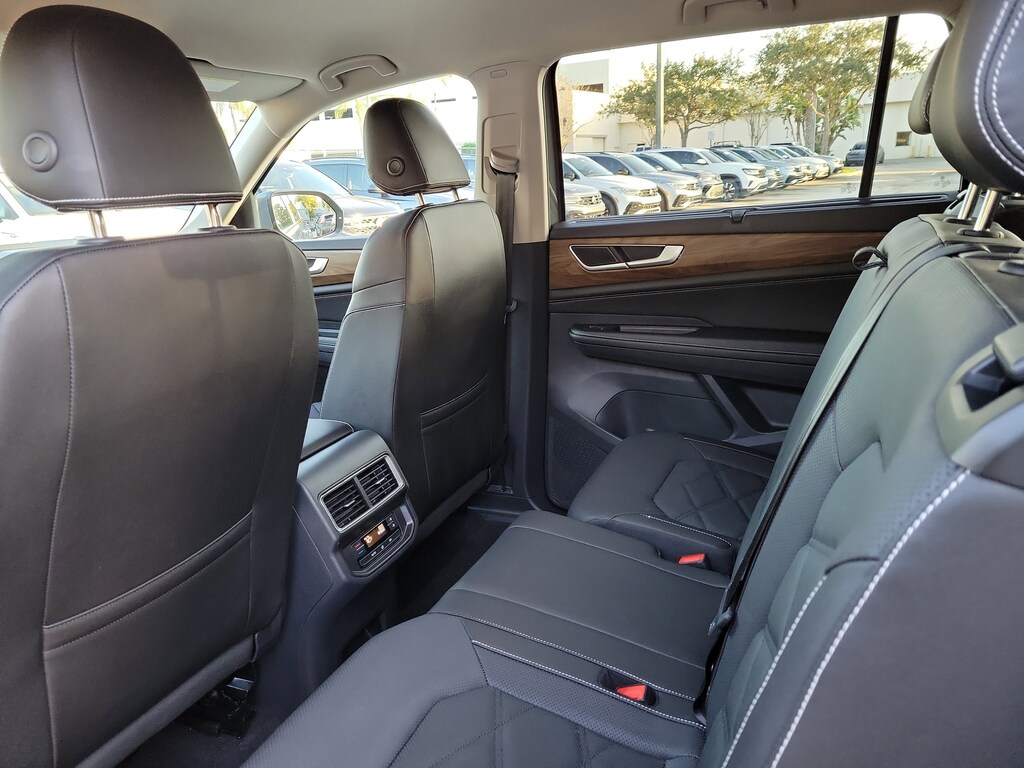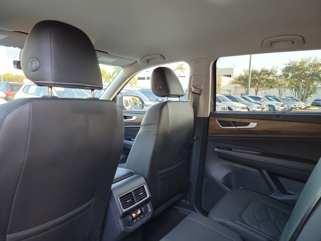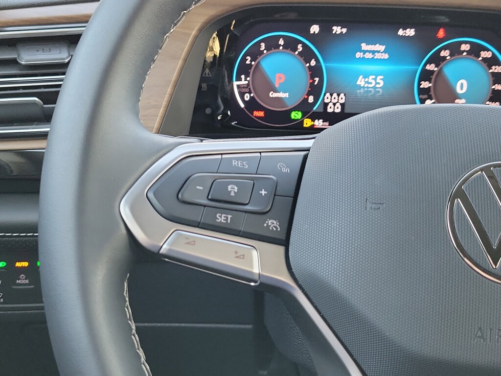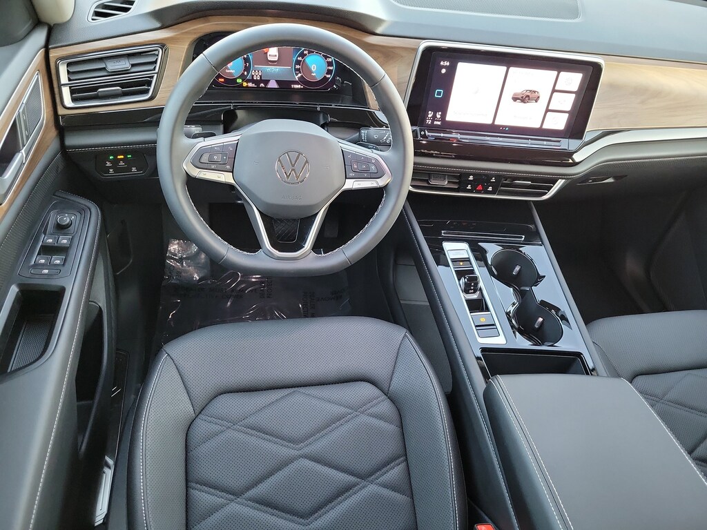 CARFAX One-Owner. Gray 2025 Volkswagen Atlas 2.0T SE w/Technology 2.0L TSI 8-Speed Automatic FWD Black wheel package (20" multi-spoke black painted alloy wheels), 20" 2-tone machined alloy wheels, 3rd row seats: split-bench, 4-Wheel Disc Brakes, 6 Speakers, ABS brakes, Air Conditioning, Alloy wheels, AM/FM radio: SiriusXM with 360L, Auto High-beam Headlights, Auto-dimming Rear-View mirror, Automatic temperature control, Brake assist, Bumpers: body-color, Compass, Delay-off headlights, Driver door bin, Driver vanity mirror, Dual front impact airbags, Dual front side impact airbags, Electronic Stability Control, Emergency communication system: VW Car-Net Safe & Secure 5-year, Exterior Parking Camera Rear, Four wheel independent suspension, four-wheel independent suspension, Front anti-roll bar, Front Bucket Seats, Front Center Armrest, Front dual zone A/C, Front fog lights, Front reading lights, Fully automatic headlights, heated and Actively ventilated front bucket seats, Heated door mirrors, Heated front seats, Heated steering wheel, Illuminated entry, Low tire pressure warning, MIB3 composition media radio, Occupant sensing airbag, Outside temperature display, Overhead airbag, Overhead console, Panic alarm, Passenger door bin, Passenger vanity mirror, perforated V-Tex leatherette seating surfaces, Power door mirrors, Power driver seat, Power Liftgate, Power steering, Power windows, Radio data system, Rain sensing wipers, Rear air conditioning, Rear anti-roll bar, Rear reading lights, Rear seat center armrest, Rear window defroster, Rear window wiper, Remote keyless entry, Security system, Speed control, Speed-sensing steering, Split folding rear seat, Spoiler, Steering wheel mounted audio controls, Tachometer, Telescoping steering wheel, Tilt steering wheel, Traction control, Trip computer, Turn signal indicator mirrors, Variably intermittent wipers, and Ventilated front seats.