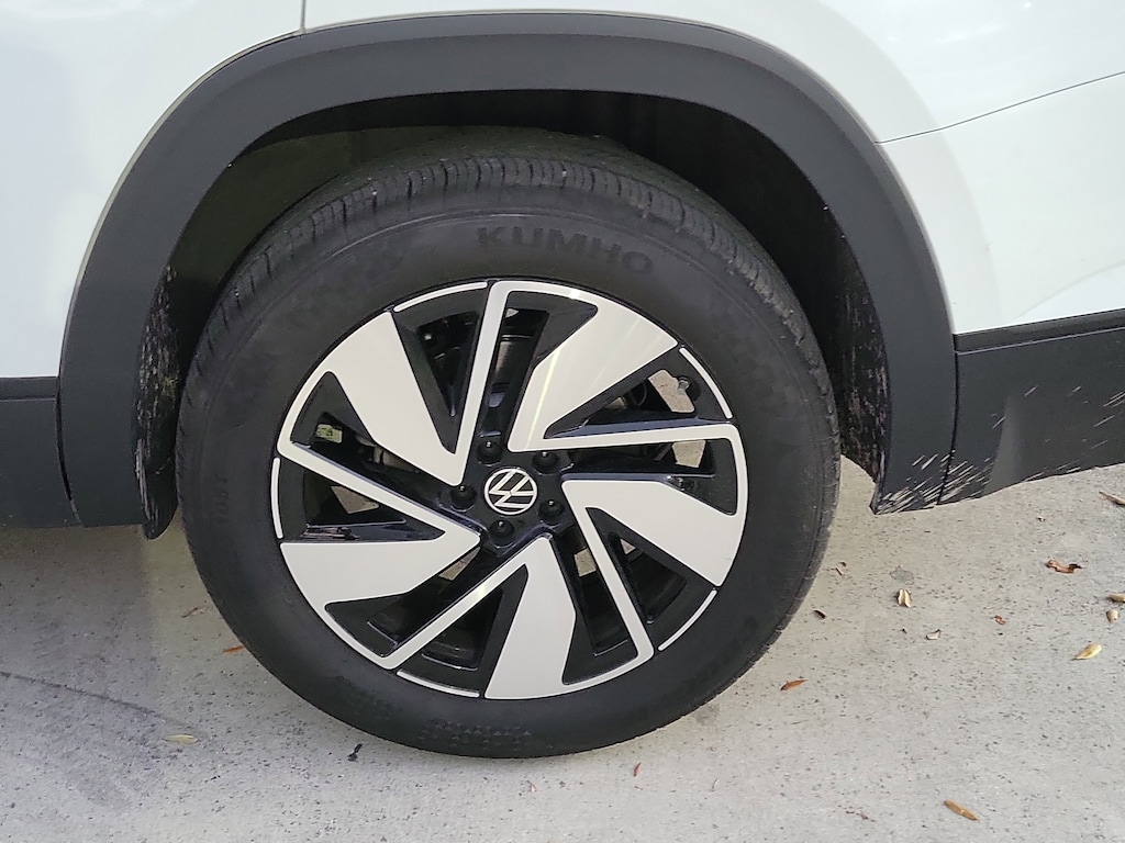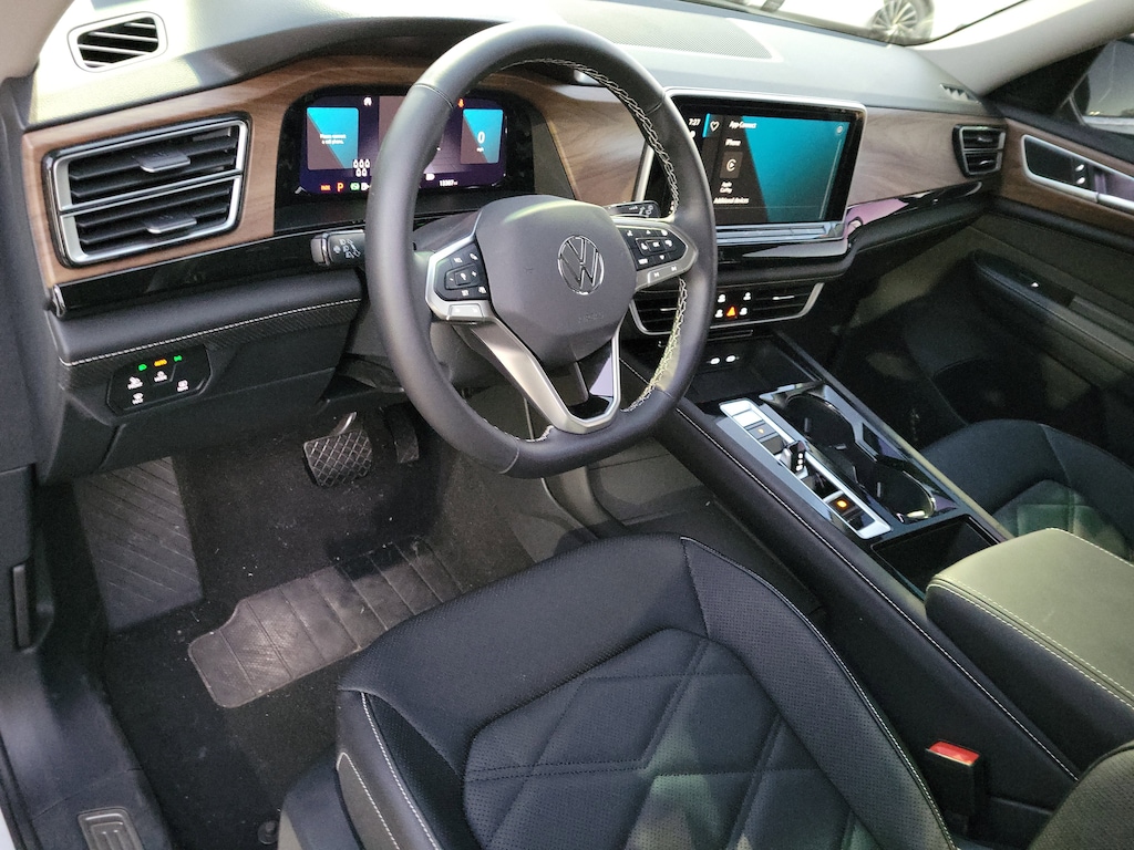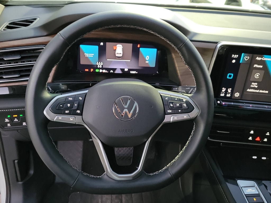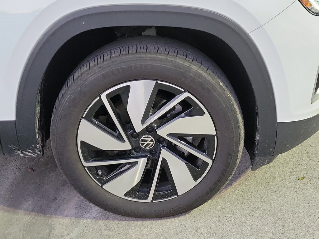 CARFAX One-Owner. Pure White 2025 Volkswagen Atlas 2.0T SE w/Technology 2.0L TSI 8-Speed Automatic FWD Panoramic sunroof package (power tilting and sliding Panoramic sunroof), 20" 2-tone machined alloy wheels, 3rd row seats: split-bench, 4-Wheel Disc Brakes, 6 Speakers, ABS brakes, Air Conditioning, Alloy wheels, AM/FM radio: SiriusXM with 360L, Auto High-beam Headlights, Auto-dimming Rear-View mirror, Automatic temperature control, Brake assist, Bumpers: body-color, Compass, Delay-off headlights, Driver door bin, Driver vanity mirror, Dual front impact airbags, Dual front side impact airbags, Electronic Stability Control, Emergency communication system: VW Car-Net Safe & Secure 5-year, Exterior Parking Camera Rear, Four wheel independent suspension, four-wheel independent suspension, Front anti-roll bar, Front Bucket Seats, Front Center Armrest, Front dual zone A/C, Front fog lights, Front reading lights, Fully automatic headlights, heated and Actively ventilated front bucket seats, Heated door mirrors, Heated front seats, Heated steering wheel, Illuminated entry, Low tire pressure warning, MIB3 composition media radio, Occupant sensing airbag, Outside temperature display, Overhead airbag, Overhead console, Panic alarm, Passenger door bin, Passenger vanity mirror, perforated V-Tex leatherette seating surfaces, Power door mirrors, Power driver seat, Power Liftgate, Power steering, Power windows, Radio data system, Rain sensing wipers, Rear air conditioning, Rear anti-roll bar, Rear reading lights, Rear seat center armrest, Rear window defroster, Rear window wiper, Remote keyless entry, Security system, Speed control, Speed-sensing steering, Split folding rear seat, Spoiler, Steering wheel mounted audio controls, Tachometer, Telescoping steering wheel, Tilt steering wheel, Traction control, Trip computer, Turn signal indicator mirrors, Variably intermittent wipers, and Ventilated front seats.