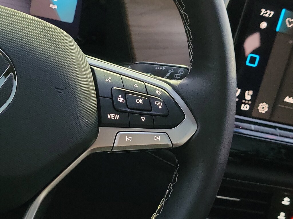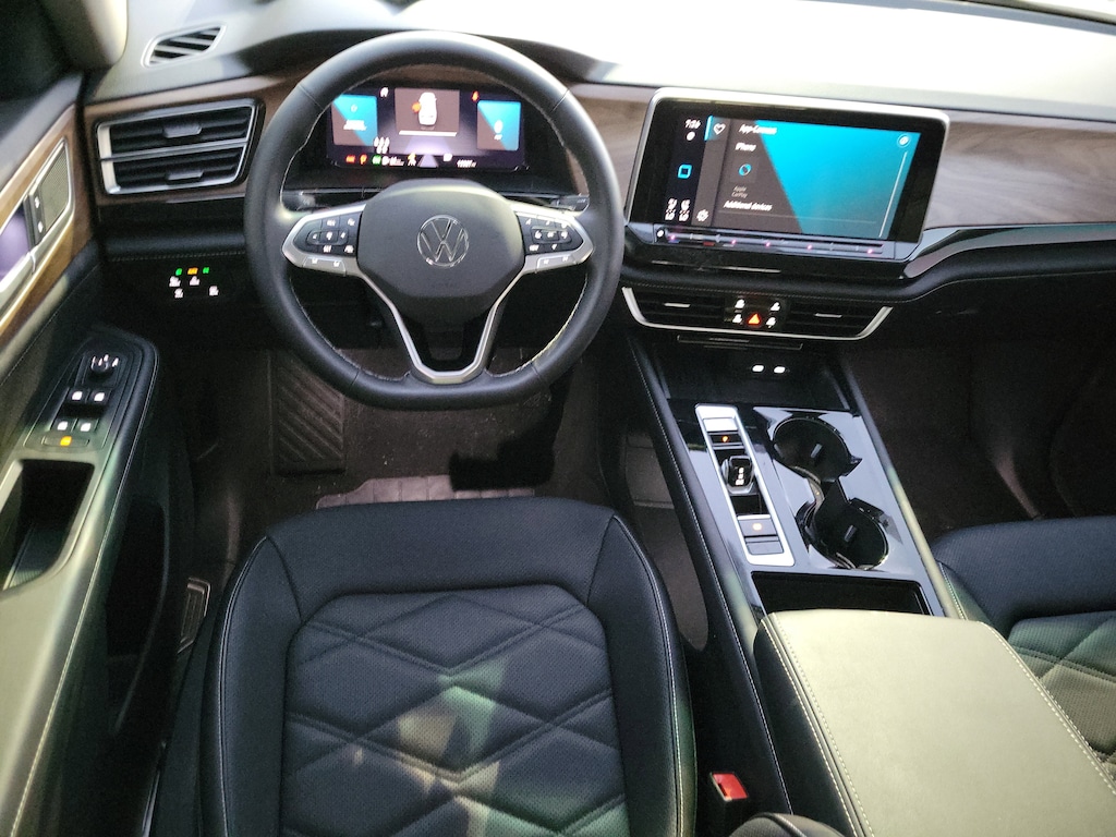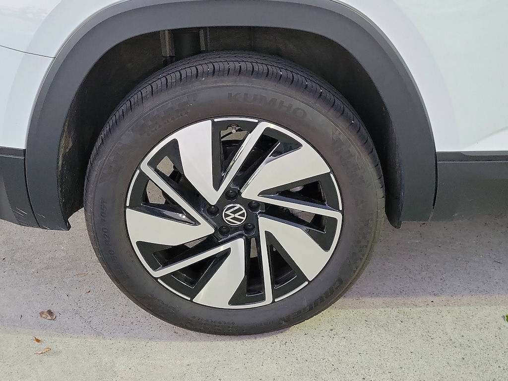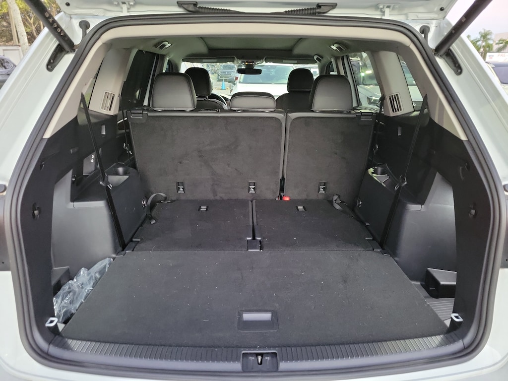 CARFAX One-Owner. Pure White 2025 Volkswagen Atlas 2.0T SE w/Technology 2.0L TSI 8-Speed Automatic FWD Panoramic sunroof package (power tilting and sliding Panoramic sunroof), 20" 2-tone machined alloy wheels, 3rd row seats: split-bench, 4-Wheel Disc Brakes, 6 Speakers, ABS brakes, Air Conditioning, Alloy wheels, AM/FM radio: SiriusXM with 360L, Auto High-beam Headlights, Auto-dimming Rear-View mirror, Automatic temperature control, Brake assist, Bumpers: body-color, Compass, Delay-off headlights, Driver door bin, Driver vanity mirror, Dual front impact airbags, Dual front side impact airbags, Electronic Stability Control, Emergency communication system: VW Car-Net Safe & Secure 5-year, Exterior Parking Camera Rear, Four wheel independent suspension, four-wheel independent suspension, Front anti-roll bar, Front Bucket Seats, Front Center Armrest, Front dual zone A/C, Front fog lights, Front reading lights, Fully automatic headlights, heated and Actively ventilated front bucket seats, Heated door mirrors, Heated front seats, Heated steering wheel, Illuminated entry, Low tire pressure warning, MIB3 composition media radio, Occupant sensing airbag, Outside temperature display, Overhead airbag, Overhead console, Panic alarm, Passenger door bin, Passenger vanity mirror, perforated V-Tex leatherette seating surfaces, Power door mirrors, Power driver seat, Power Liftgate, Power steering, Power windows, Radio data system, Rain sensing wipers, Rear air conditioning, Rear anti-roll bar, Rear reading lights, Rear seat center armrest, Rear window defroster, Rear window wiper, Remote keyless entry, Security system, Speed control, Speed-sensing steering, Split folding rear seat, Spoiler, Steering wheel mounted audio controls, Tachometer, Telescoping steering wheel, Tilt steering wheel, Traction control, Trip computer, Turn signal indicator mirrors, Variably intermittent wipers, and Ventilated front seats.