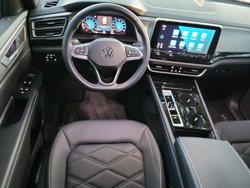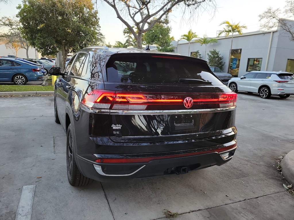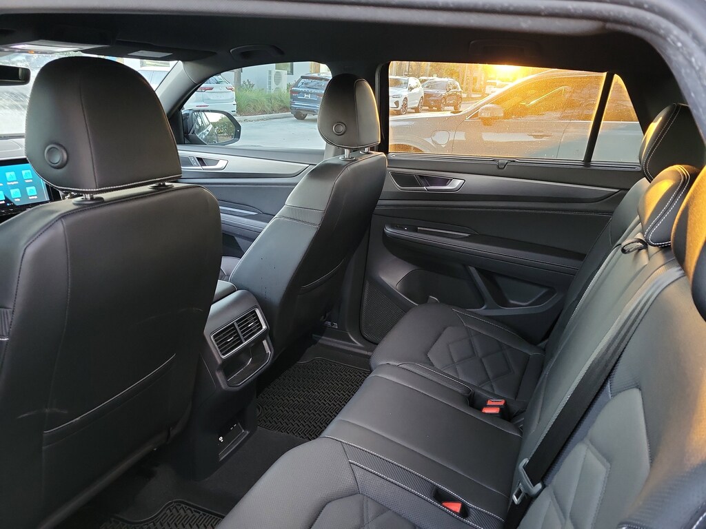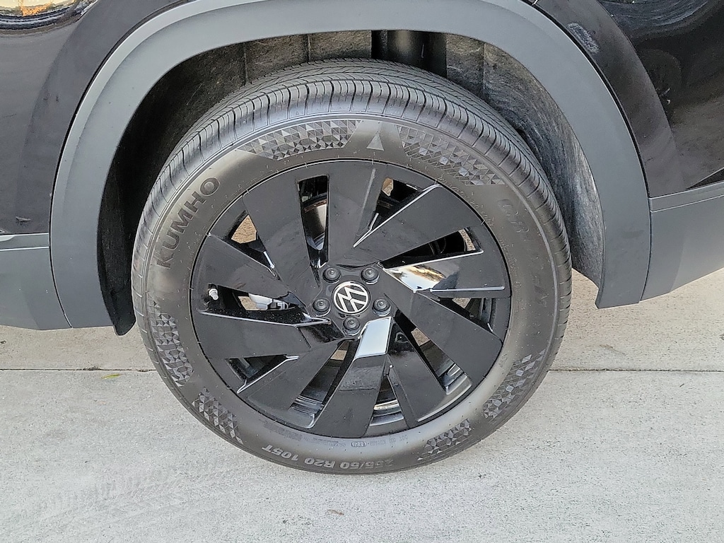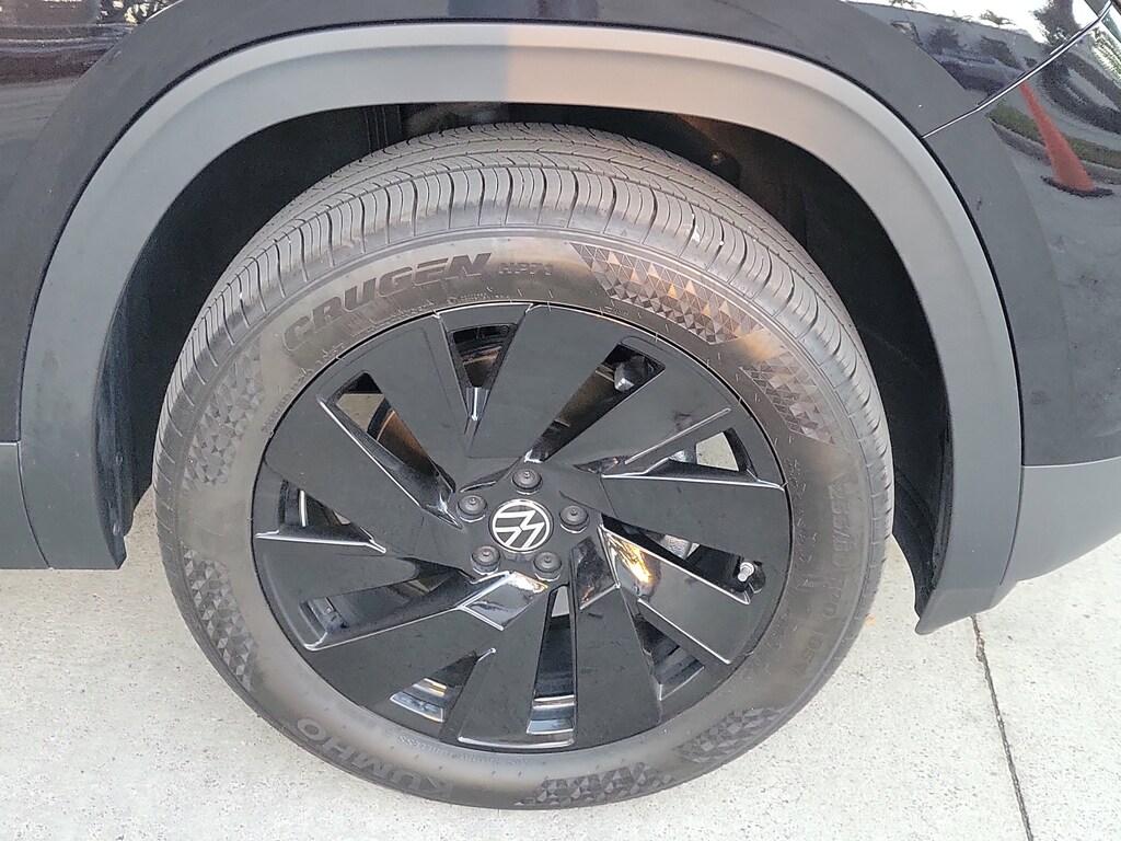 CARFAX One-Owner. Deep Black 2025 Volkswagen Atlas Cross Sport 2.0T SE w/Technology 2.0L TSI 8-Speed Automatic with Tiptronic FWD Black Wheel Package (Wheels: 20" Multi-Spoke Black Painted Alloy), 4-Wheel Disc Brakes, 4-Wheel Independent Suspension, 6 Speakers, ABS brakes, Air Conditioning, Alloy wheels, AM/FM radio: SiriusXM with 360L, Auto High-beam Headlights, Auto-dimming Rear-View mirror, Automatic temperature control, Brake assist, Bumpers: body-color, Compass, Delay-off headlights, Driver door bin, Driver vanity mirror, Dual front impact airbags, Dual front side impact airbags, Electronic Stability Control, Emergency communication system: VW Car-Net Safe & Secure 5-year, Exterior Parking Camera Rear, Four wheel independent suspension, Front anti-roll bar, Front Bucket Seats, Front Center Armrest, Front dual zone A/C, Front fog lights, Front reading lights, Fully automatic headlights, Heated & Actively Ventilated Front Seats, Heated door mirrors, Heated front seats, Heated steering wheel, Heavy Duty Trunk Liner w/VW CarGo Blocks, Illuminated entry, Low tire pressure warning, Monster Mats Rubber Mats (Set of 4), Occupant sensing airbag, Outside temperature display, Overhead airbag, Overhead console, Panic alarm, Passenger door bin, Passenger vanity mirror, Perforated V-Tex Leatherette Seating Surfaces, Power door mirrors, Power driver seat, Power Liftgate, Power steering, Power windows, Radio data system, Radio: MIB3 Composition Media AM/FM/HD, Rain sensing wipers, Rear anti-roll bar, Rear reading lights, Rear seat center armrest, Rear window defroster, Rear window wiper, Remote keyless entry, Rubber Mats Kit, Security system, Speed control, Speed-sensing steering, Split folding rear seat, Spoiler, Steering wheel mounted audio controls, Tachometer, Telescoping steering wheel, Tilt steering wheel, Traction control, Trip computer, Turn signal indicator mirrors, Variably intermittent wipers, Ventilated front seats, and Wheels: 20" 5-Spoke 2-Tone Machined Alloy.