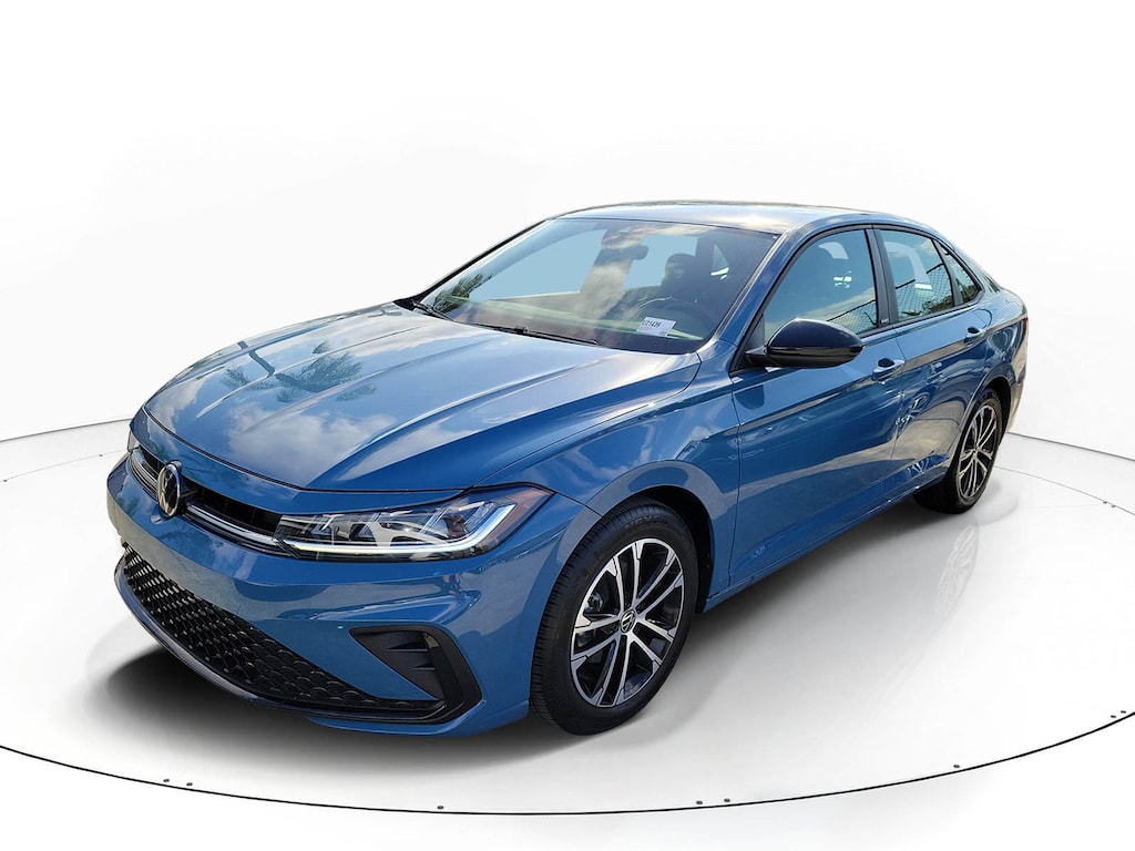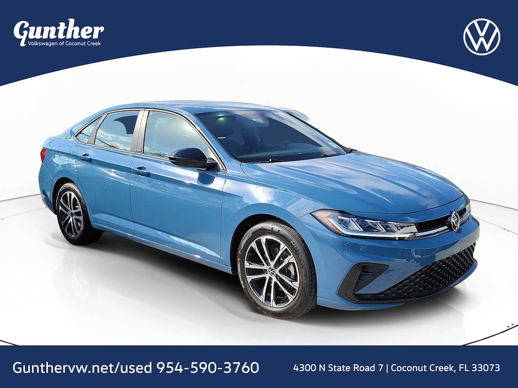 CARFAX One-Owner. Blue 2025 Volkswagen Jetta 1.5T Sport 1.5L I-4 DI DOHC Turbocharged 8-Speed Automatic with Tiptronic FWD 4 Speakers, 4-Wheel Disc Brakes, ABS brakes, Active Blind Spot Monitor, Air Conditioning, Alloy wheels, Auto-dimming Rear-View mirror, Auto-Dimming Rearview Mirror w/HomeLink Connect, Automatic temperature control, Brake assist, Bumpers: body-color, Cloth Seat Trim, Delay-off headlights, Driver door bin, Driver vanity mirror, Dual front impact airbags, Dual front side impact airbags, Electronic Stability Control, Emergency communication system: VW Car-Net Safe & Secure 5-year, Exterior Parking Camera Rear, Front anti-roll bar, Front Bucket Seats, Front Center Armrest, Front dual zone A/C, Front wheel independent suspension, Fully automatic headlights, Heated door mirrors, Heated Front Seats, Heated front seats, Illuminated entry, Leather Shift Knob, Leather steering wheel, Low tire pressure warning, Occupant sensing airbag, Outside temperature display, Overhead airbag, Overhead console, Panic alarm, Passenger door bin, Passenger vanity mirror, Power door mirrors, Power steering, Power windows, Radio data system, Radio: MIB3 Composition Color w/8" Touchscreen, Rain sensing wipers, Rear anti-roll bar, Rear reading lights, Rear seat center armrest, Rear window defroster, Remote keyless entry, Speed control, Speed-sensing steering, Split folding rear seat, Steering wheel mounted audio controls, Tachometer, Telescoping steering wheel, Tilt steering wheel, Traction control, Trip computer, Variably intermittent wipers, and Wheels: 17" 2-Tone Machined Alloy.