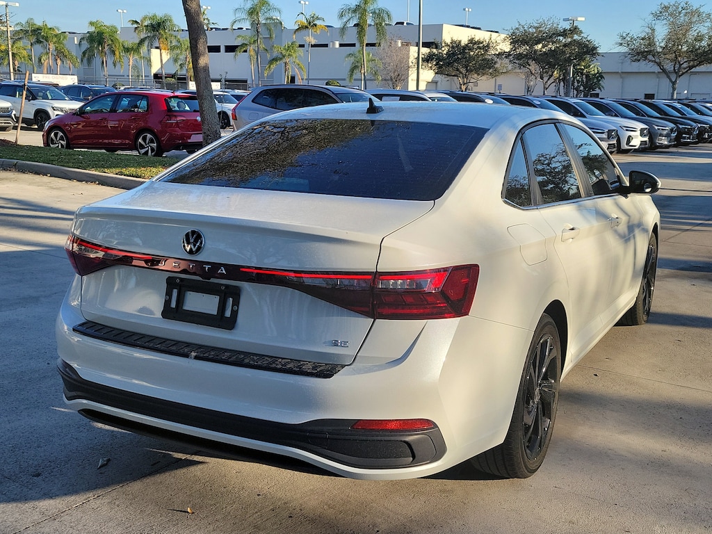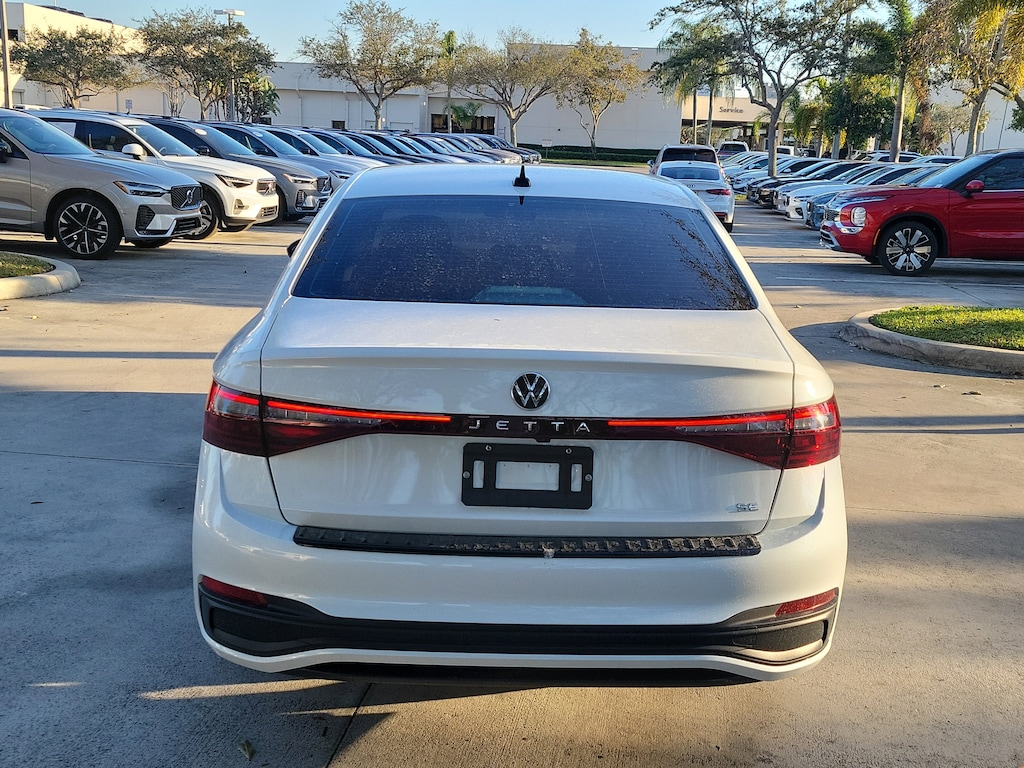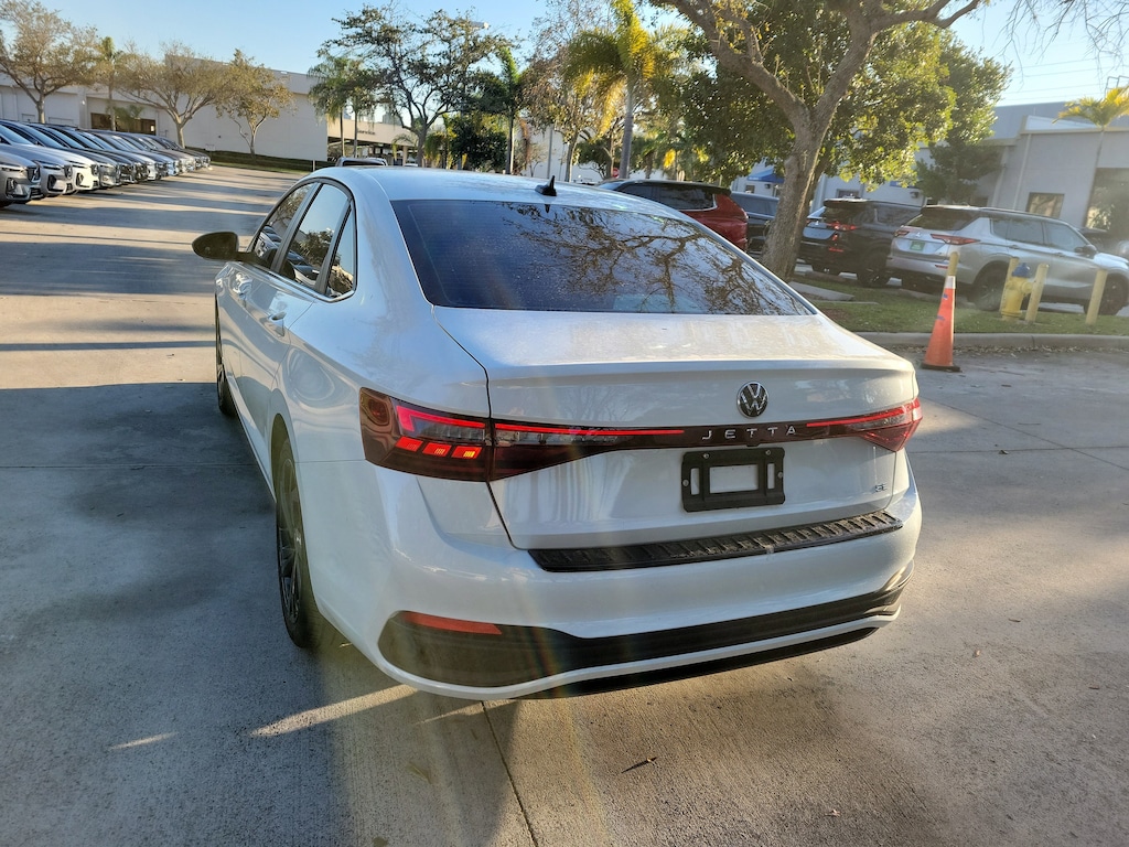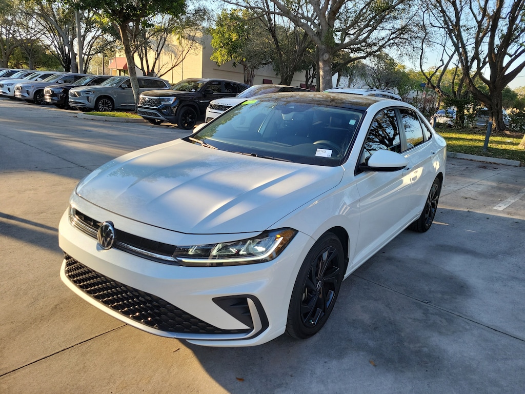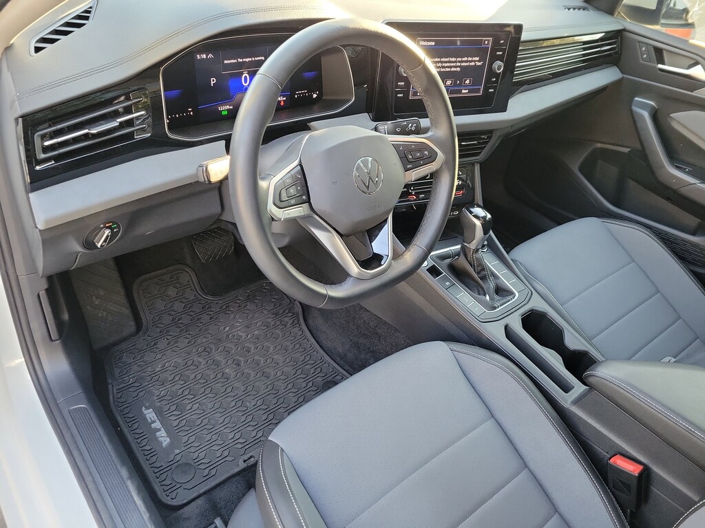CARFAX One-Owner. Opal White 2025 Volkswagen Jetta 1.5T SE 1.5L I-4 DI DOHC Turbocharged 8-Speed Automatic with Tiptronic FWD Black Wheel Package (Wheels: 18" Dark Graphite Painted Alloy), Sunroof Package (Power Tilting & Sliding Sunroof), 4-Wheel Disc Brakes, 6 Speakers, ABS brakes, Active Blind Spot Monitor, Air Conditioning, Alloy wheels, AM/FM radio: SiriusXM with 360L, Auto-dimming Rear-View mirror, Auto-Dimming Rearview Mirror w/HomeLink Connect, Automatic temperature control, Brake assist, Bumpers: body-color, CloudTex & V-Tex Leatherette Seat Trim, Delay-off headlights, Driver door bin, Driver vanity mirror, Dual front impact airbags, Dual front side impact airbags, Electronic Stability Control, Emergency communication system: VW Car-Net Safe & Secure 5-year, Extended Range Remote Start Add-On, Exterior Parking Camera Rear, First Aid Kit, Front anti-roll bar, Front Bucket Seats, Front Center Armrest, Front dual zone A/C, Front wheel independent suspension, Fully automatic headlights, Heated door mirrors, Heated Front Seats, Heated front seats, Heavy Duty Trunk Liner w/VW CarGo Blocks, Illuminated entry, Leather Shift Knob, Leather steering wheel, Low tire pressure warning, Occupant sensing airbag, Outside temperature display, Overhead airbag, Overhead console, Panic alarm, Passenger door bin, Passenger vanity mirror, Power door mirrors, Power driver seat, Power steering, Power windows, Radio data system, Radio: MIB3 Composition Media w/8" Touchscreen, Rain sensing wipers, Rear anti-roll bar, Rear reading lights, Rear seat center armrest, Rear window defroster, Remote keyless entry, Rubber Monster Mats Kit (Set of 4), Speed control, Speed-sensing steering, Split folding rear seat, Steering wheel mounted audio controls, Tachometer, Telescoping steering wheel, Tilt steering wheel, Traction control, Trip computer, Variably intermittent wipers, VW Care, and Wheels: 17" Twin 5-Spoke 2-Tone Machined Alloy.
