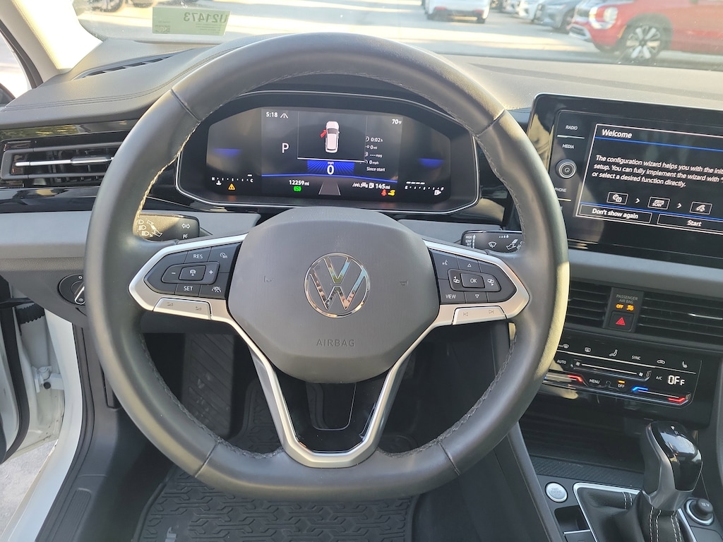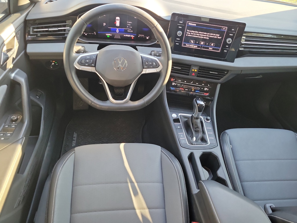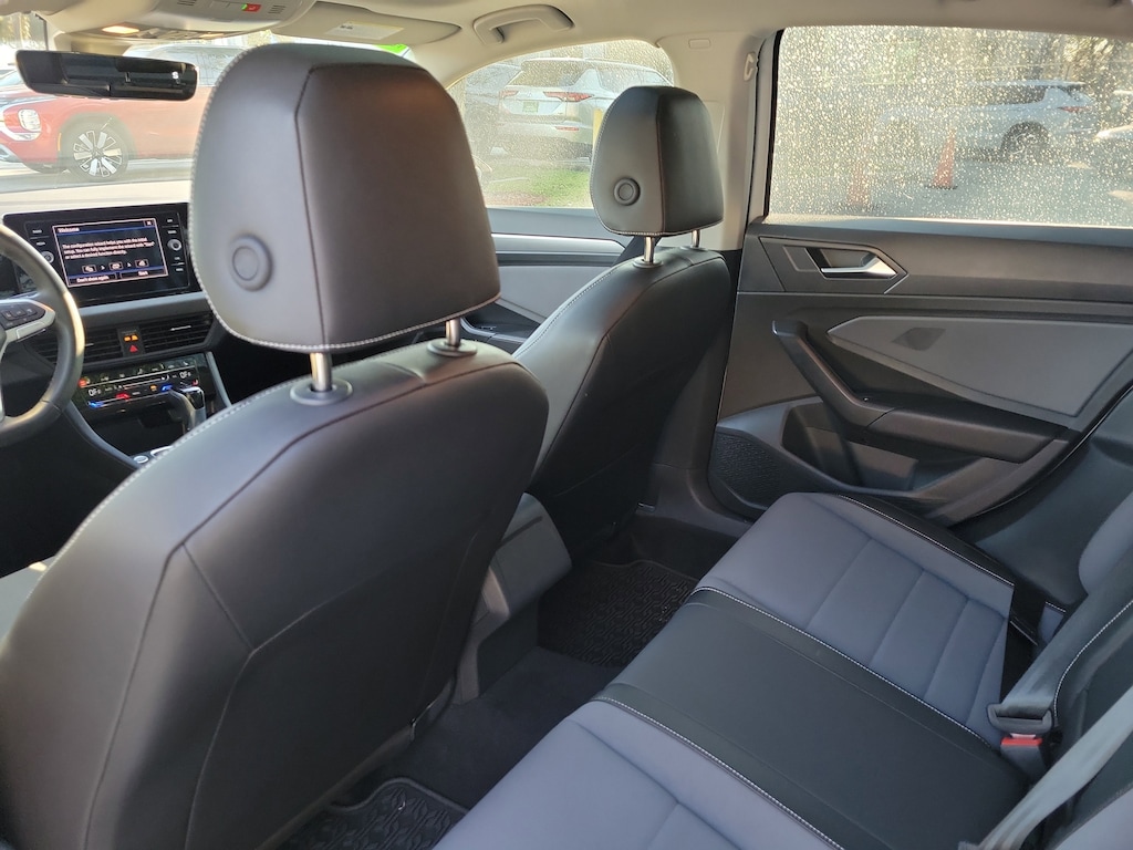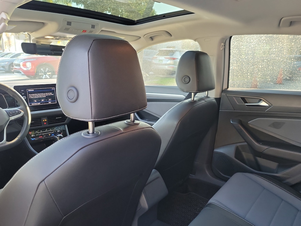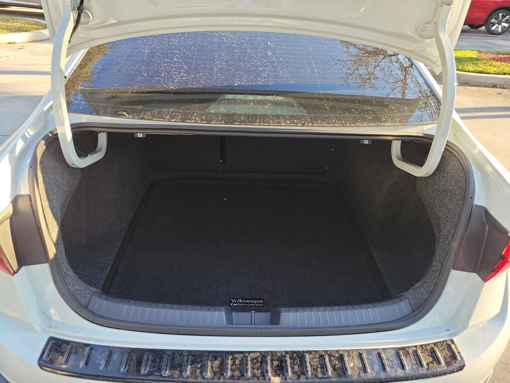 CARFAX One-Owner. Opal White 2025 Volkswagen Jetta 1.5T SE 1.5L I-4 DI DOHC Turbocharged 8-Speed Automatic with Tiptronic FWD Black Wheel Package (Wheels: 18" Dark Graphite Painted Alloy), Sunroof Package (Power Tilting & Sliding Sunroof), 4-Wheel Disc Brakes, 6 Speakers, ABS brakes, Active Blind Spot Monitor, Air Conditioning, Alloy wheels, AM/FM radio: SiriusXM with 360L, Auto-dimming Rear-View mirror, Auto-Dimming Rearview Mirror w/HomeLink Connect, Automatic temperature control, Brake assist, Bumpers: body-color, CloudTex & V-Tex Leatherette Seat Trim, Delay-off headlights, Driver door bin, Driver vanity mirror, Dual front impact airbags, Dual front side impact airbags, Electronic Stability Control, Emergency communication system: VW Car-Net Safe & Secure 5-year, Extended Range Remote Start Add-On, Exterior Parking Camera Rear, First Aid Kit, Front anti-roll bar, Front Bucket Seats, Front Center Armrest, Front dual zone A/C, Front wheel independent suspension, Fully automatic headlights, Heated door mirrors, Heated Front Seats, Heated front seats, Heavy Duty Trunk Liner w/VW CarGo Blocks, Illuminated entry, Leather Shift Knob, Leather steering wheel, Low tire pressure warning, Occupant sensing airbag, Outside temperature display, Overhead airbag, Overhead console, Panic alarm, Passenger door bin, Passenger vanity mirror, Power door mirrors, Power driver seat, Power steering, Power windows, Radio data system, Radio: MIB3 Composition Media w/8" Touchscreen, Rain sensing wipers, Rear anti-roll bar, Rear reading lights, Rear seat center armrest, Rear window defroster, Remote keyless entry, Rubber Monster Mats Kit (Set of 4), Speed control, Speed-sensing steering, Split folding rear seat, Steering wheel mounted audio controls, Tachometer, Telescoping steering wheel, Tilt steering wheel, Traction control, Trip computer, Variably intermittent wipers, VW Care, and Wheels: 17" Twin 5-Spoke 2-Tone Machined Alloy.