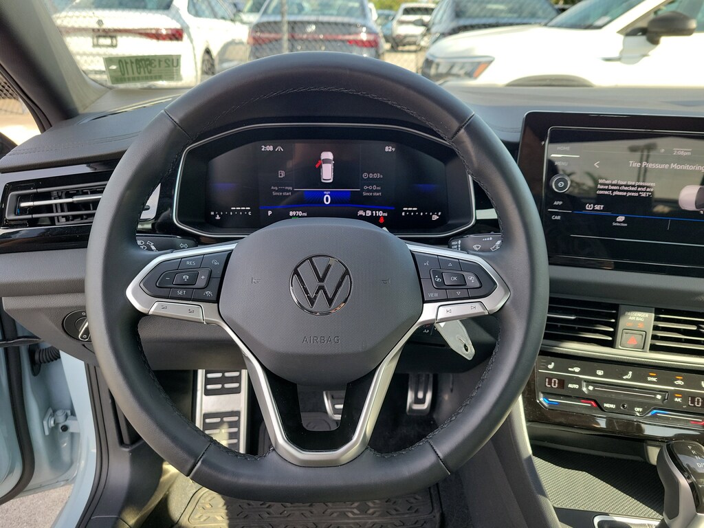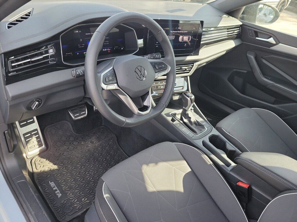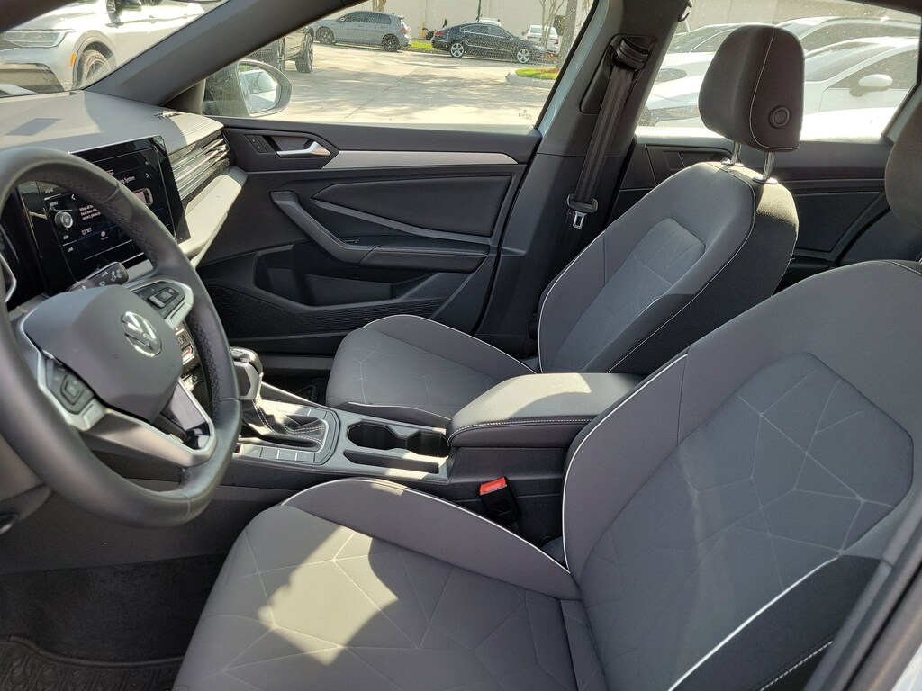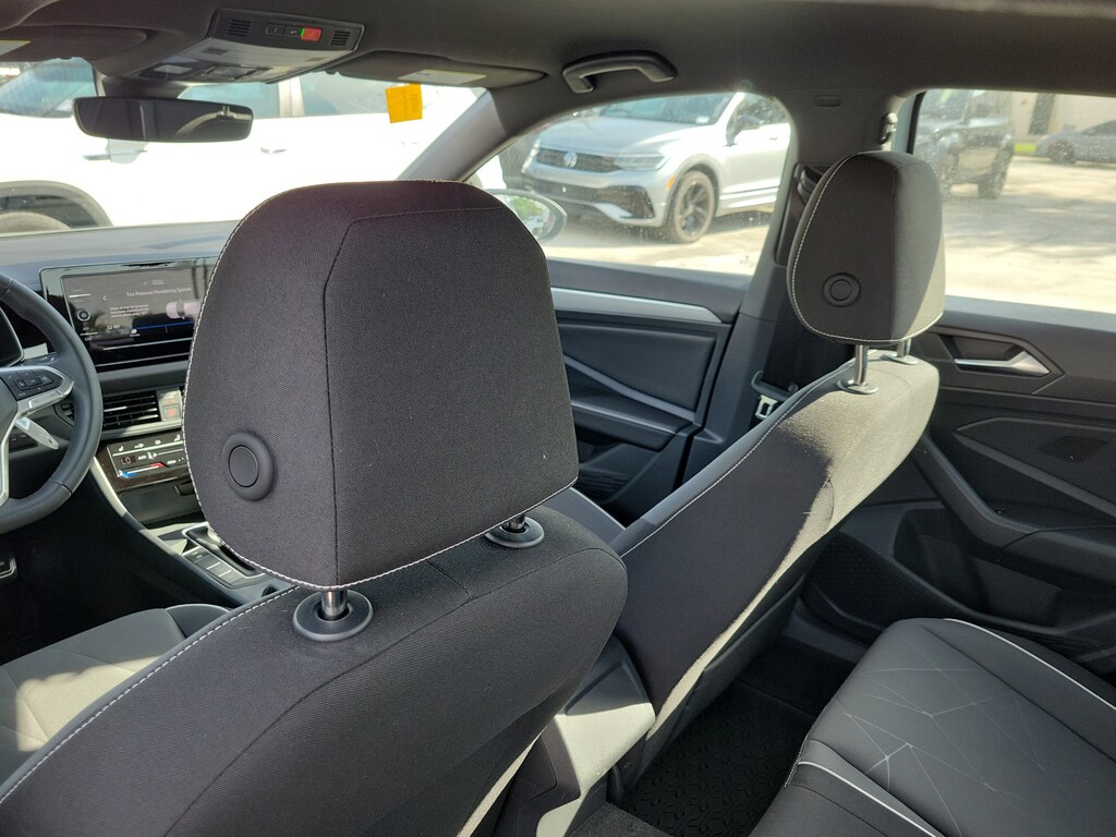 CARFAX One-Owner. Gray 2025 Volkswagen Jetta 1.5T Sport 1.5L I-4 DI DOHC Turbocharged 8-Speed Automatic with Tiptronic FWD 4 Speakers, 4-Wheel Disc Brakes, ABS brakes, Active Blind Spot Monitor, Air Conditioning, Alloy wheels, Auto-dimming Rear-View mirror, Automatic temperature control, Brake assist, Bumpers: body-color, Cloth Seat Trim, Delay-off headlights, Driver door bin, Driver vanity mirror, Dual front impact airbags, Dual front side impact airbags, Electronic Stability Control, Emergency communication system: VW Car-Net Safe & Secure 5-year, Exterior Parking Camera Rear, Front anti-roll bar, Front Bucket Seats, Front Center Armrest, Front dual zone A/C, Front wheel independent suspension, Fully automatic headlights, Heated door mirrors, Heated Front Seats, Heated front seats, Heavy Duty Trunk Liner w/VW CarGo Blocks, Illuminated entry, Leather Shift Knob, Leather steering wheel, Low tire pressure warning, Occupant sensing airbag, Outside temperature display, Overhead airbag, Overhead console, Panic alarm, Passenger door bin, Passenger vanity mirror, Power door mirrors, Power steering, Power windows, Radio data system, Radio: MIB3 Composition Color w/8" Touchscreen, Rain sensing wipers, Rear anti-roll bar, Rear reading lights, Rear seat center armrest, Rear window defroster, Remote keyless entry, Rubber Monster Mats Kit (Set of 4), Speed control, Speed-sensing steering, Split folding rear seat, Steering wheel mounted audio controls, Tachometer, Telescoping steering wheel, Tilt steering wheel, Traction control, Trip computer, Variably intermittent wipers, and Wheels: 17" 2-Tone Machined Alloy.